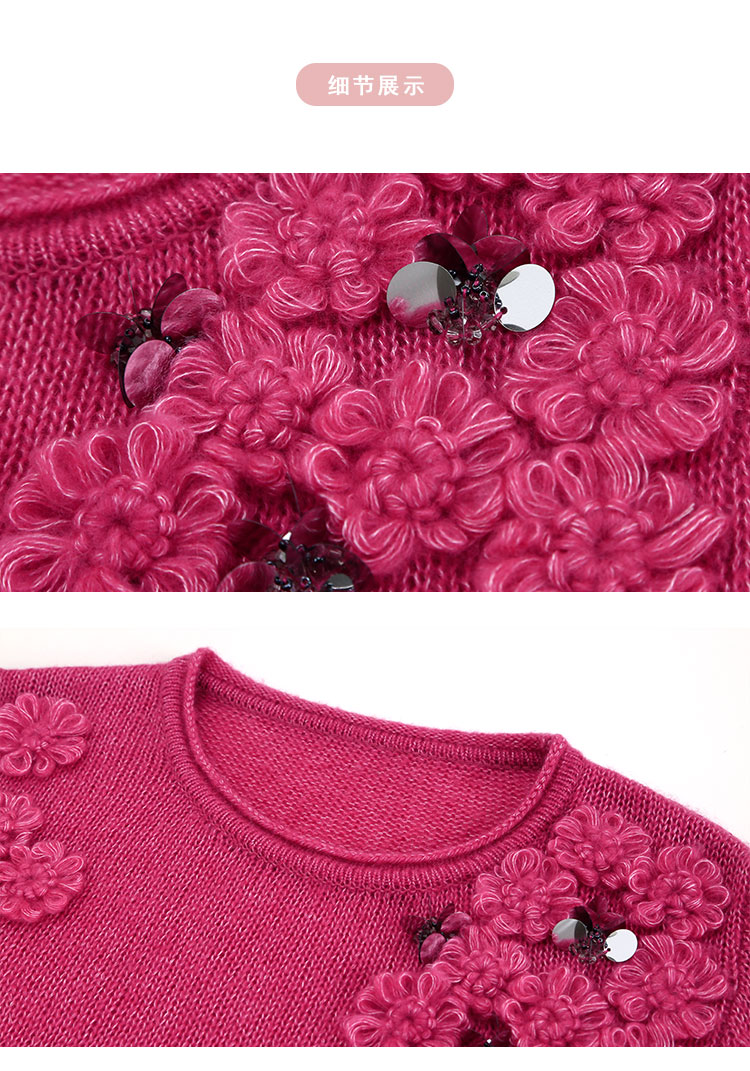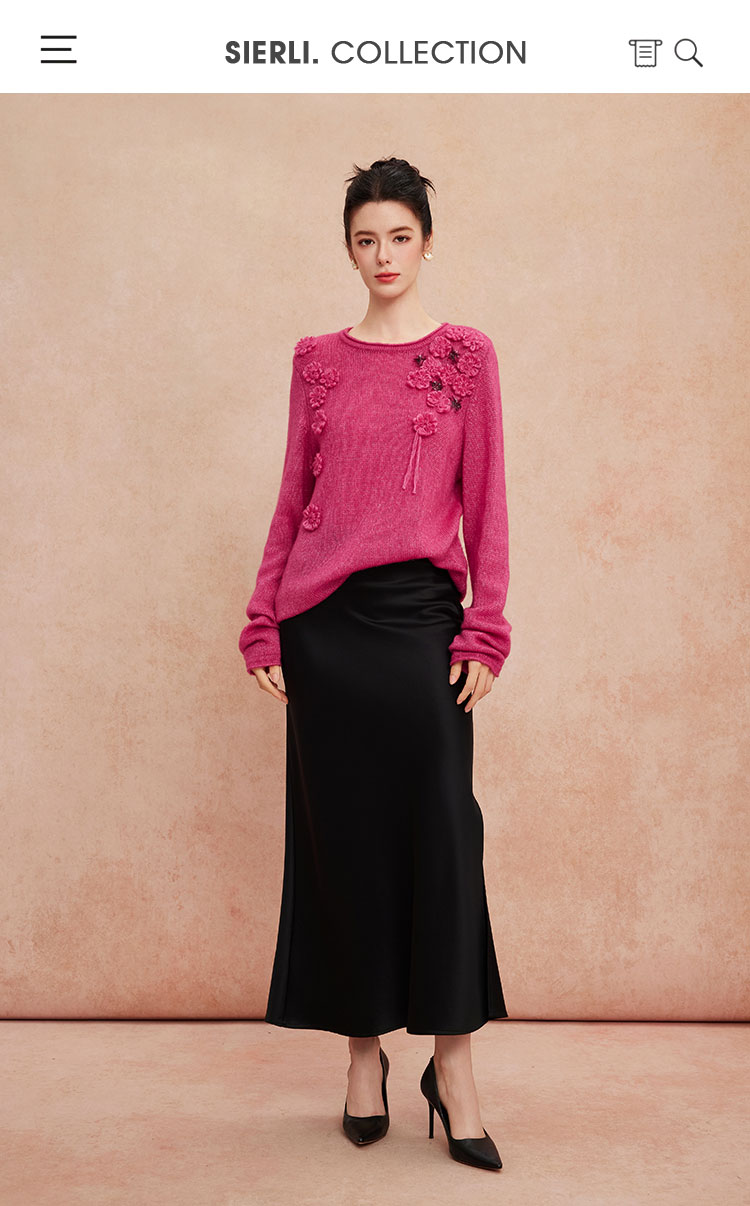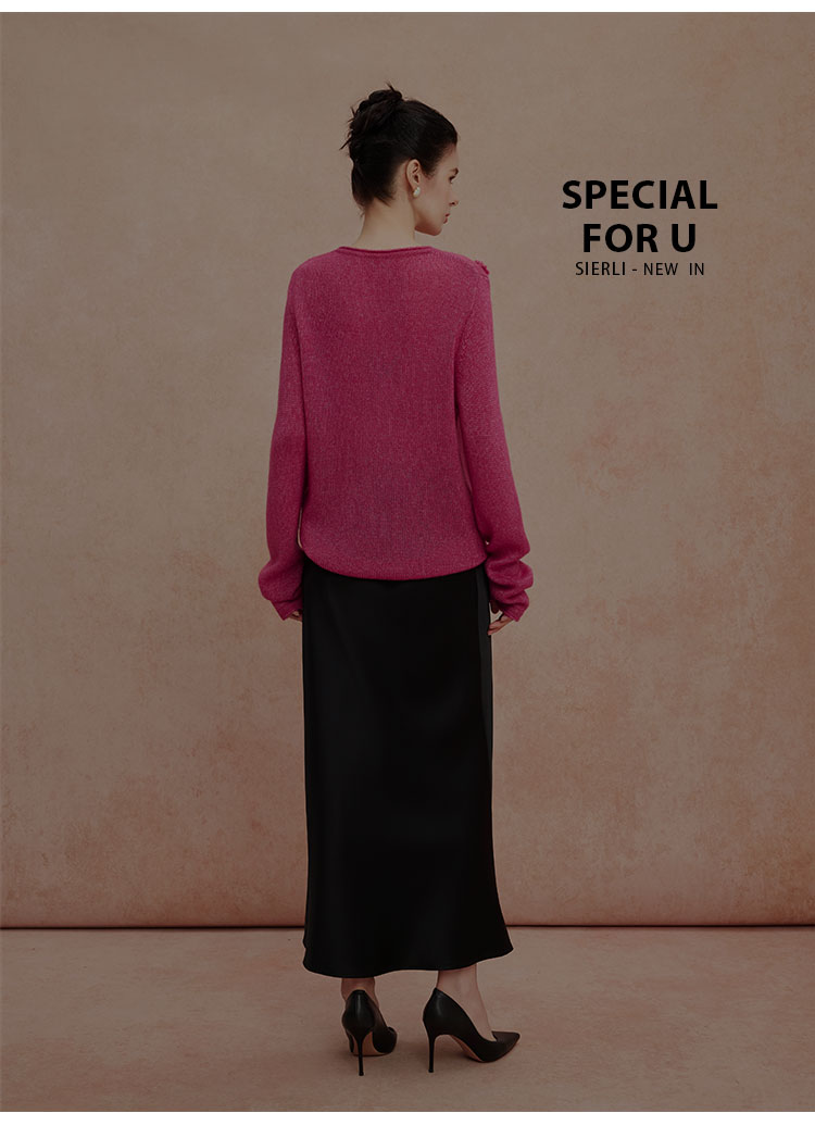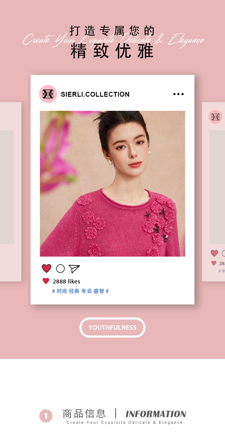 QH602斯尔丽2025新款轻柔软糯保暖手工盘花设计感强气质优雅毛衫
