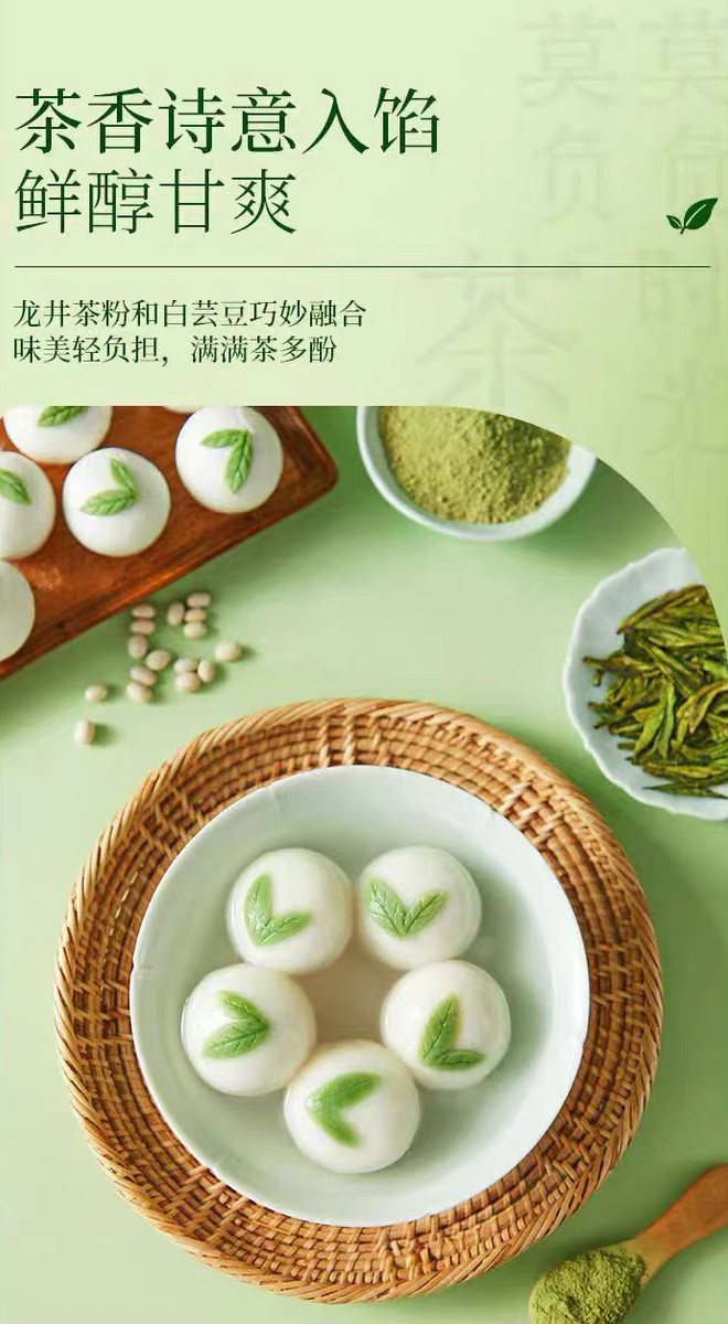 咬一口,软糯细腻,能感受到清新的龙井茶香在口中散开,给味觉带来全新体验;
