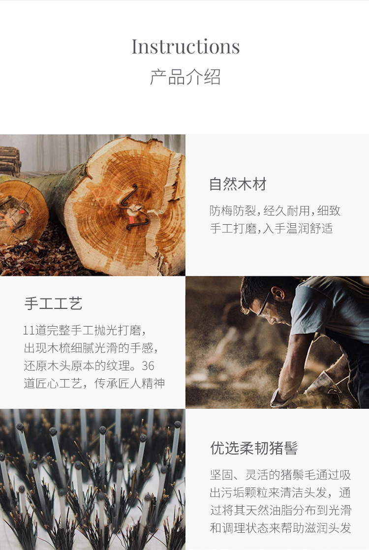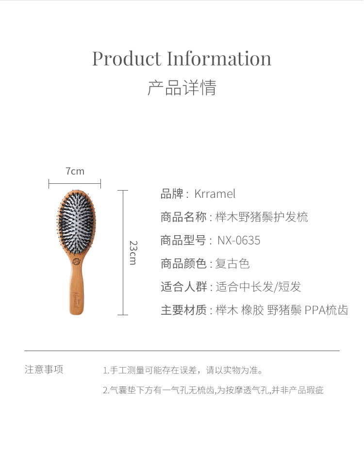 KRRAMEL 护发猪鬃梳 礼盒气垫梳按摩木梳子女礼盒结婚礼物伴手礼
