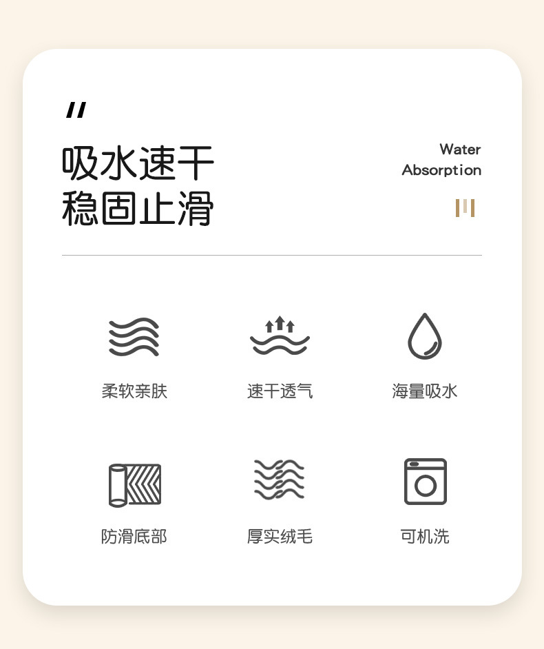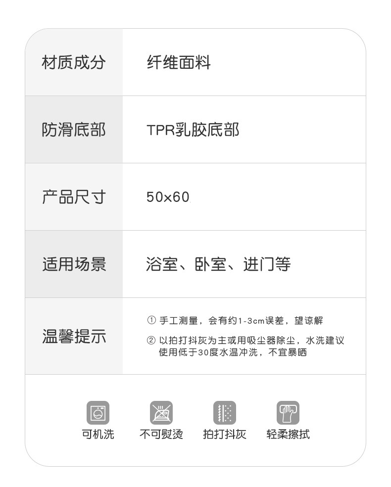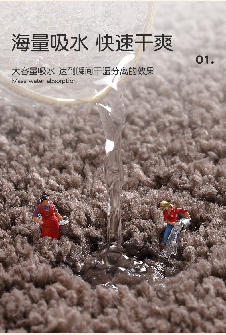大江茸绒地垫熔岩灰50*60纯色高毛加厚家用卧室门口浴室防滑垫吸水地毯