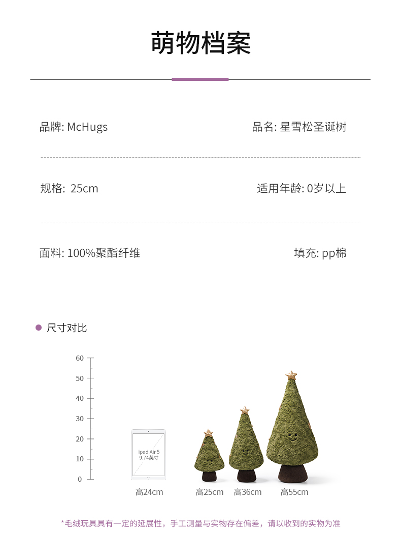 MChugs 星雪松圣诞树 玩偶毛绒娃娃玩具摆件 生日礼物公仔