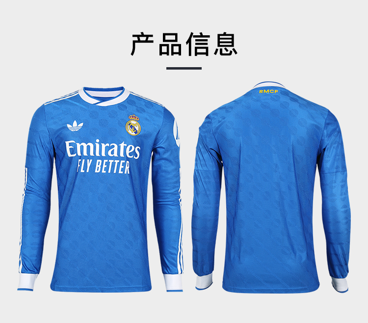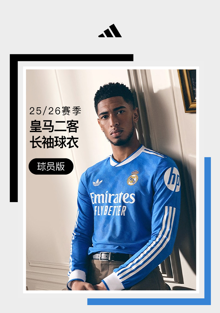 阿迪达斯25/26赛季皇家马德里球员版第二客场长袖比赛球衣足球服JP3925【加印号码臂章 联系客服】