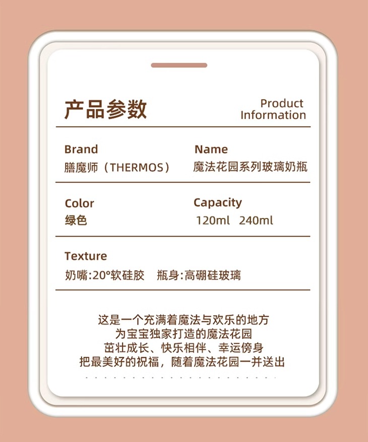 膳魔师foogo 魔法花园系列 玻璃奶瓶240ml绿色(3-6月龄适用)