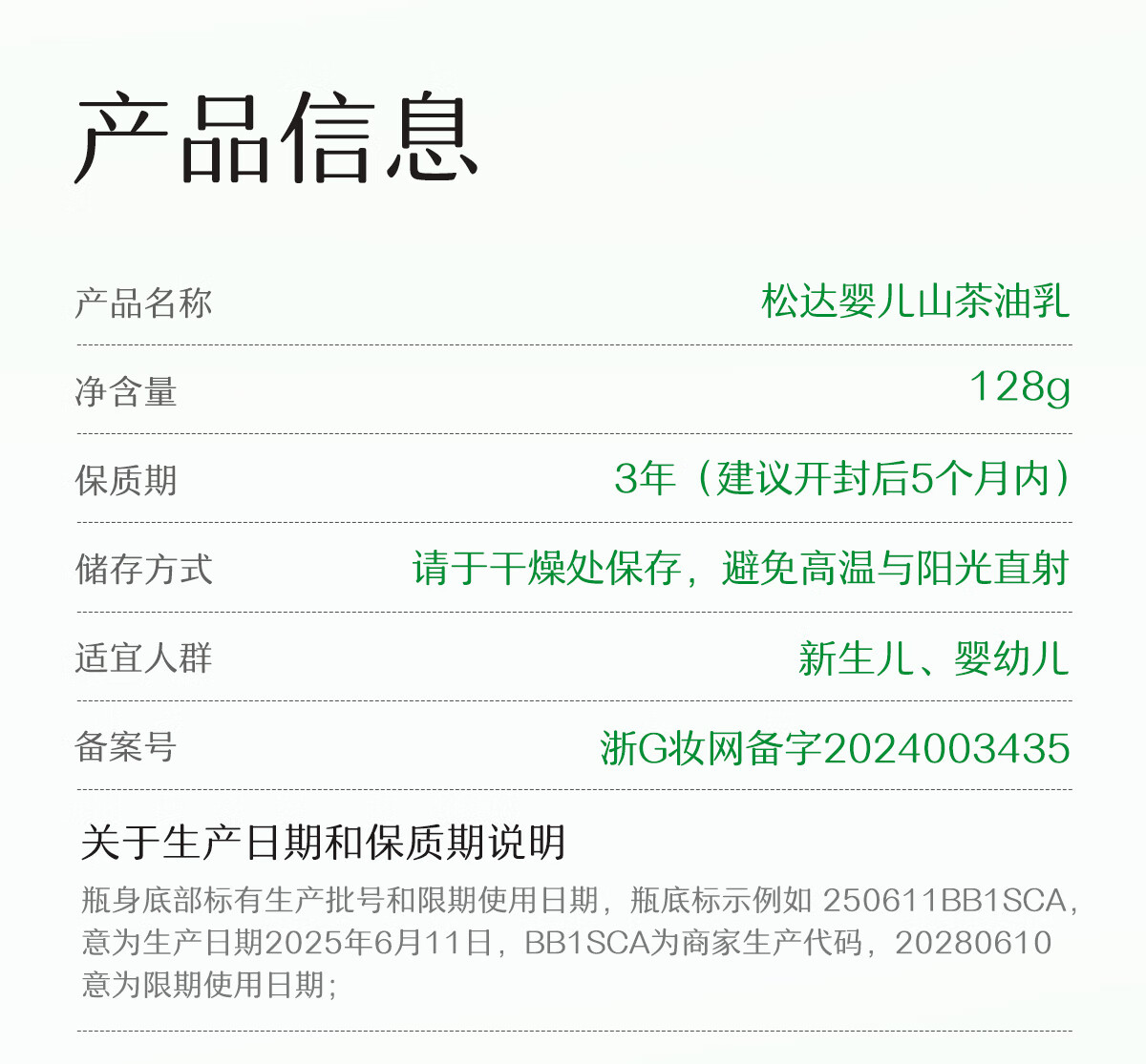 松达婴儿山茶油乳128g