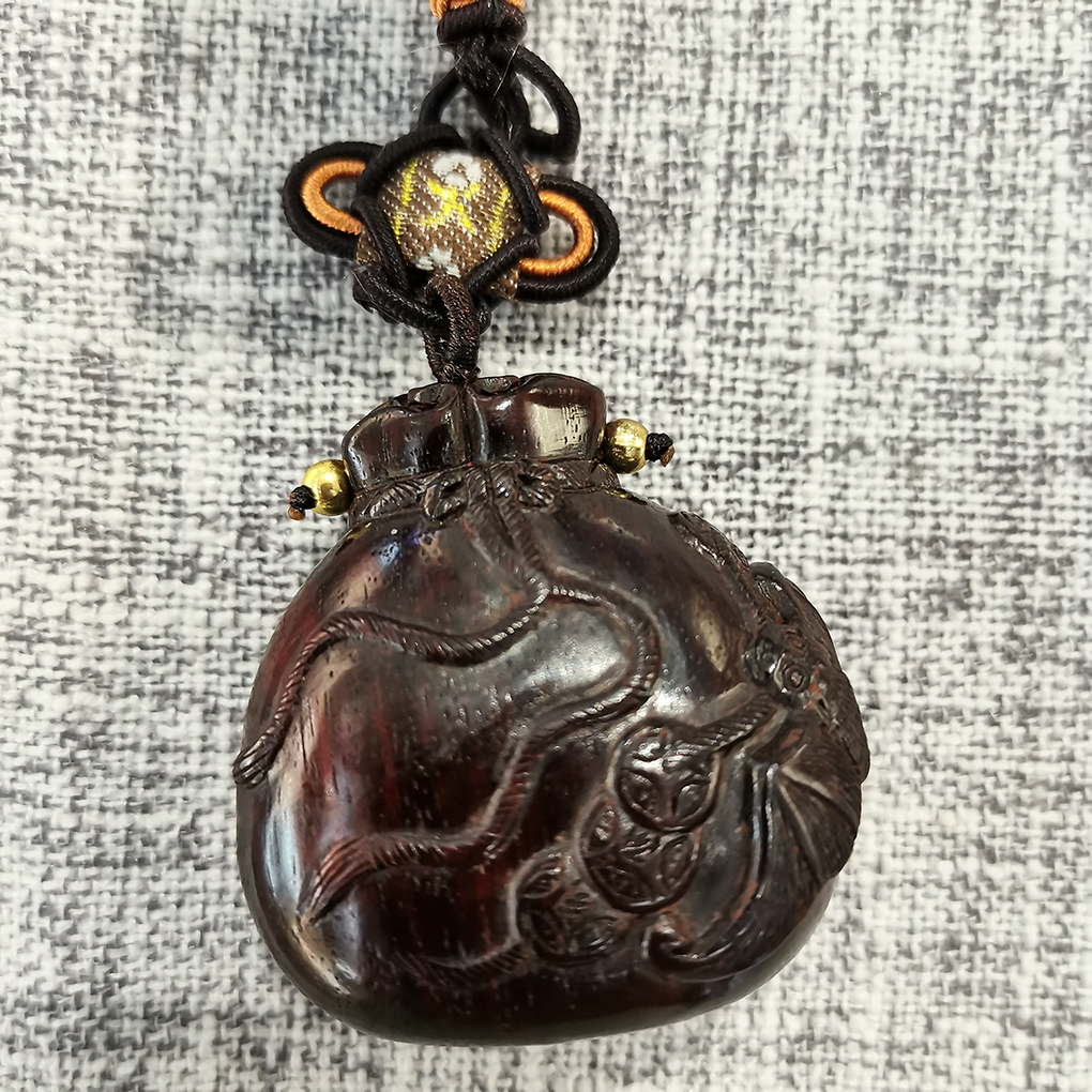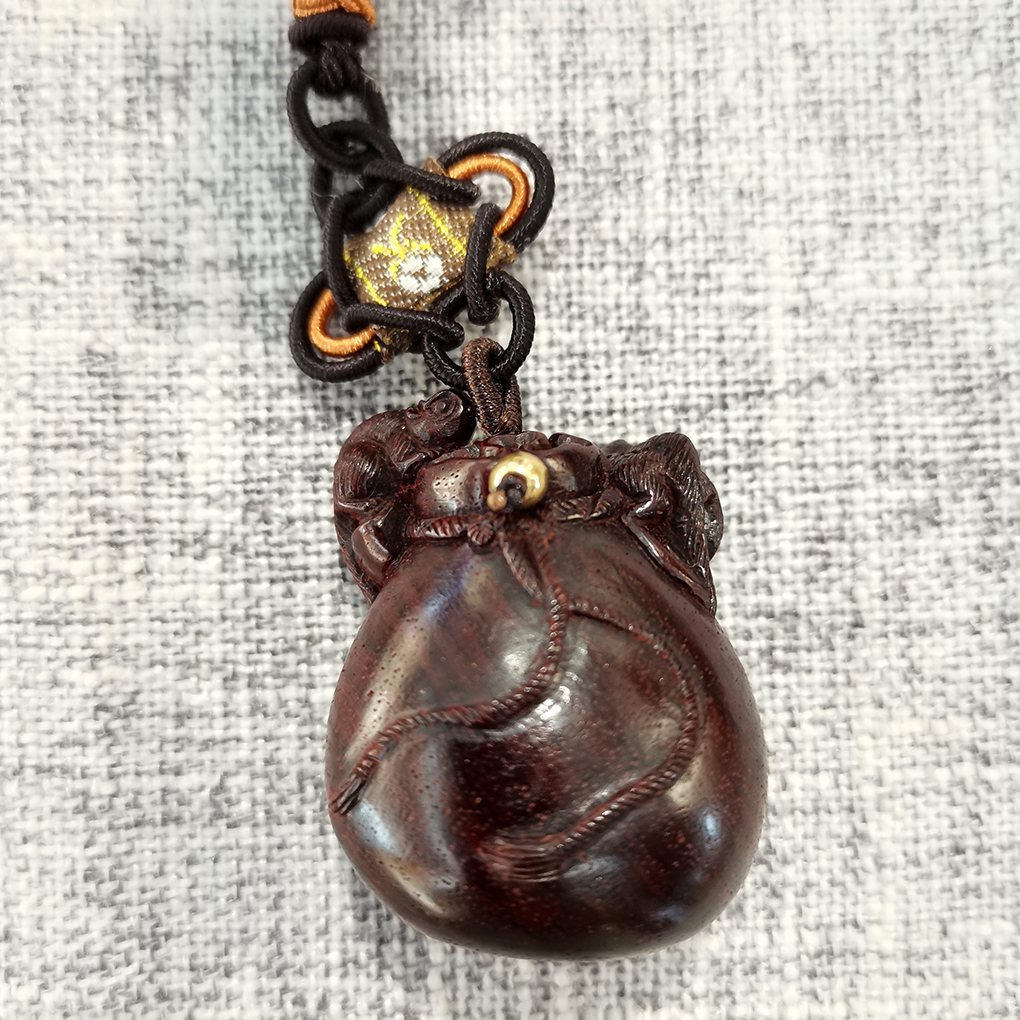 ↑ 小叶紫檀挂件 大钱袋4.5*4.5cm