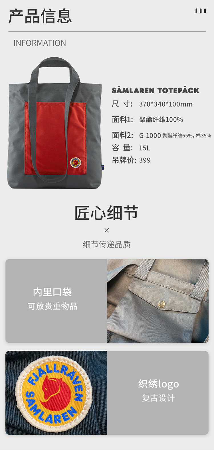 Fjallraven北极狐2021新款Totepack大容量单肩斜挎包32100