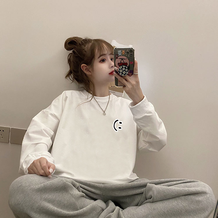 【新款上市 时尚百搭情侣装卫衣】女装笑脸图案圆领卫衣女生潮牌宽松韩版超火ins 慵懒风上衣外套