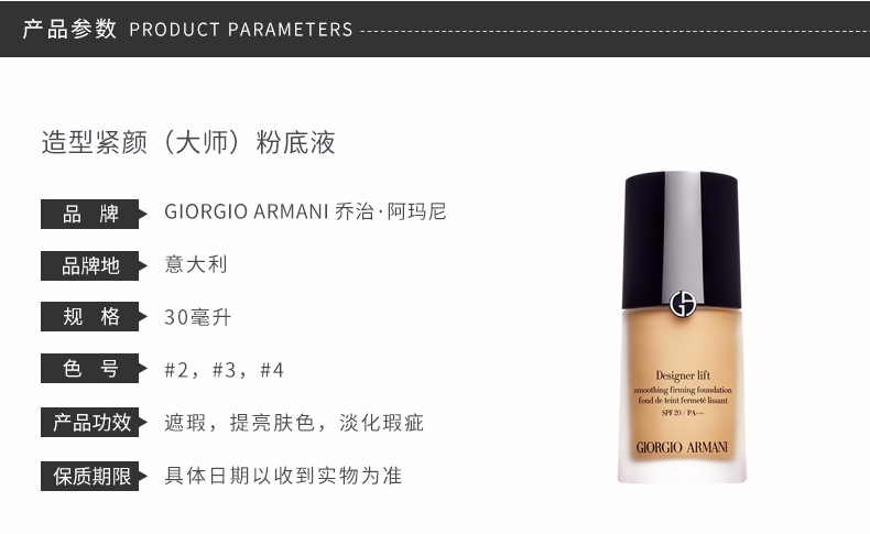 ARMANI 阿玛尼 造型紧颜粉底液 #02 30ml 意大利