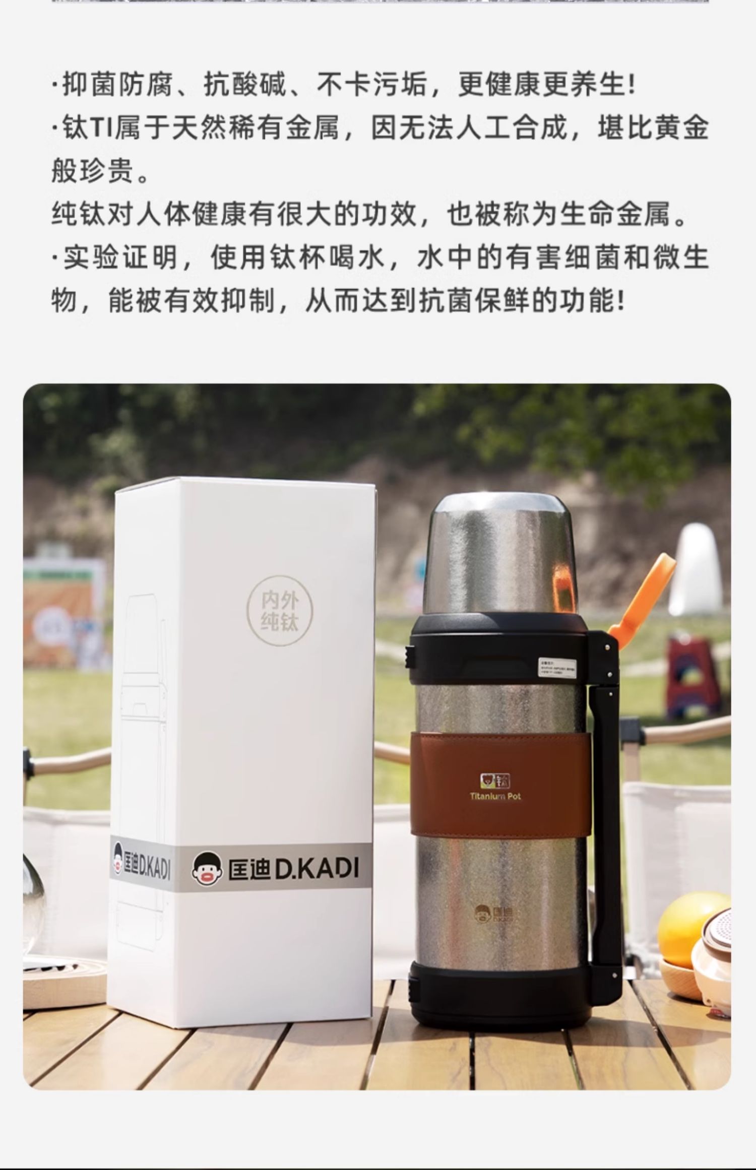 【性价比纯钛户外保温杯】匡迪纯钛保温壶大容量高档钛水壶户外焖茶壶车载旅行壶便携热水瓶