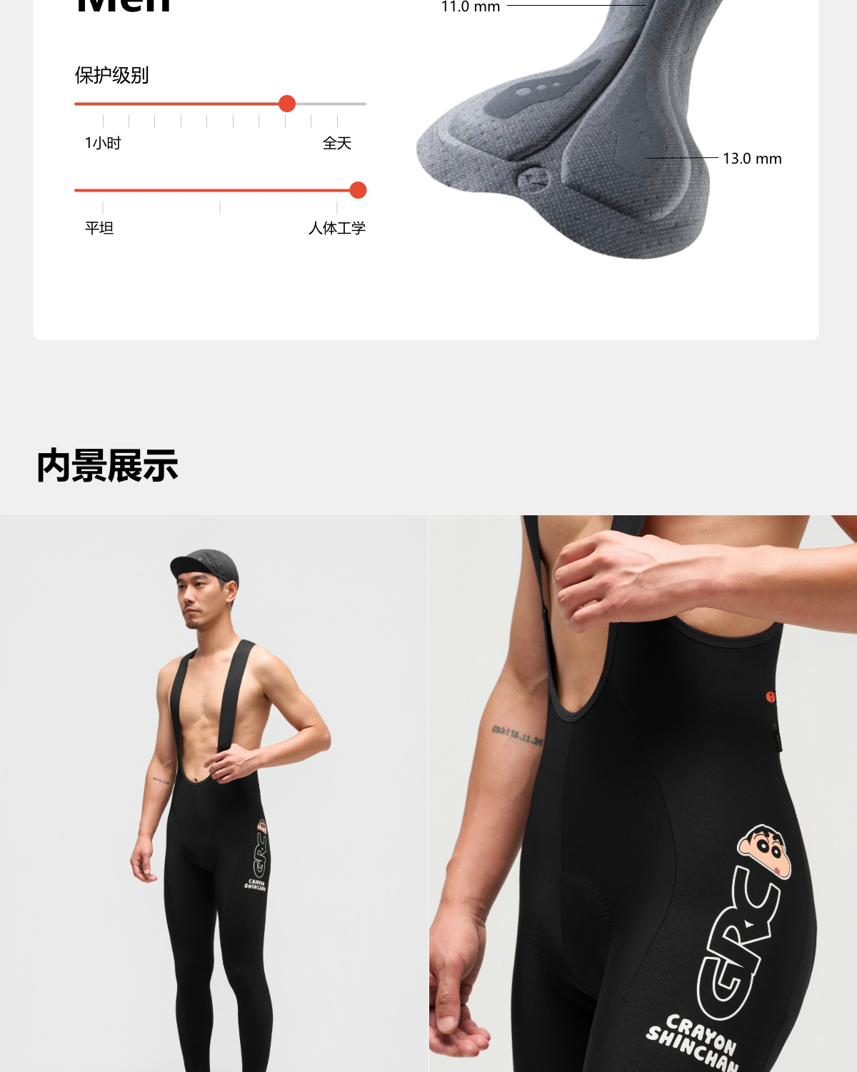 GRC桀骜无尽秋冬新款CMYK系列蜡笔小新抓绒公路背带骑行裤长裤男
