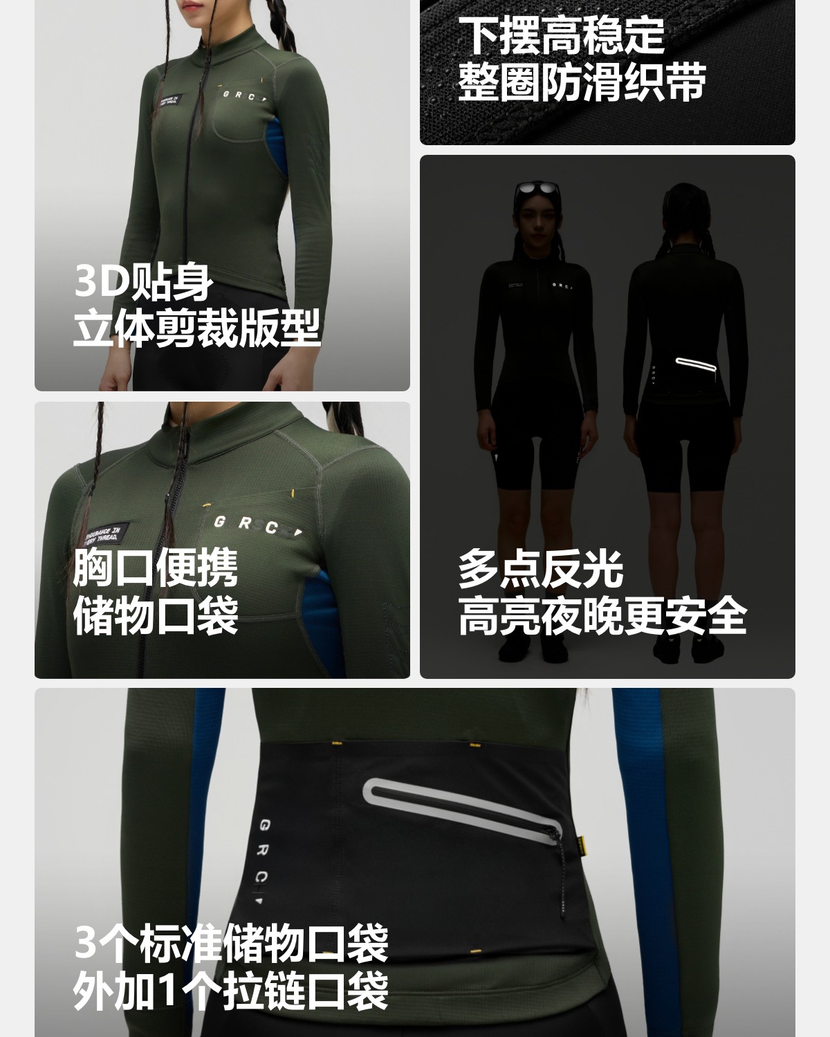 GRC桀骜无尽秋冬新款RESEARCH系列反光抓绒保暖公路自行车夹克女