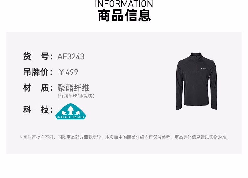 哥伦比亚男式立领跑步长袖T恤AE3243
