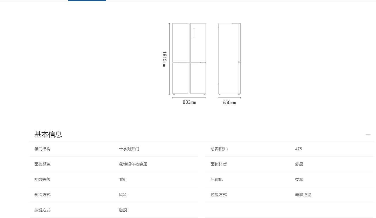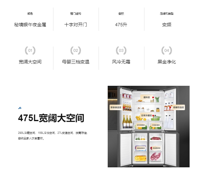 475升风冷变频十字对开门冰箱 BCD-475WGHTDEDRM