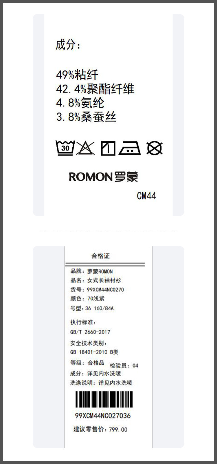49%粘纤 42.4%聚酯纤维4.8%氨纶 3.8%桑蚕丝