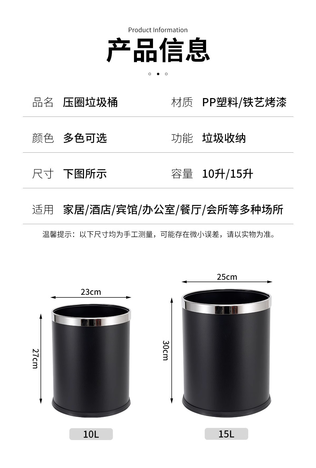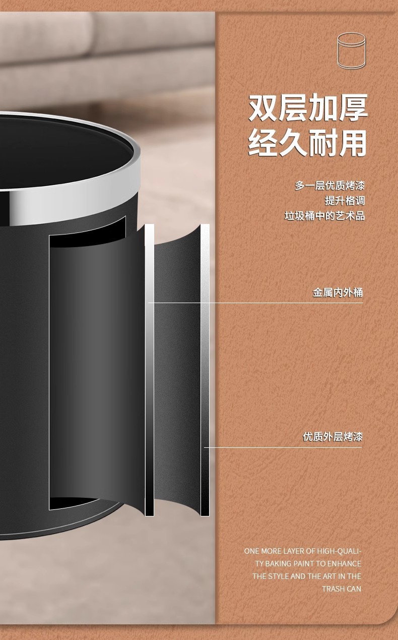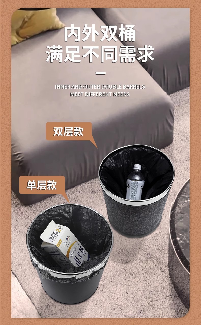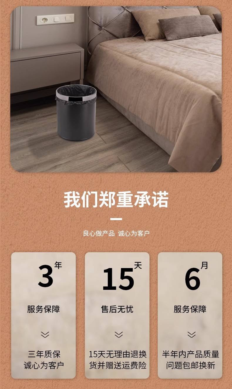 酒店垃圾桶客房家用卫生间KTV宾馆商用办公室厨房圆形收纳桶批发