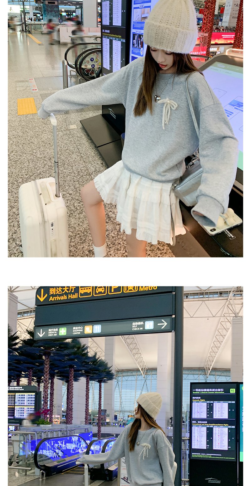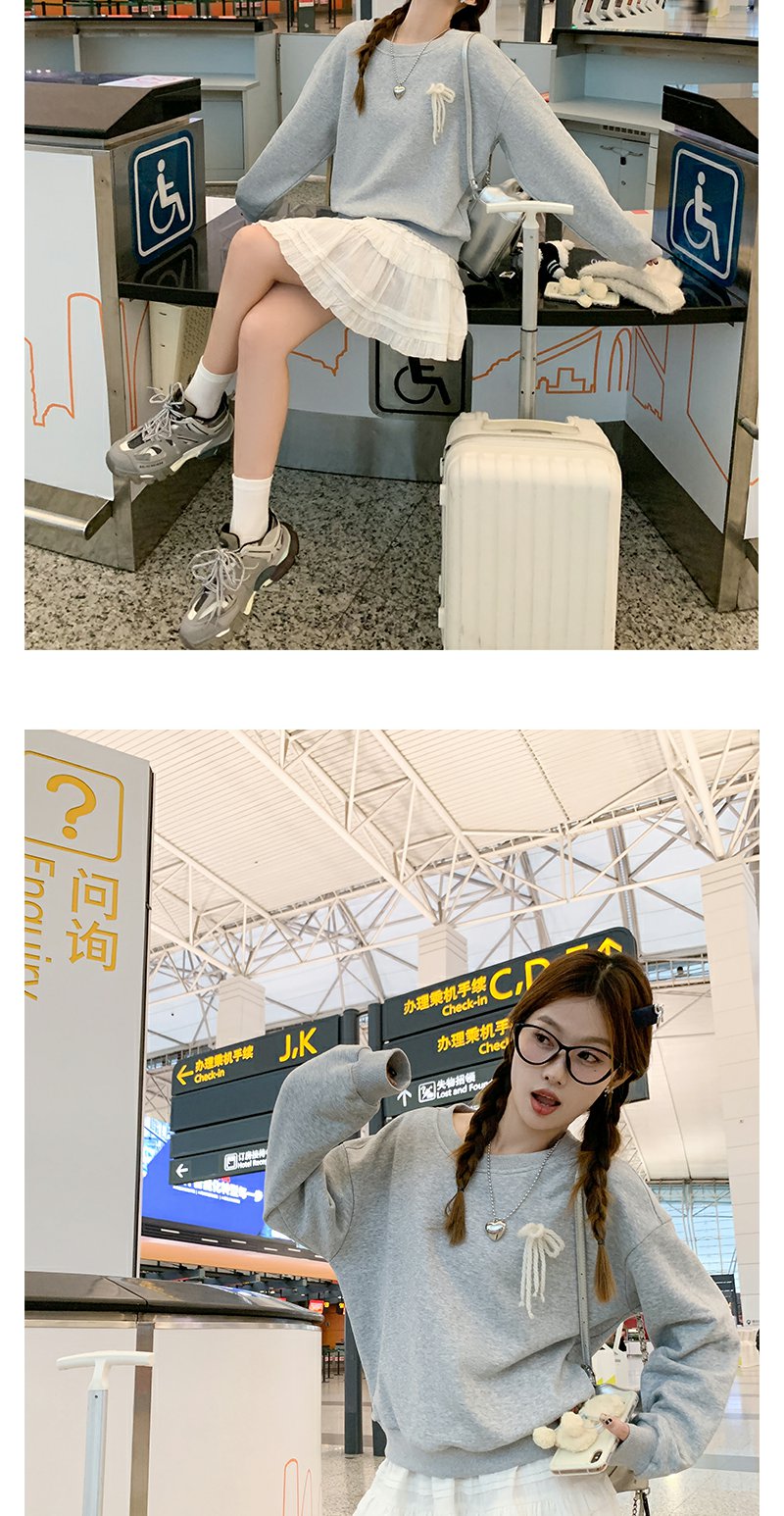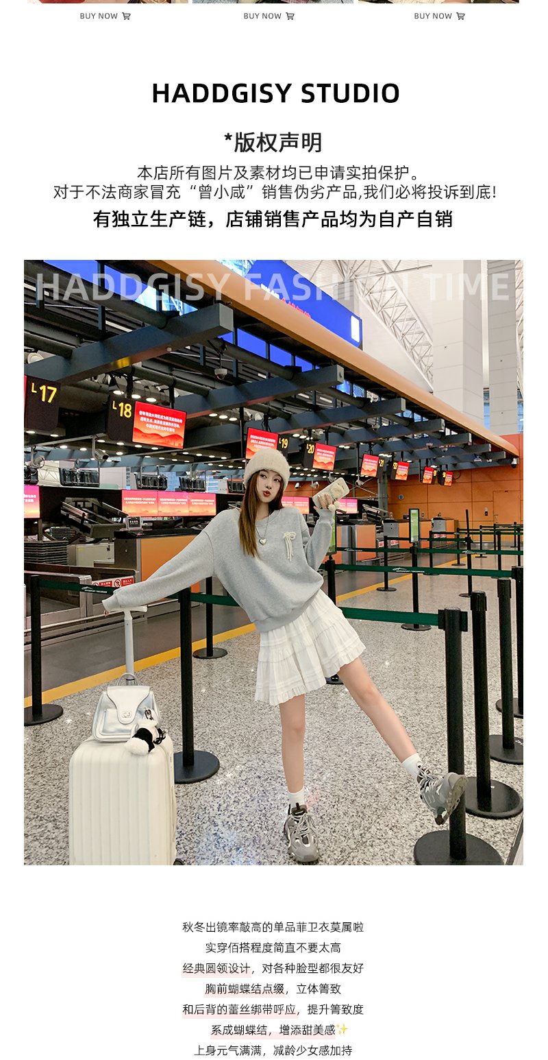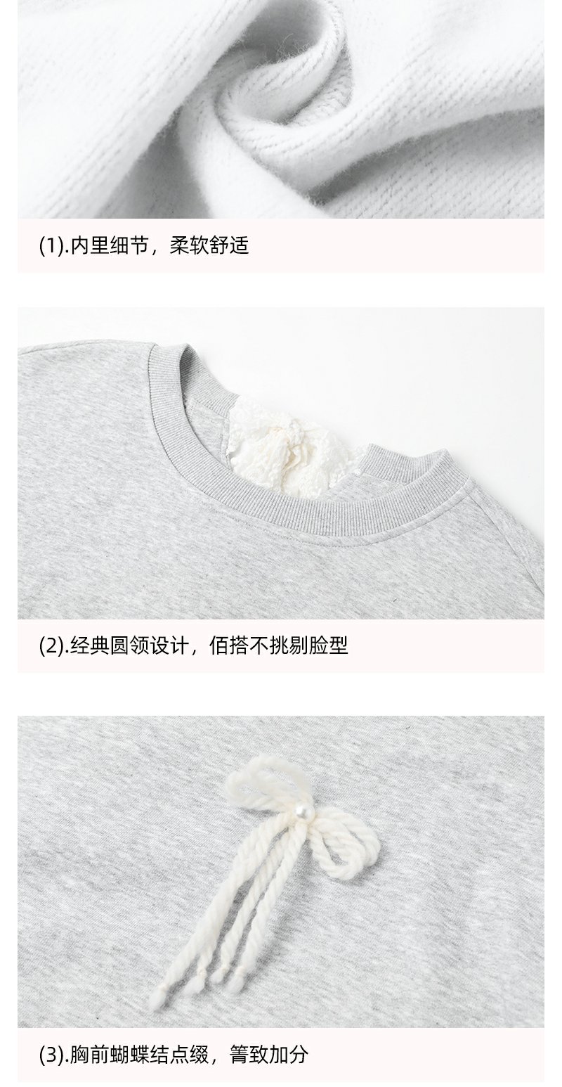 <曾小咸推荐>【韩系简约白色蝴蝶结花灰色卫衣