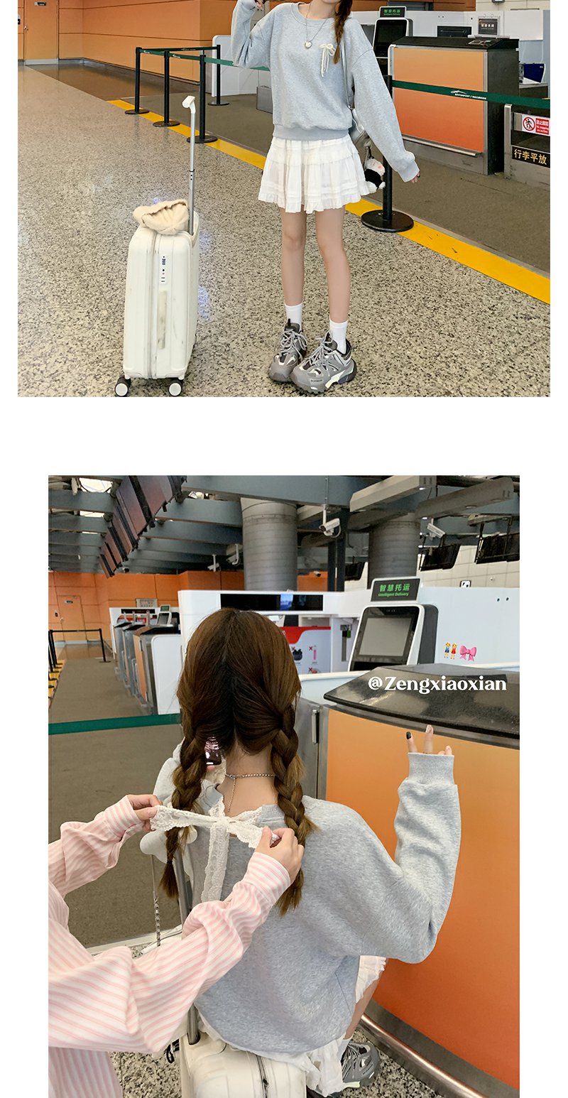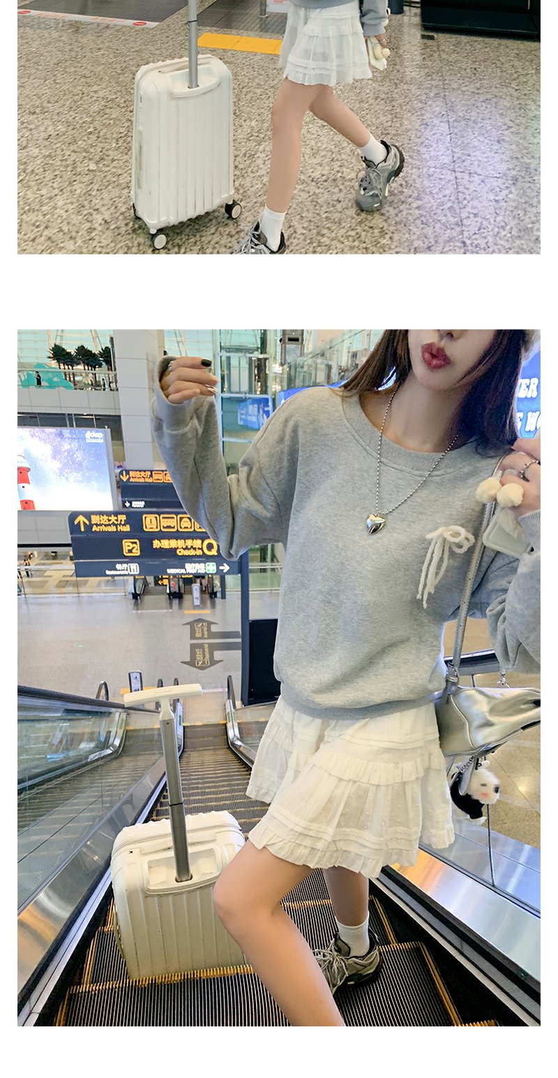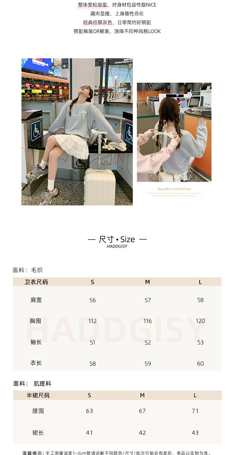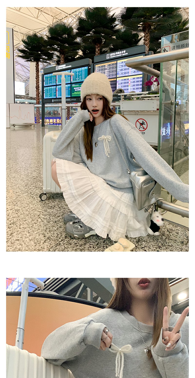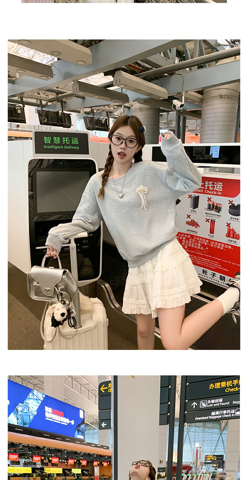<曾小咸推荐>【韩系简约白色蝴蝶结花灰色卫衣