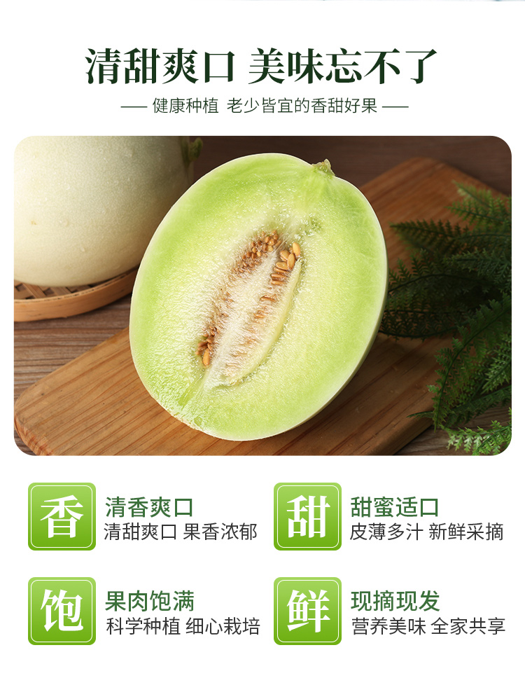 【产品规格】山东 玉菇甜瓜。(每箱都是独立的包装,如购买多件分多个包裹发出,可能会前后陆续到货)。