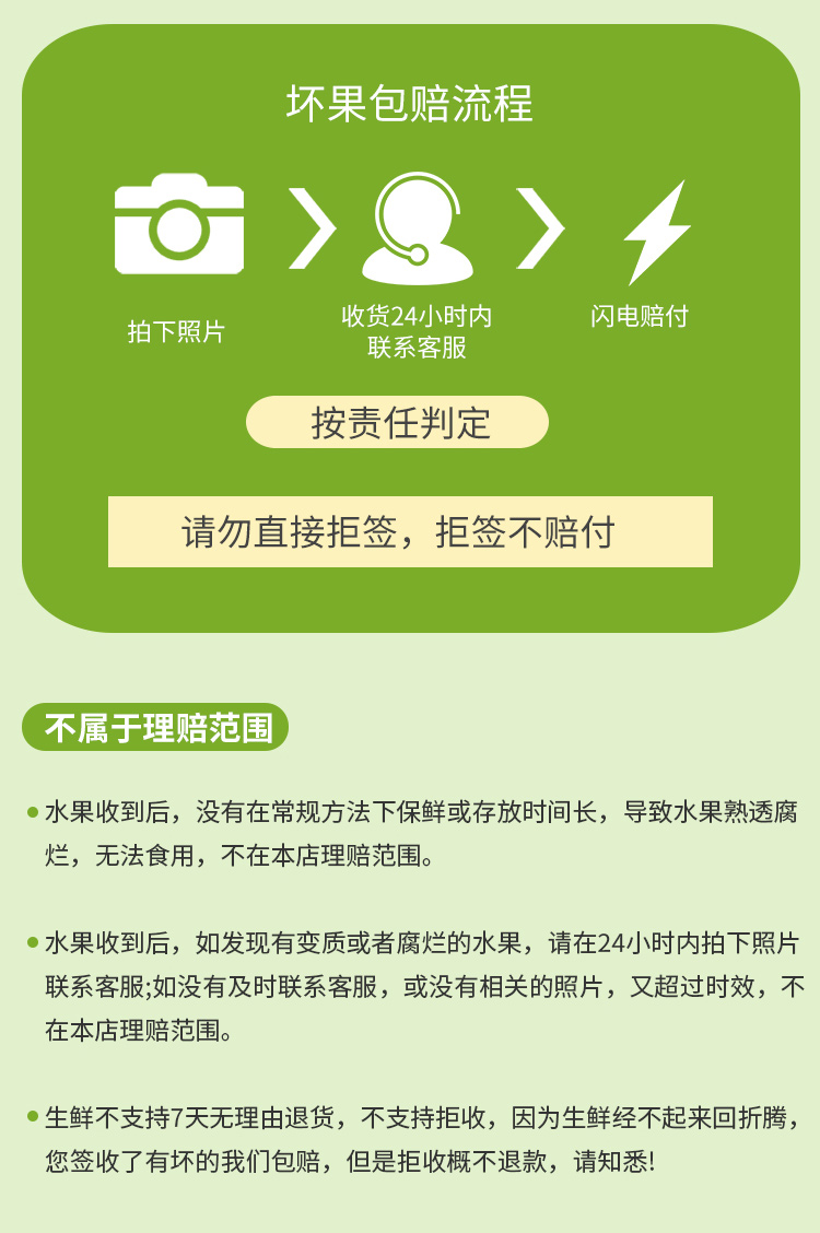 【特别说明】因生鲜产品具有特殊性和相关规定,下单时请一定认真确认收件信息,因客户原因导致转寄、延派、误派、擅自拒收、退货等不在理赔范围。