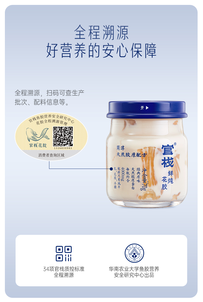 【私信门店顾问享专属折扣】官栈鲜炖花胶小规格轻滋补天然胶原蛋白(70g/瓶)