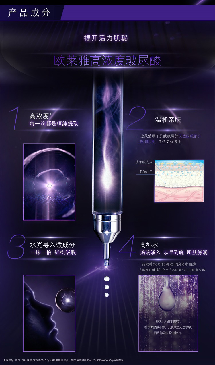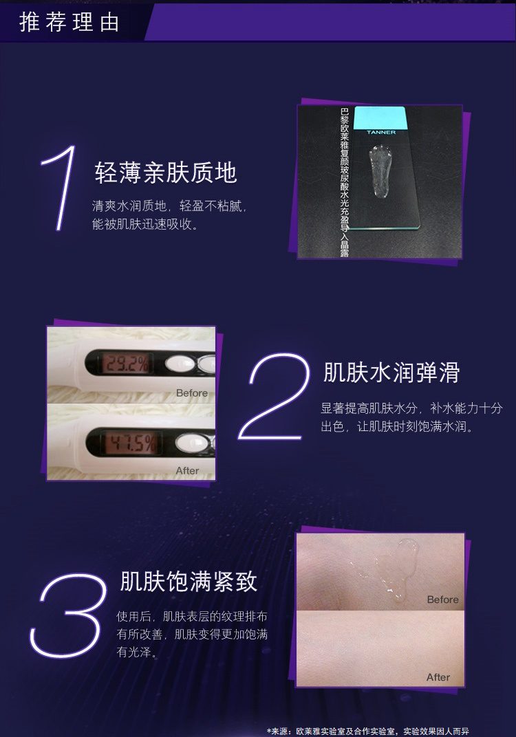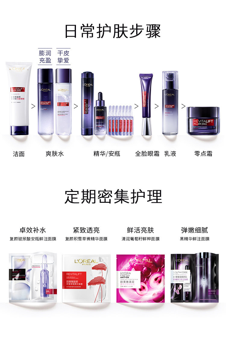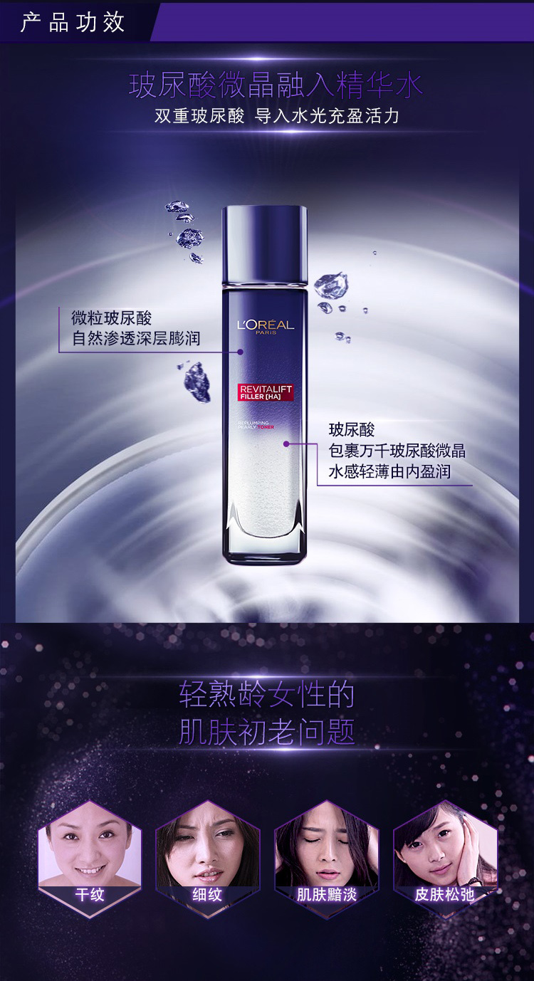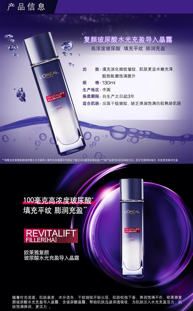【特惠】欧莱雅(LOREAL)复颜玻尿酸水光充盈导入晶露130ml(爽肤水/化妆水/保湿水/精华水高浓度玻尿酸保湿淡纹)