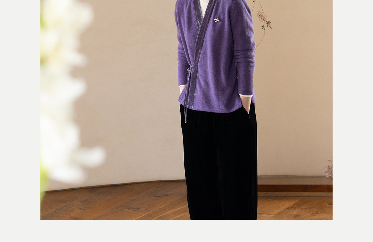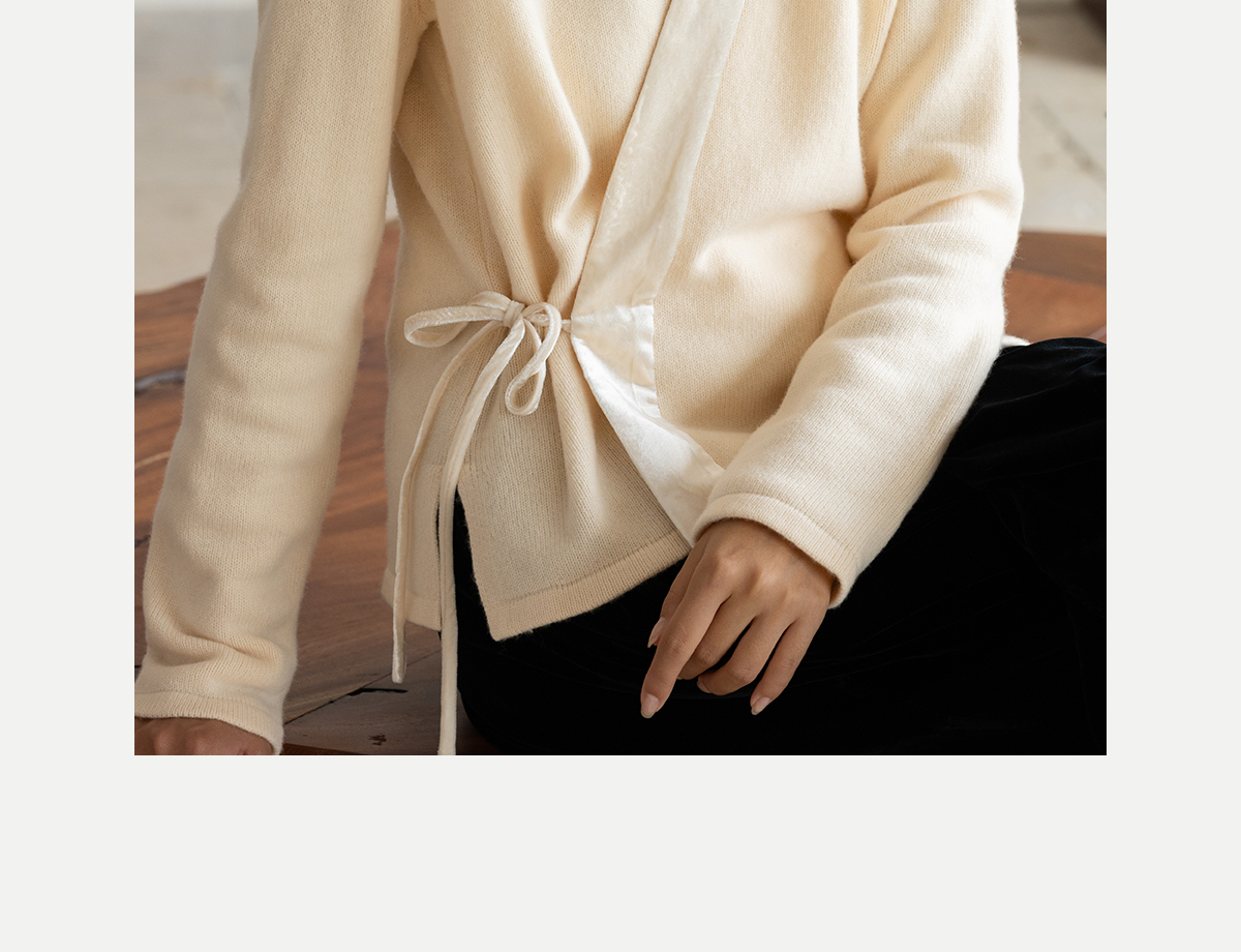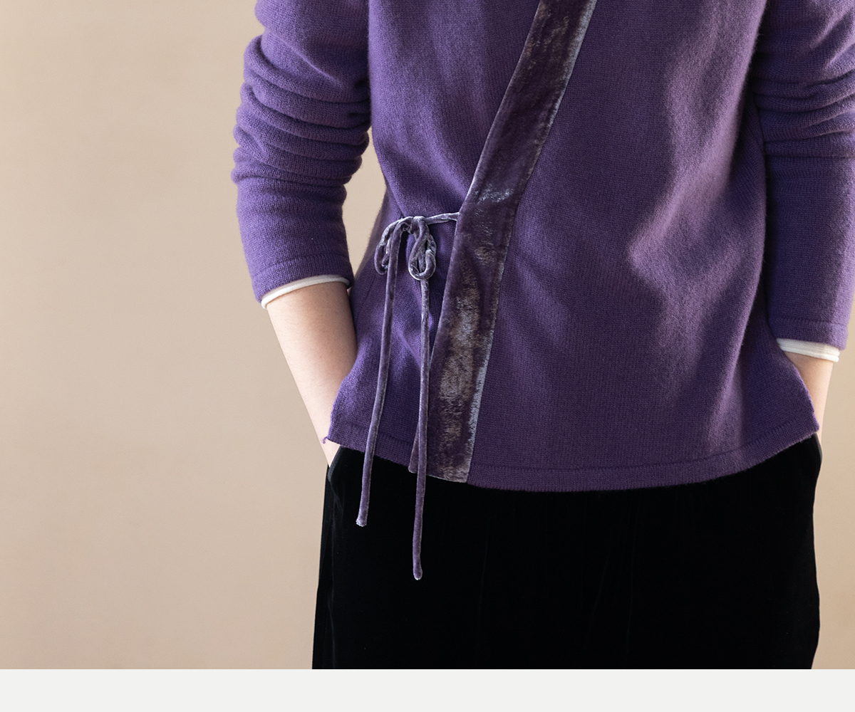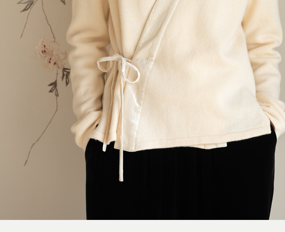 牧衣游原创 纯羊毛毛织外套软糯蓬松保暖V领系带百搭开衫 云栖