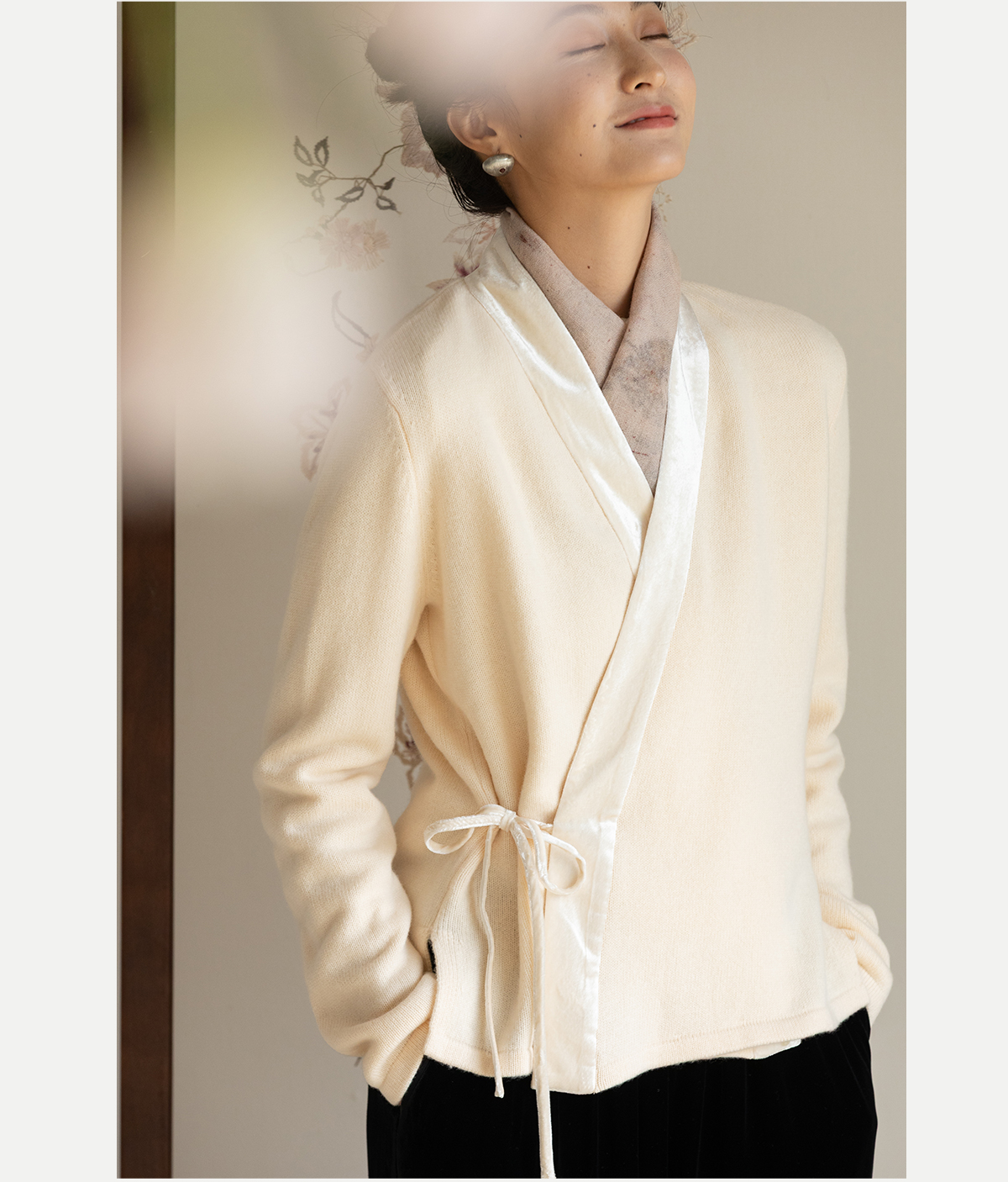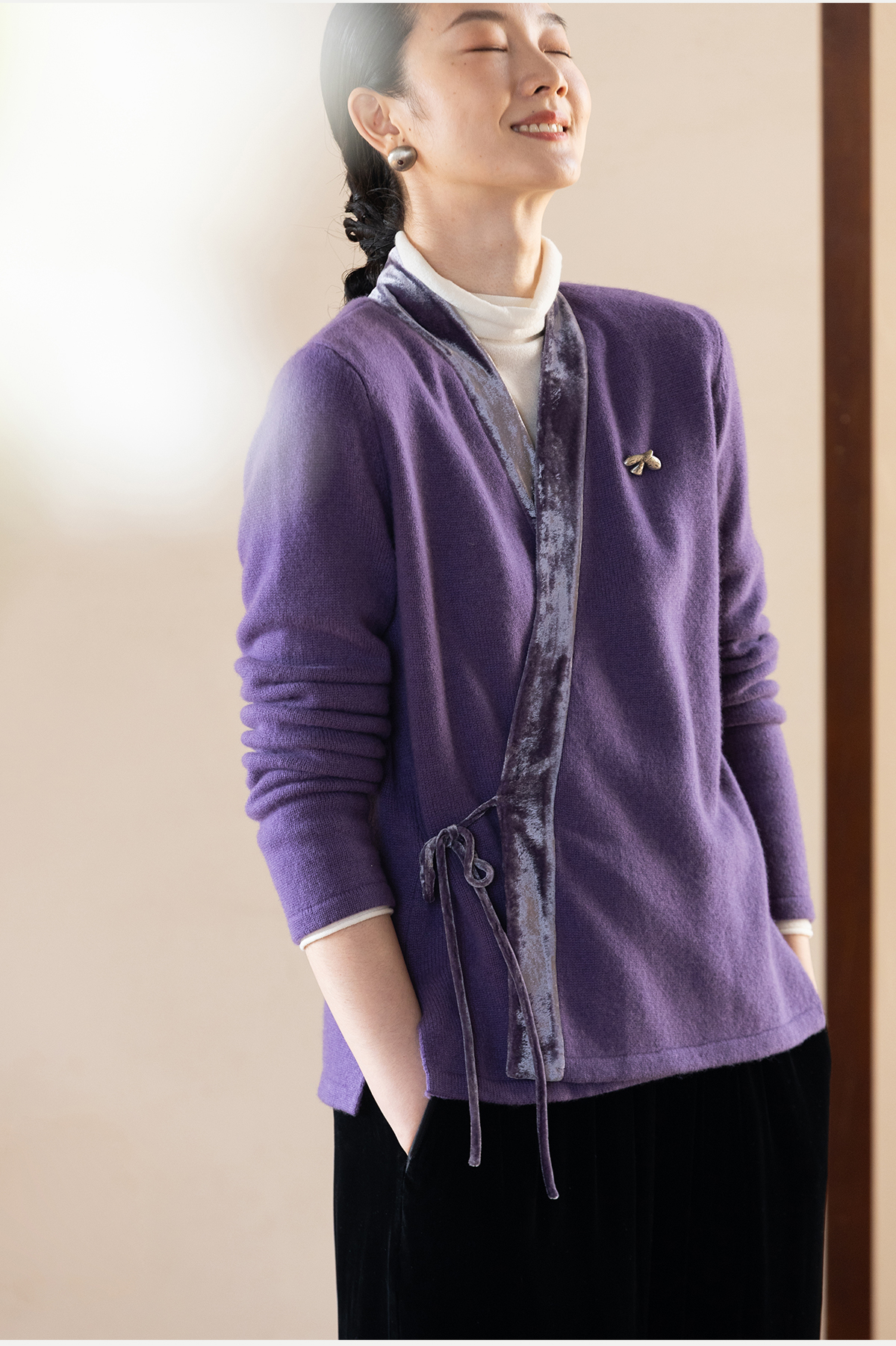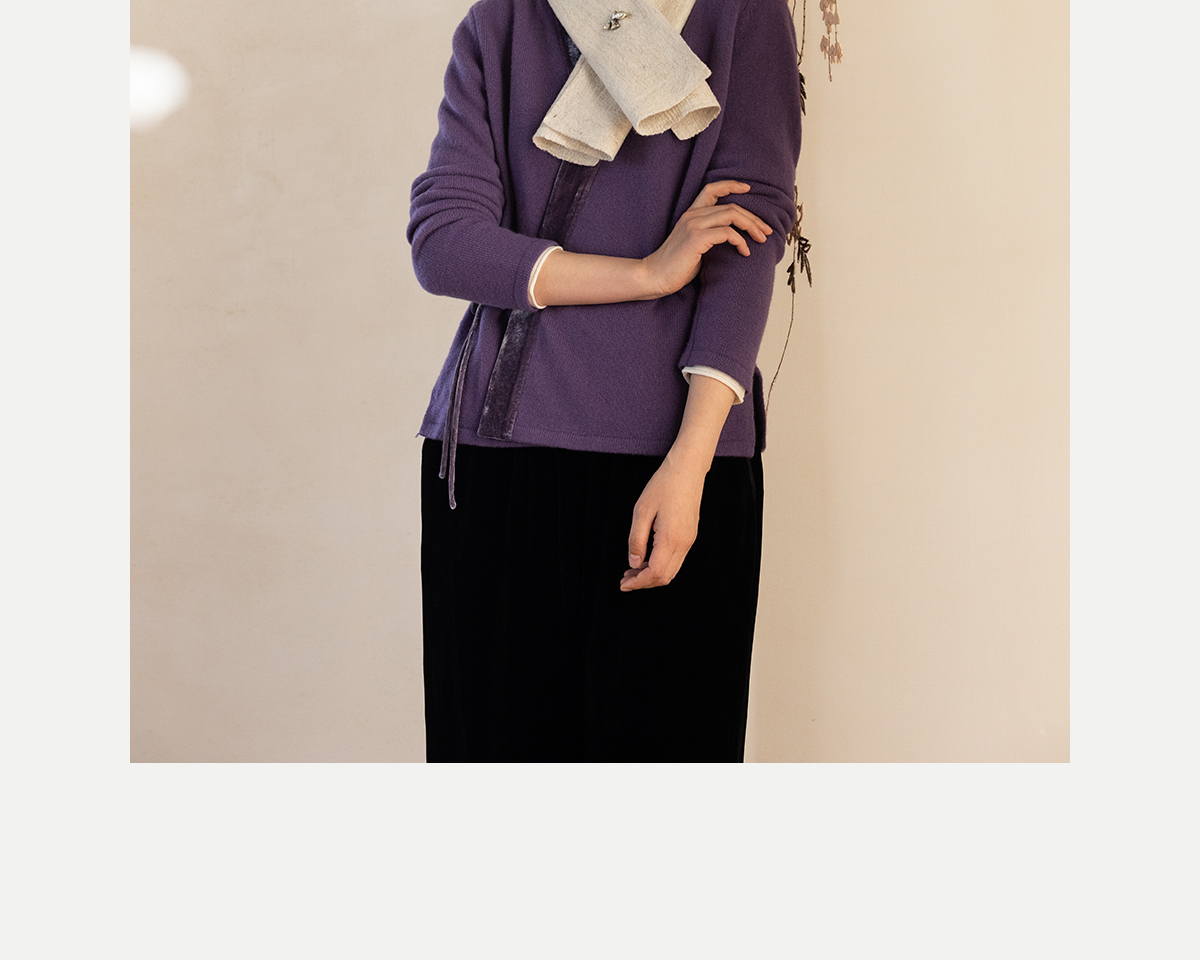 牧衣游原创 纯羊毛毛织外套软糯蓬松保暖V领系带百搭开衫 云栖