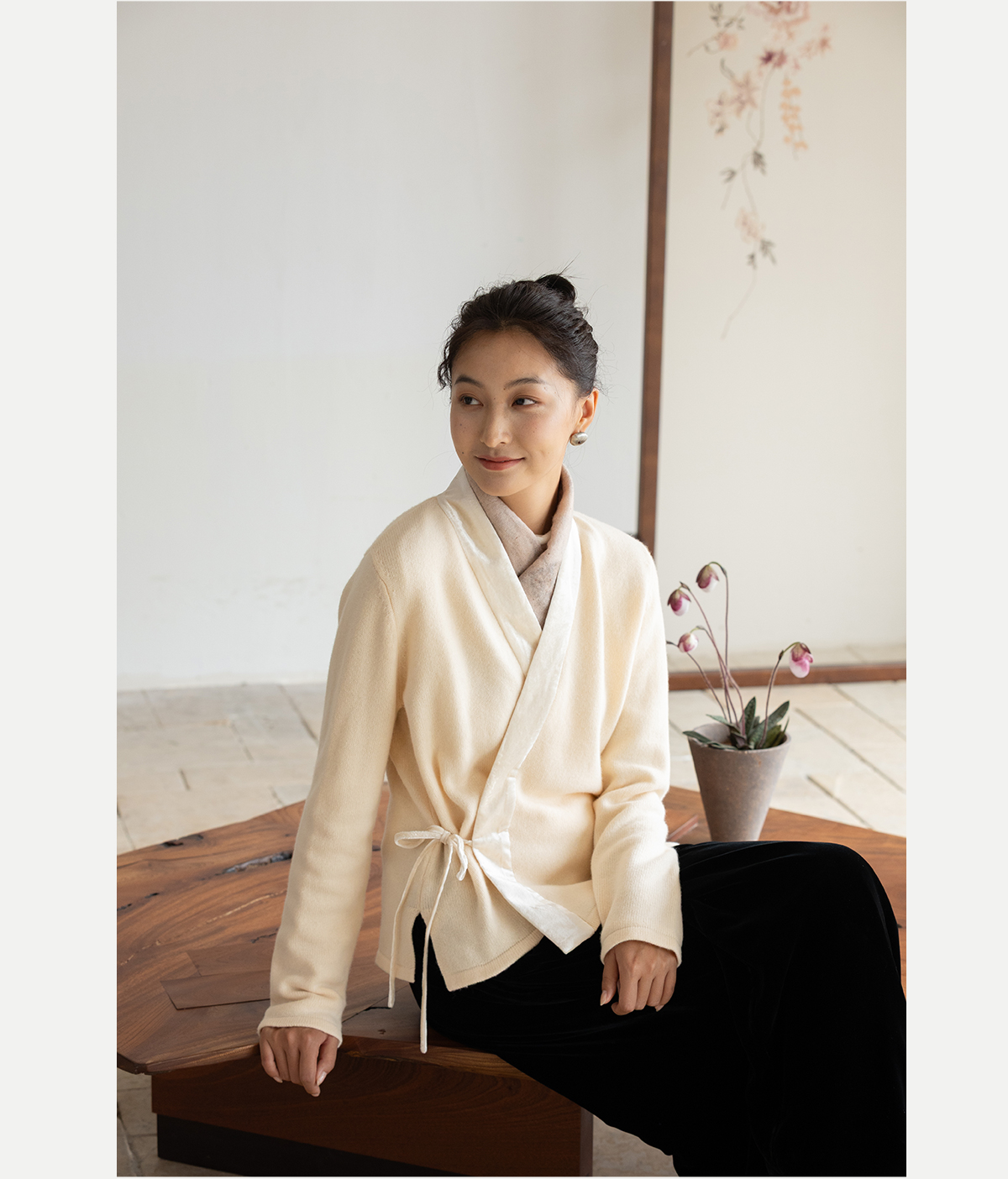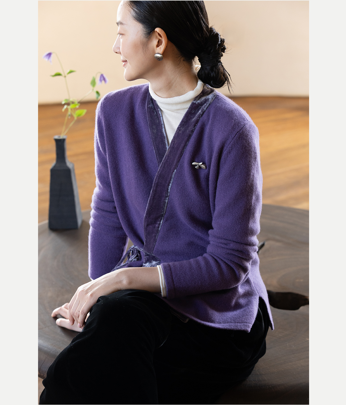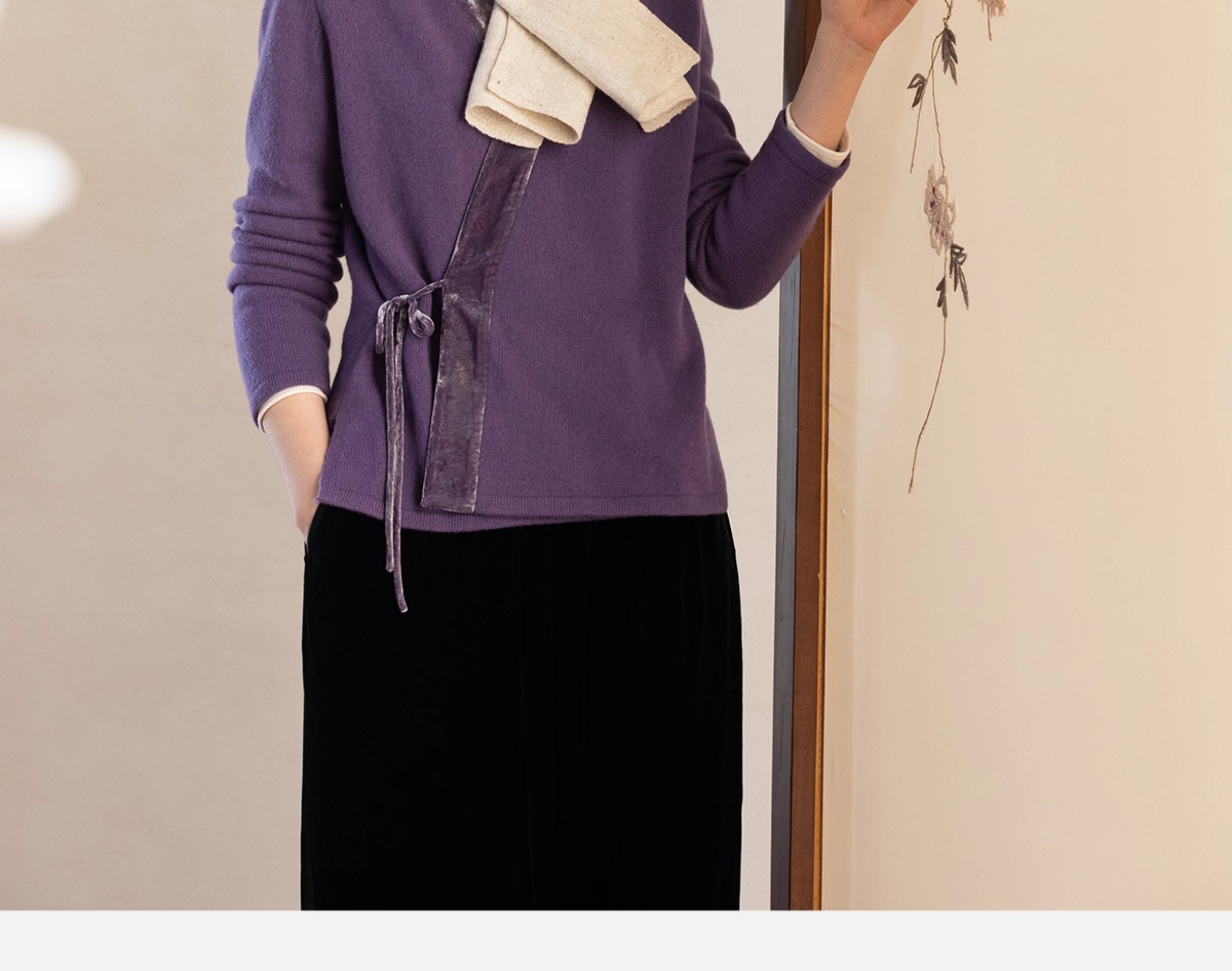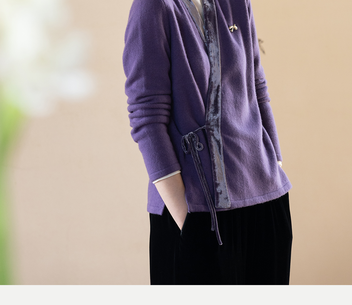 牧衣游原创 纯羊毛毛织外套软糯蓬松保暖V领系带百搭开衫 云栖