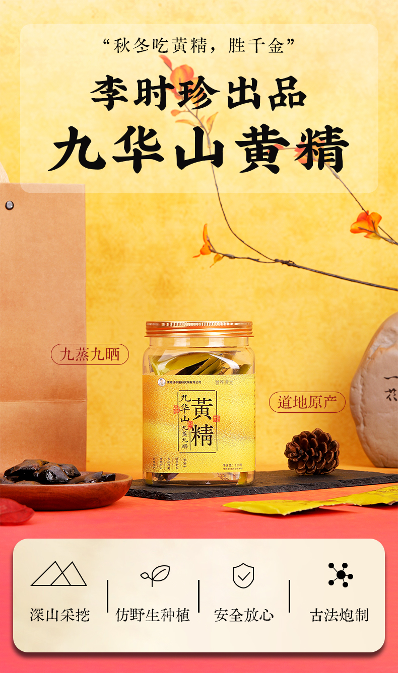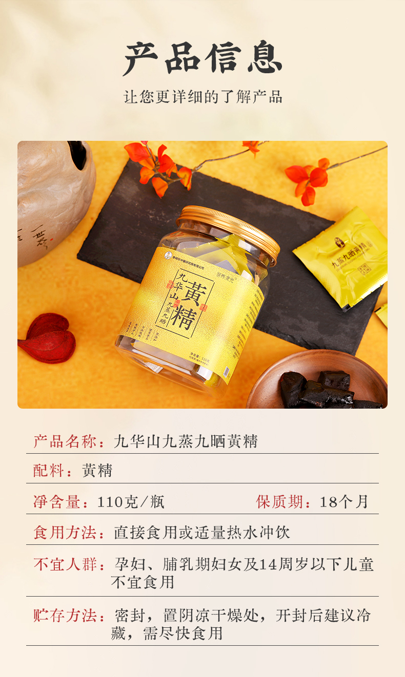 【李时珍出品九华山九蒸九晒黄精 】道地原产 古法炮制 独立包装 肉质细腻 即食便携
