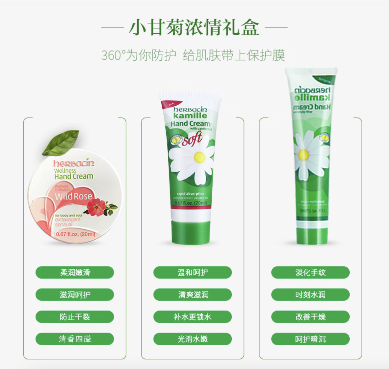 HERBACIN好本清小甘菊经典护手霜礼盒(经典75ml+20ml*2) 【教师节礼物】