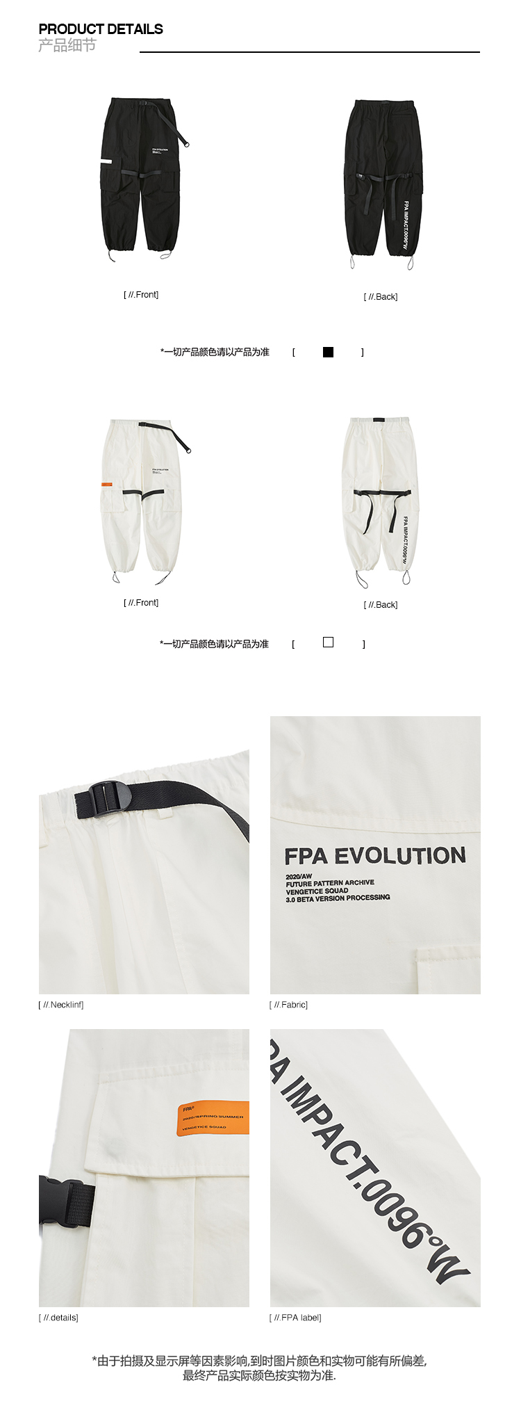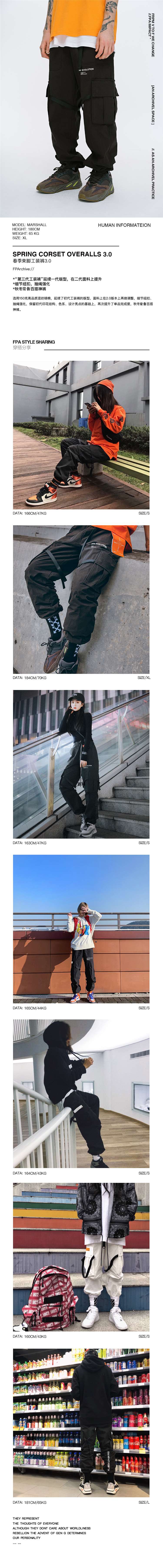 FPA(VENGETICE) 春季机能风束脚工装裤 宽松抽绳男直筒潮牌长裤子