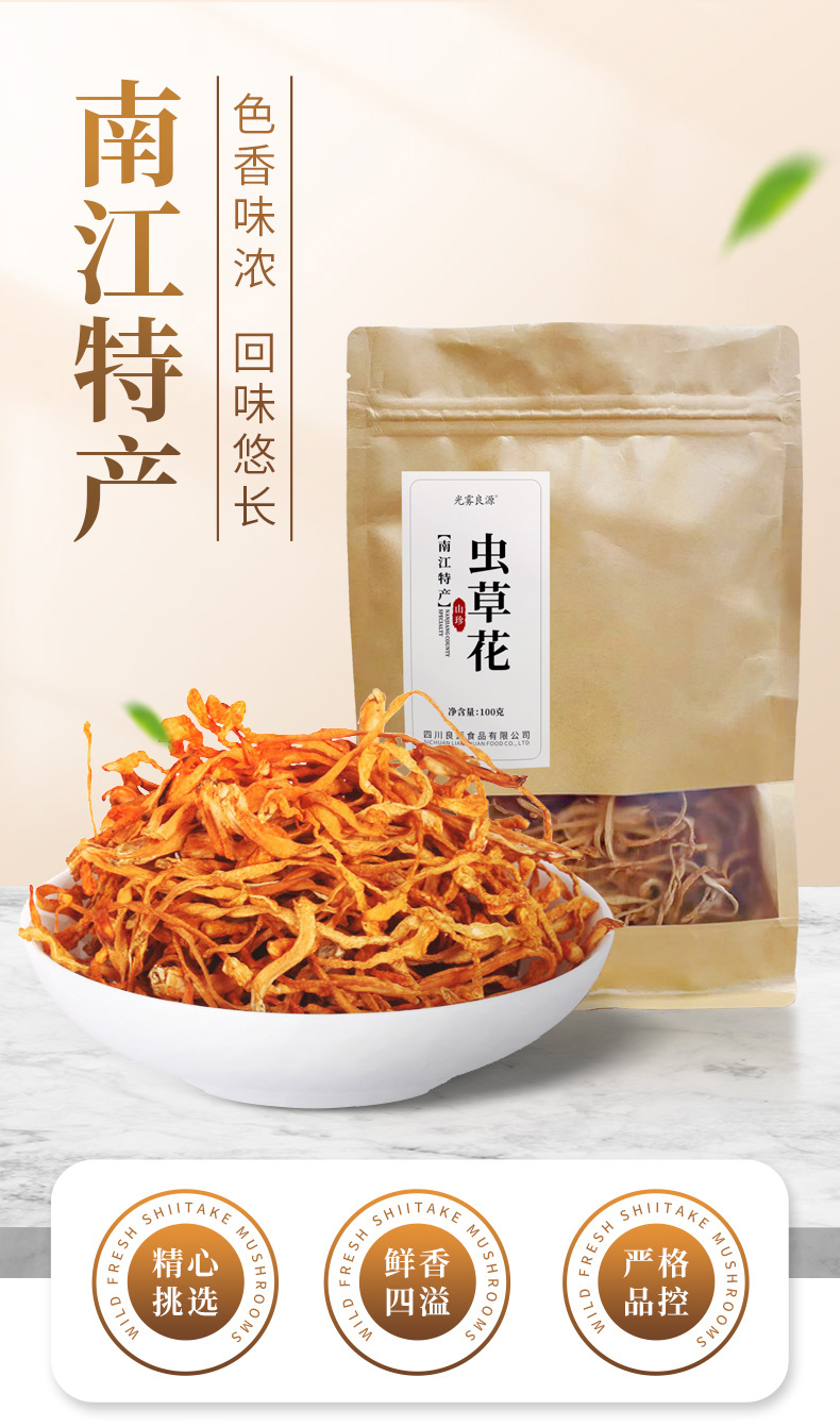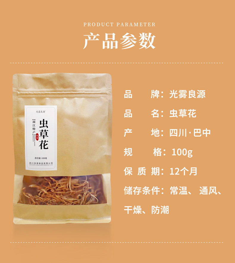 光雾良源 精选优质无硫虫草花100克袋装