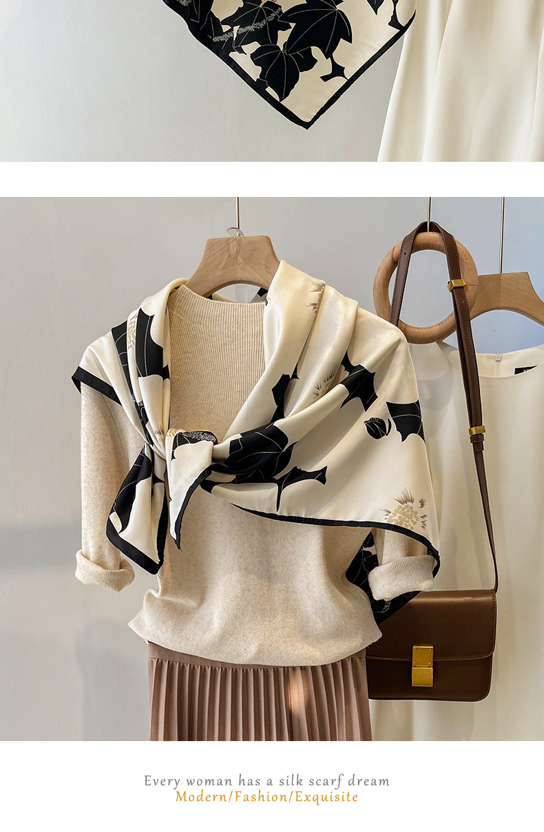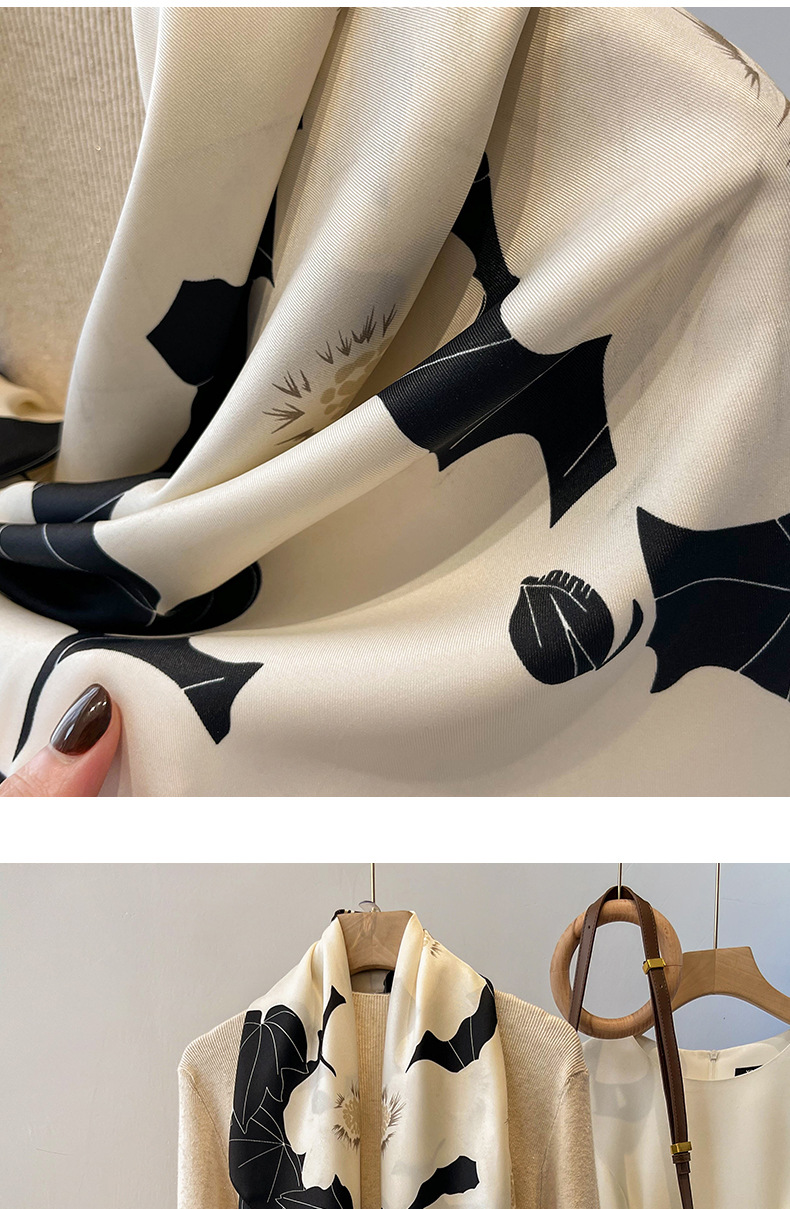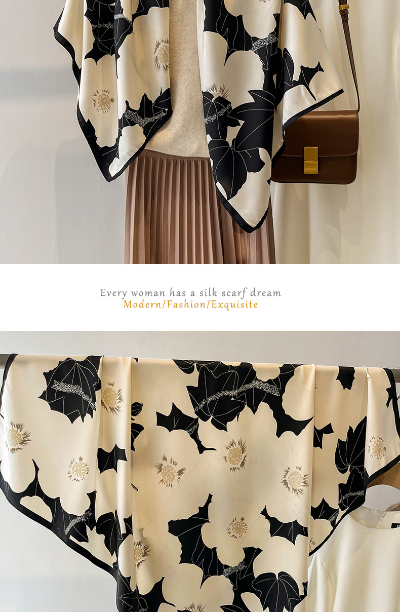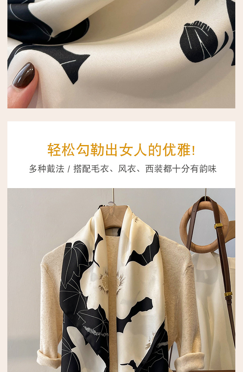 90x90正方形大方巾薄围巾黑白碎花小丝巾女妈妈春秋冬款生日送礼