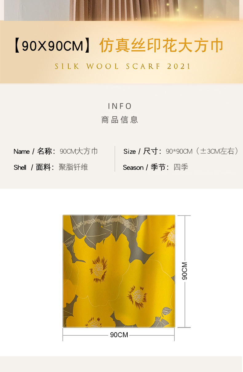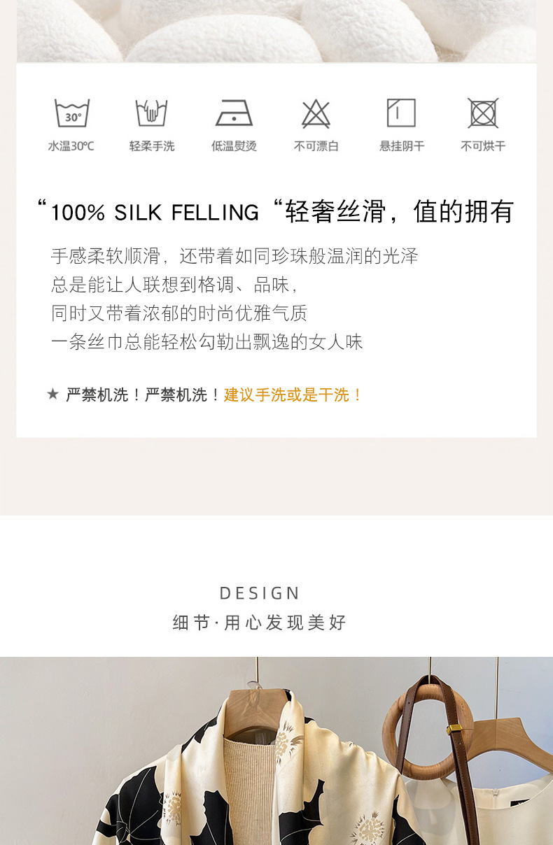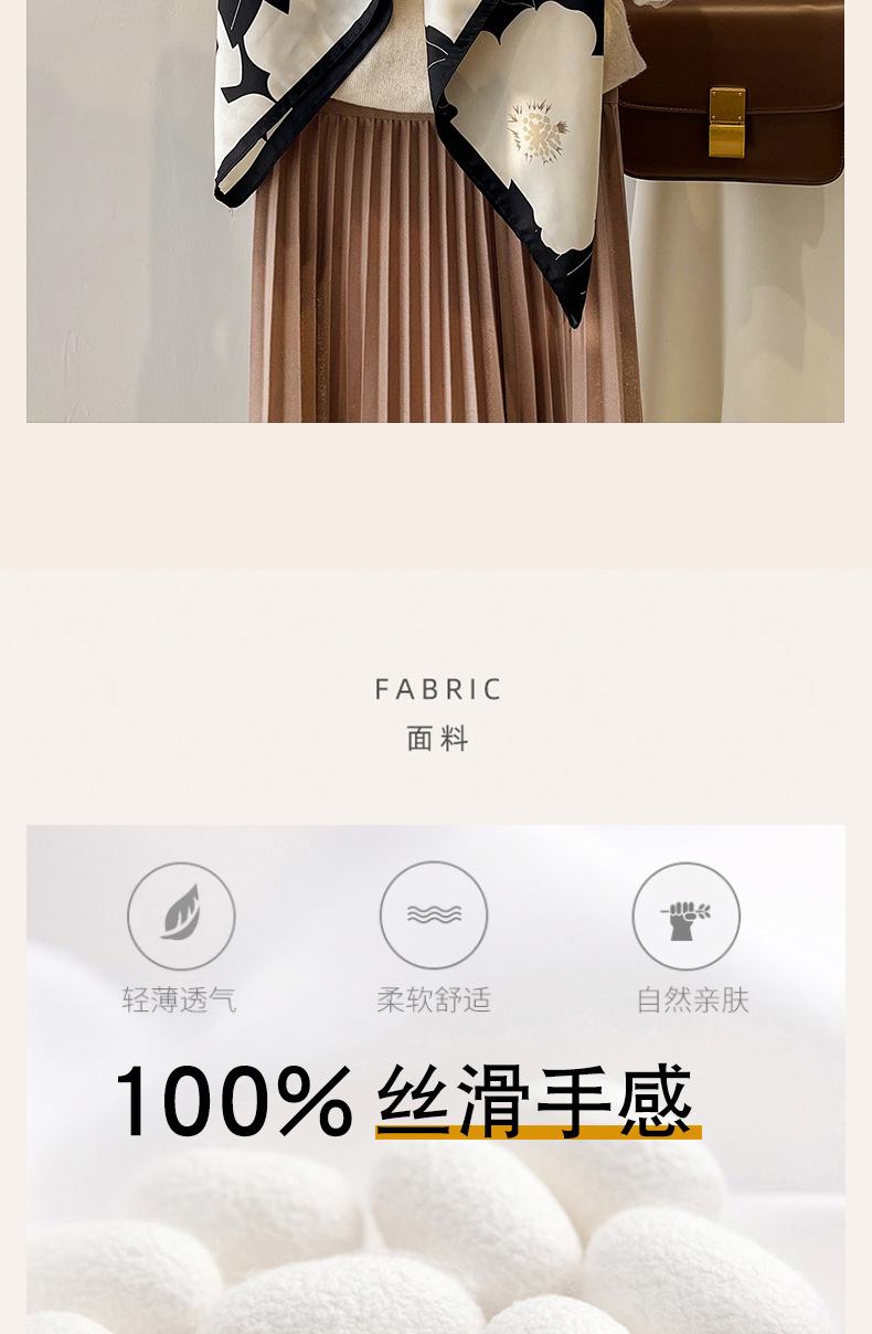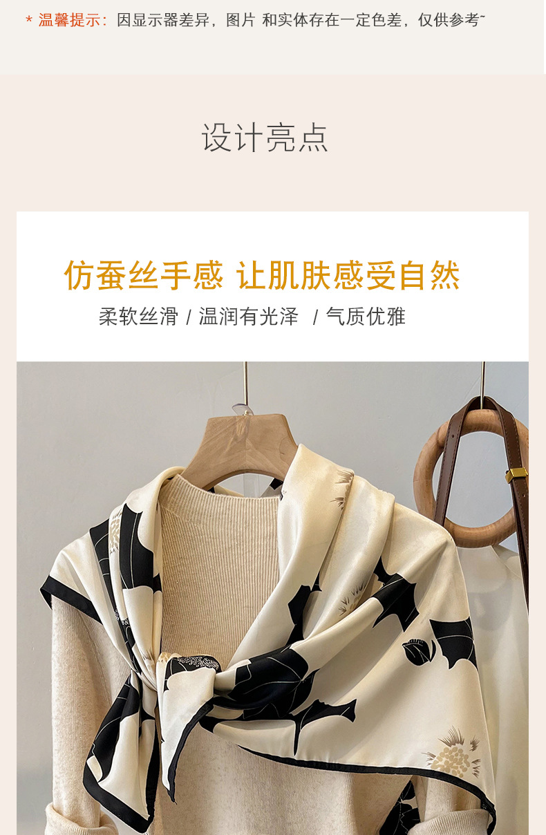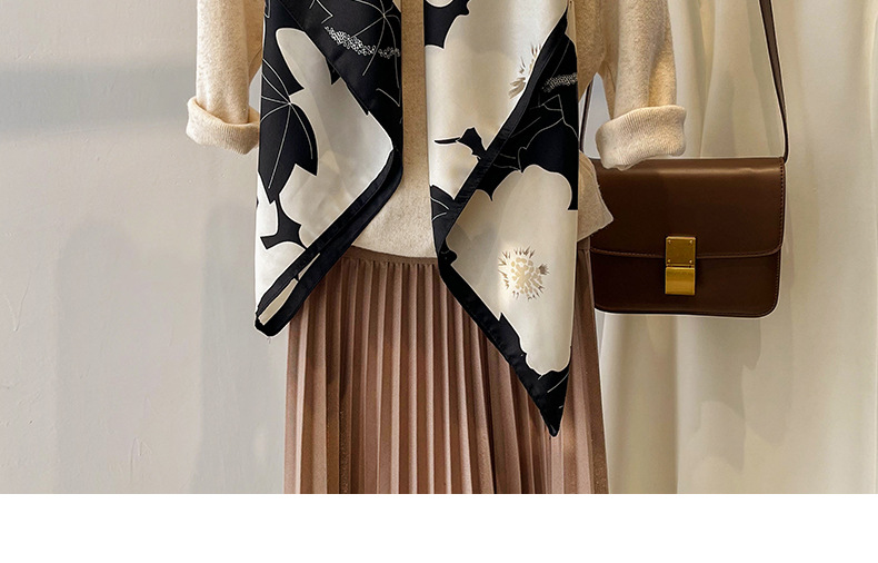 90x90正方形大方巾薄围巾黑白碎花小丝巾女妈妈春秋冬款生日送礼