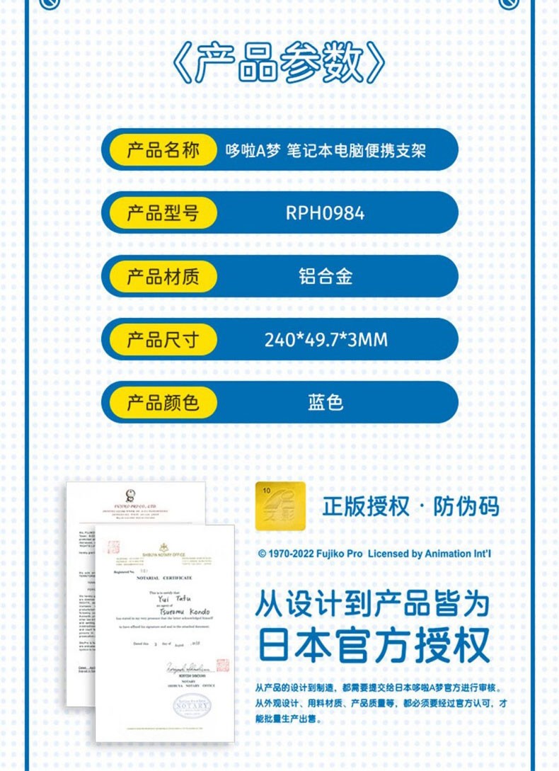 ROCK洛克 哆啦A梦 笔记本电脑便携支架
