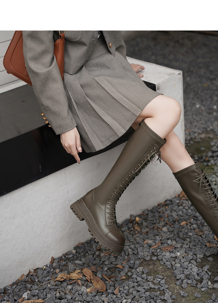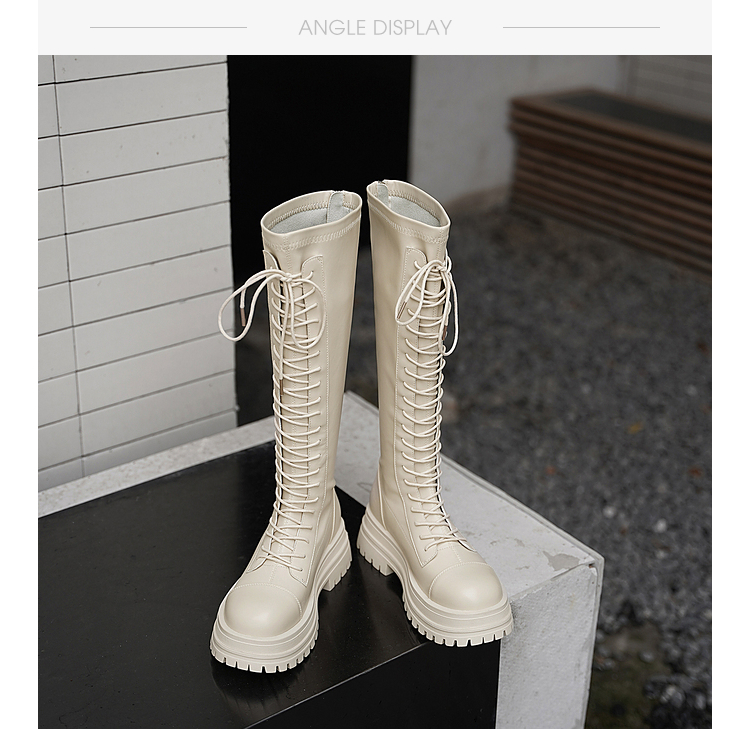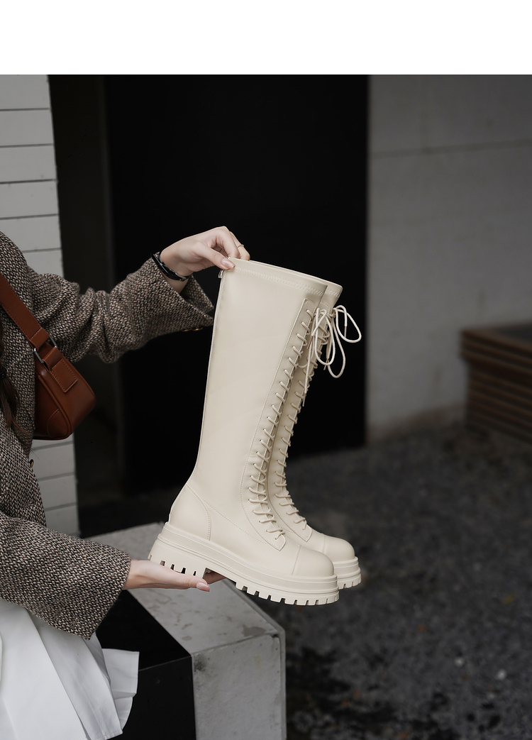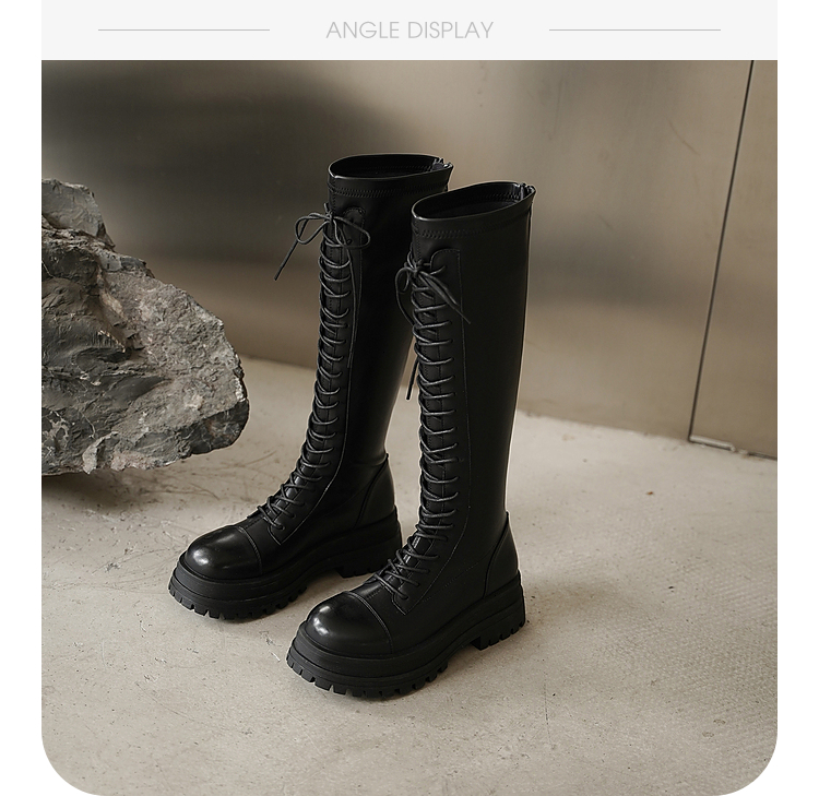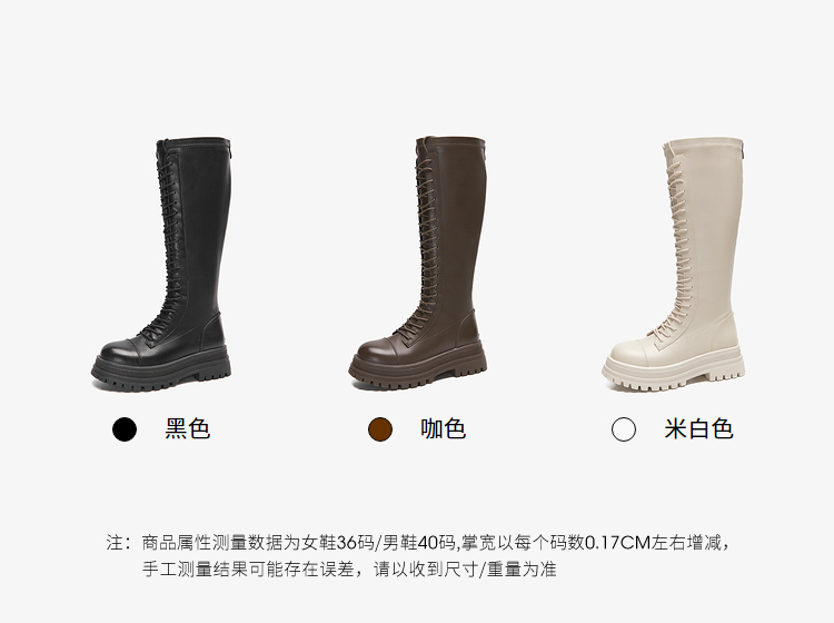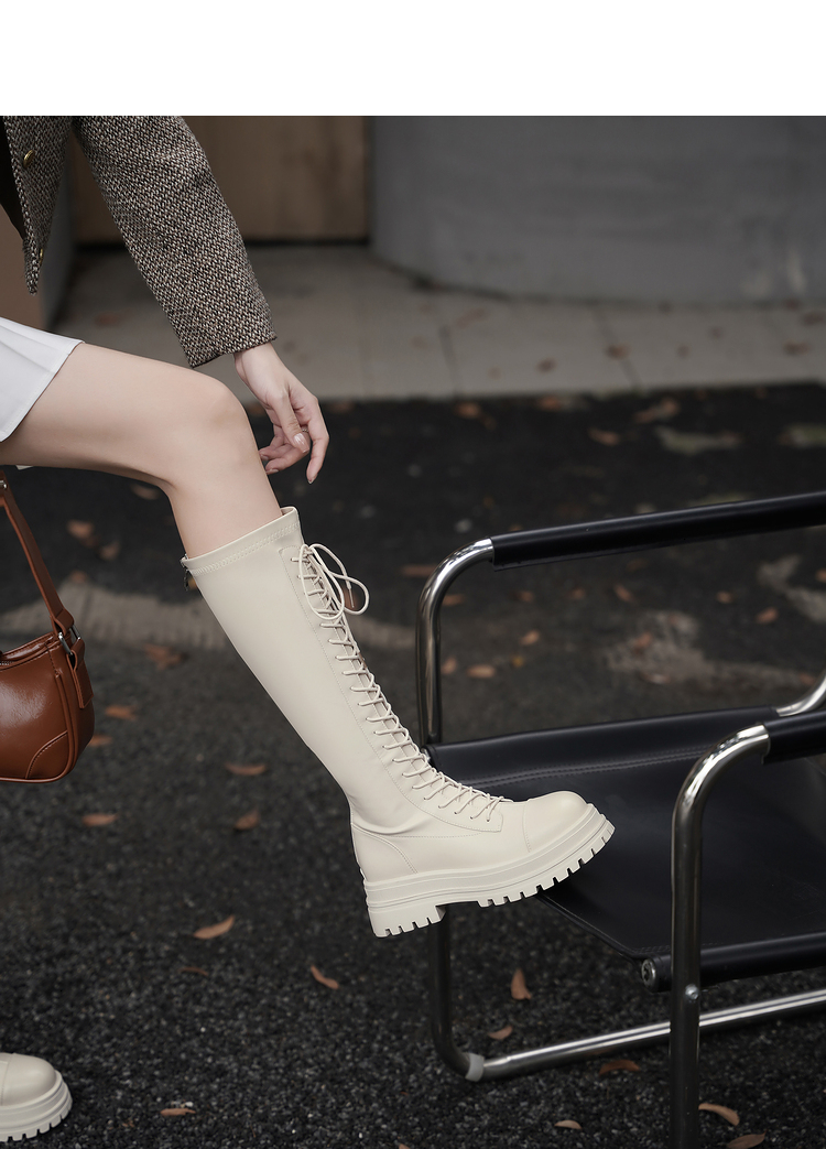 西遇长筒马丁靴女新款秋季弹力高筒骑士靴厚底不过膝长靴子D1933853