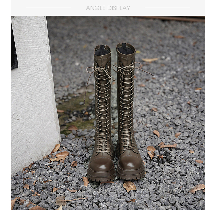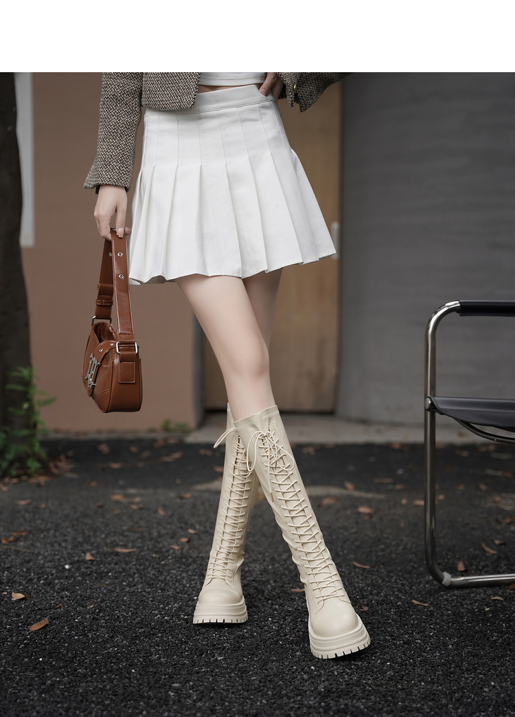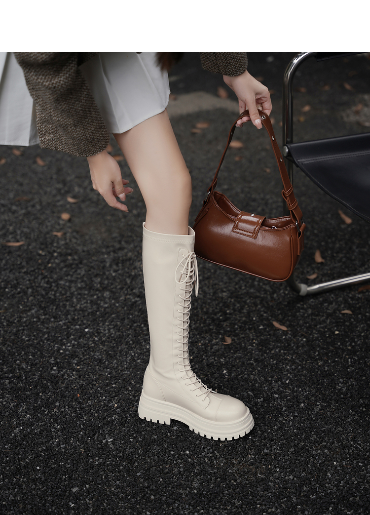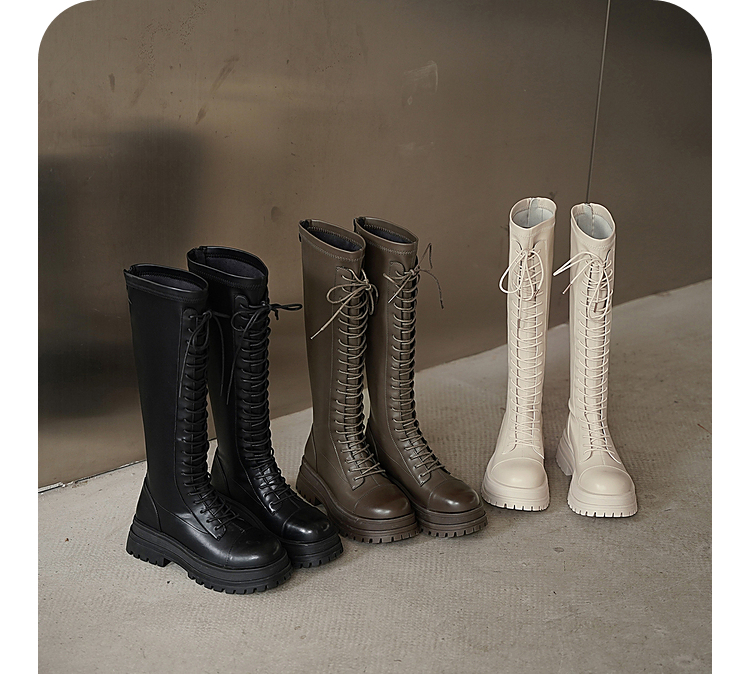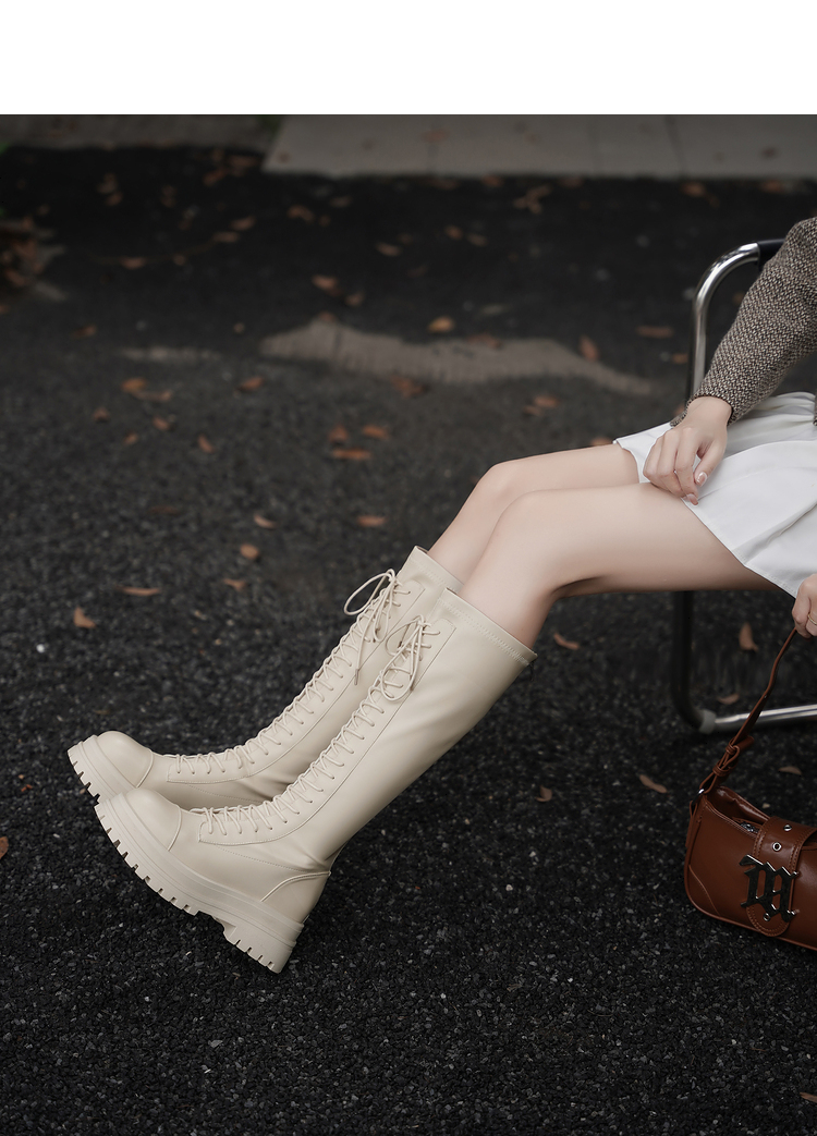 西遇长筒马丁靴女新款秋季弹力高筒骑士靴厚底不过膝长靴子D1933853