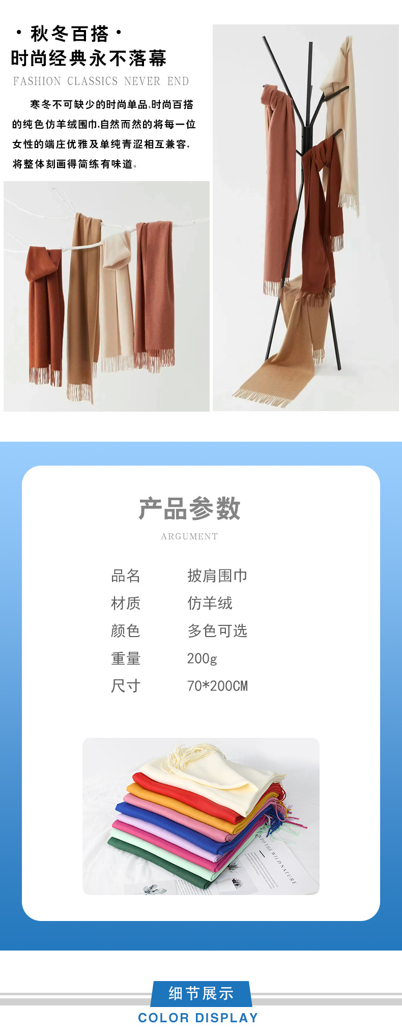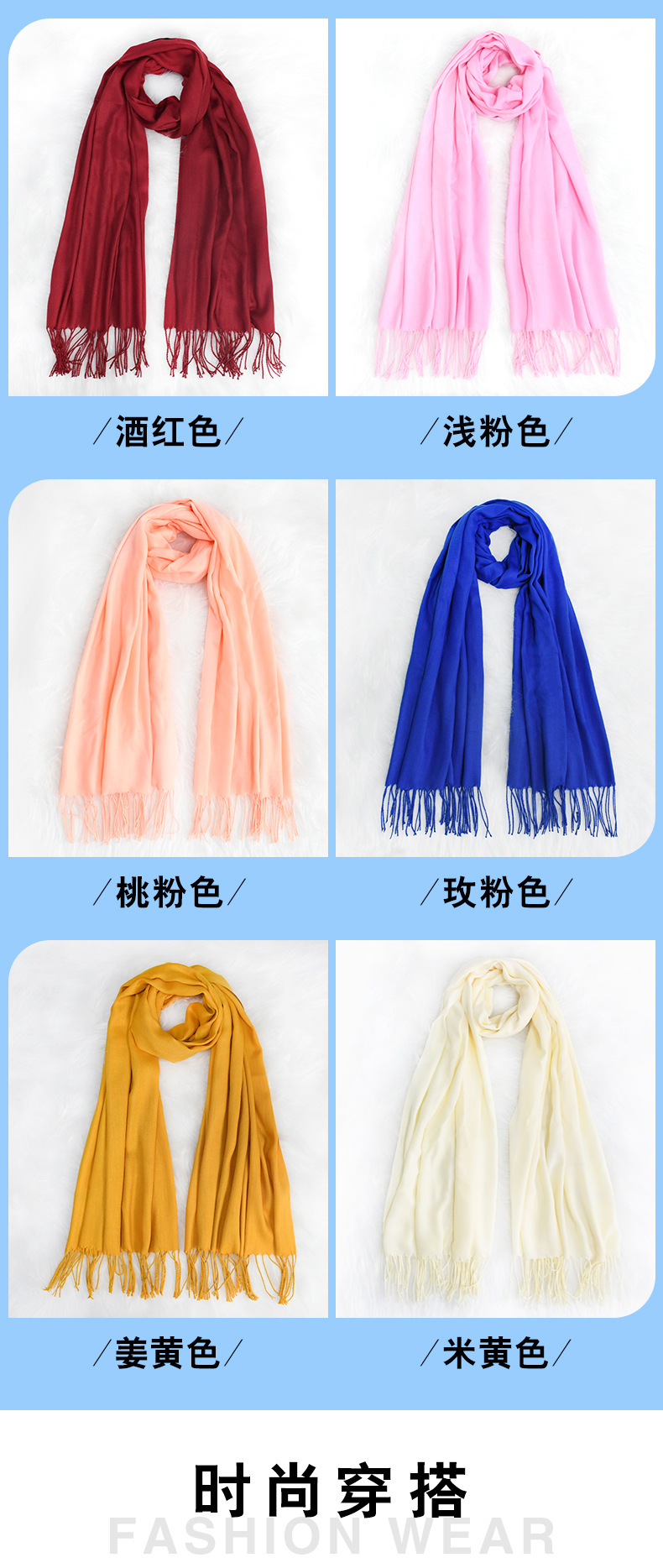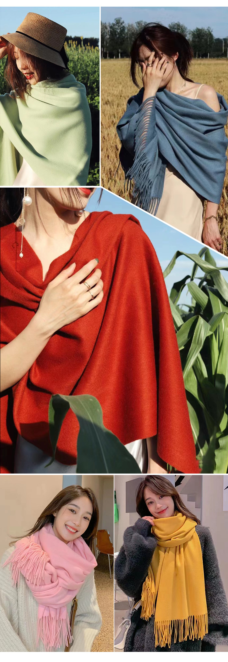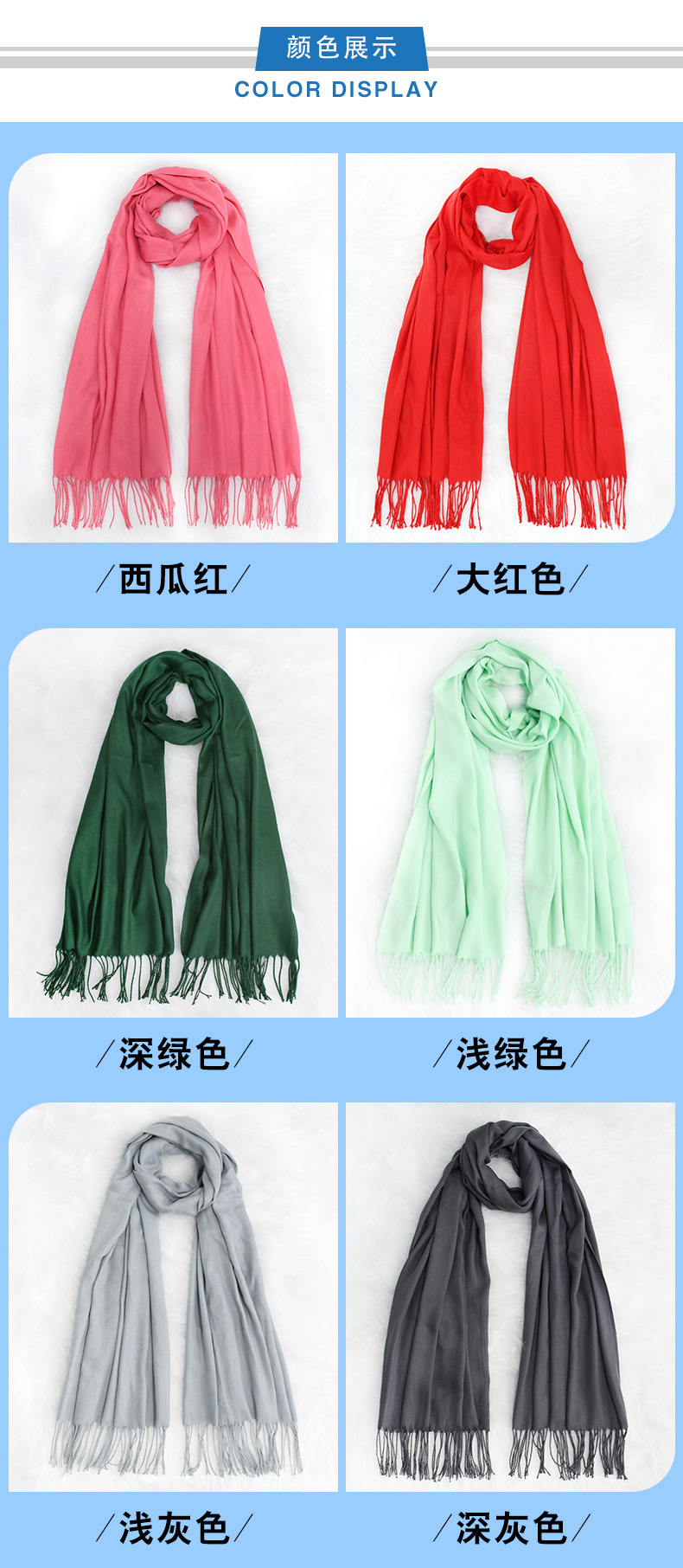「数色可选!纯色围巾」秋冬纯色围巾女红色年会刺绣200g保暖披肩围脖配饰