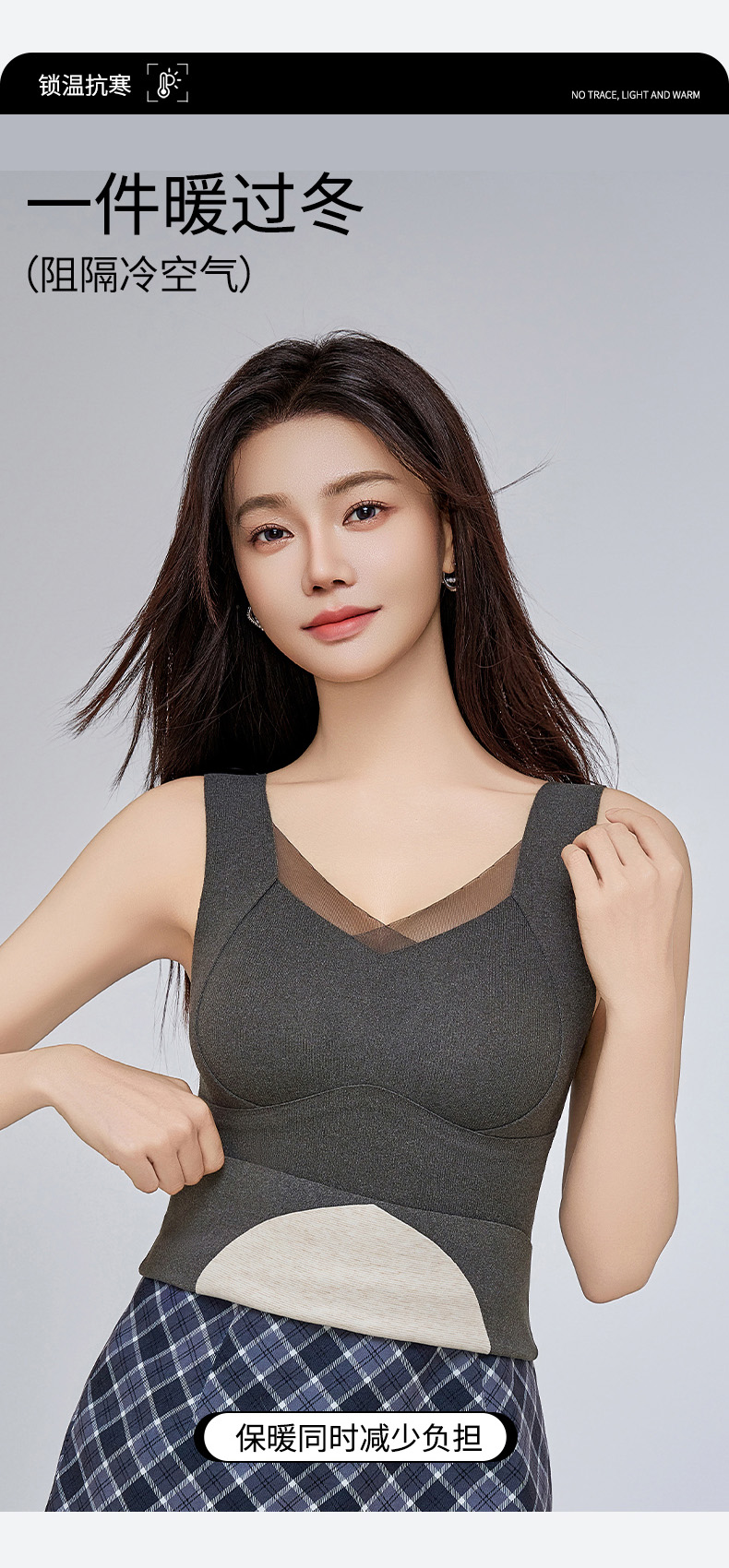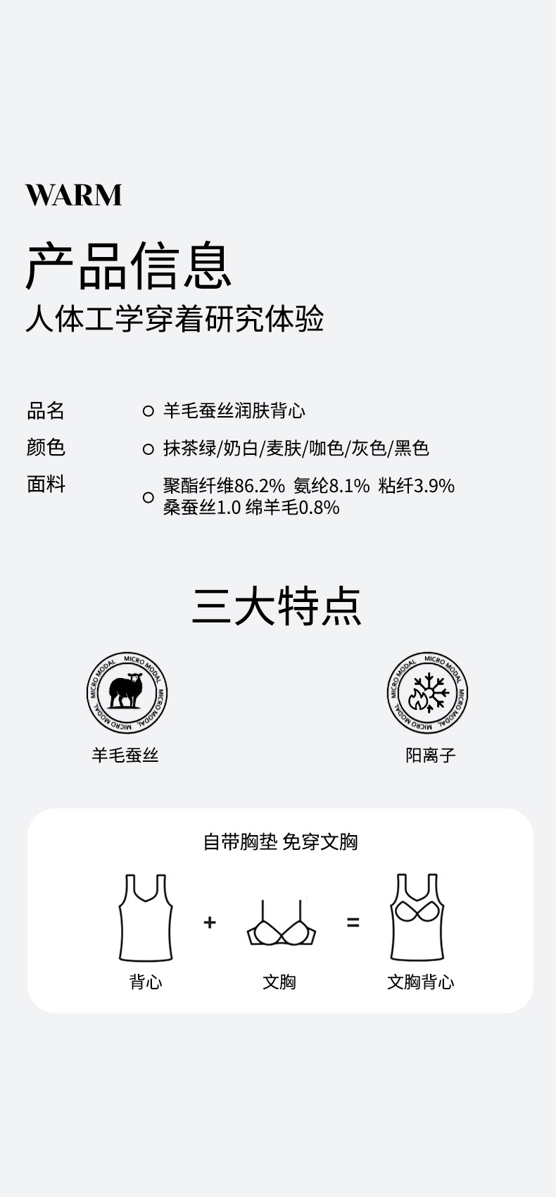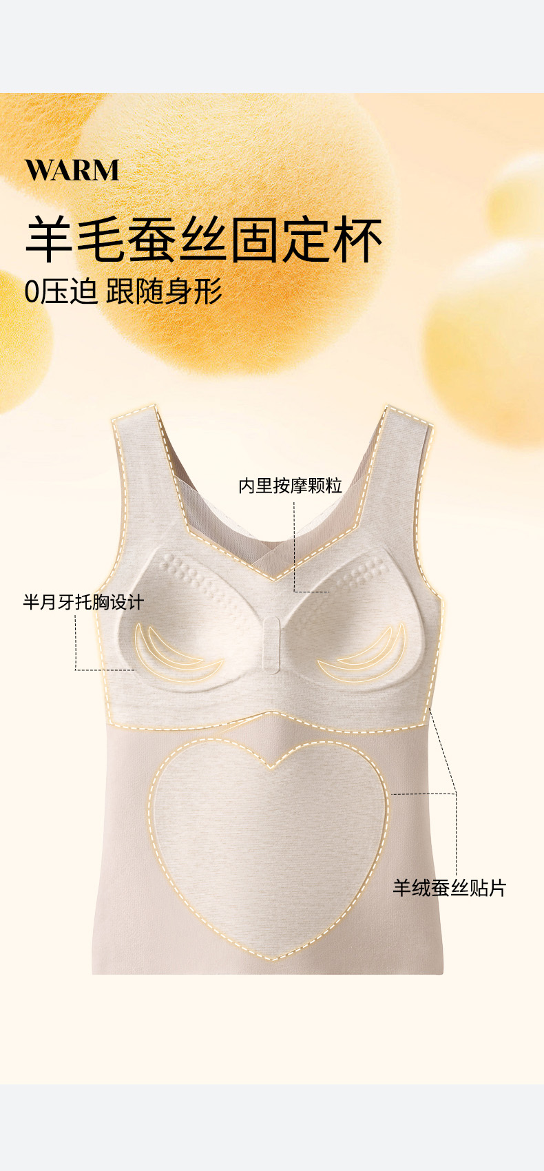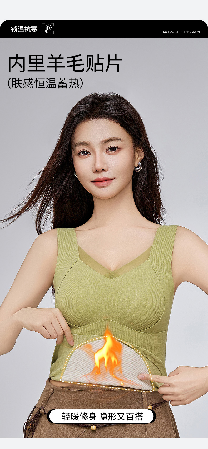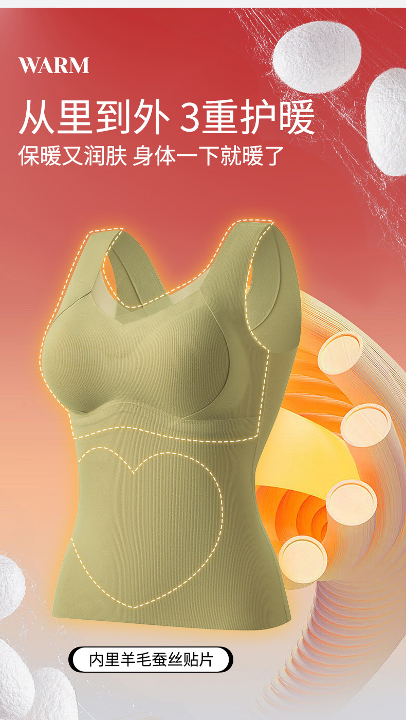 【169元2件】女士秋冬羊毛蚕丝润肤胸垫一体背心冬季打底衣女士保暖背心【FF25811】