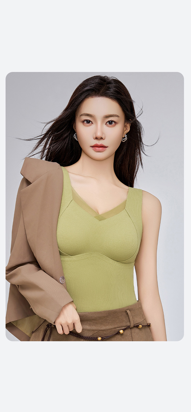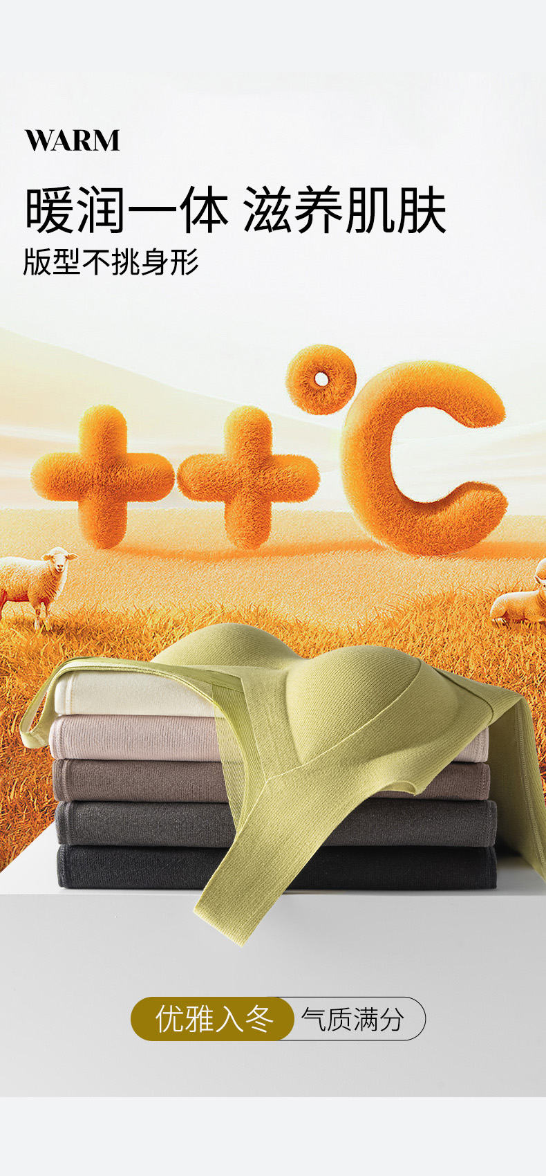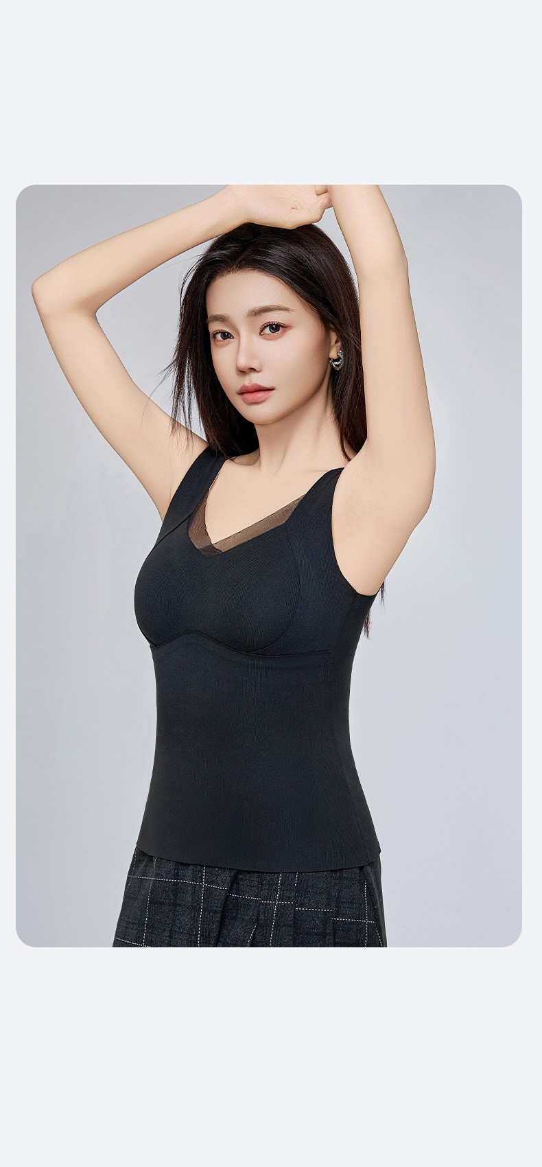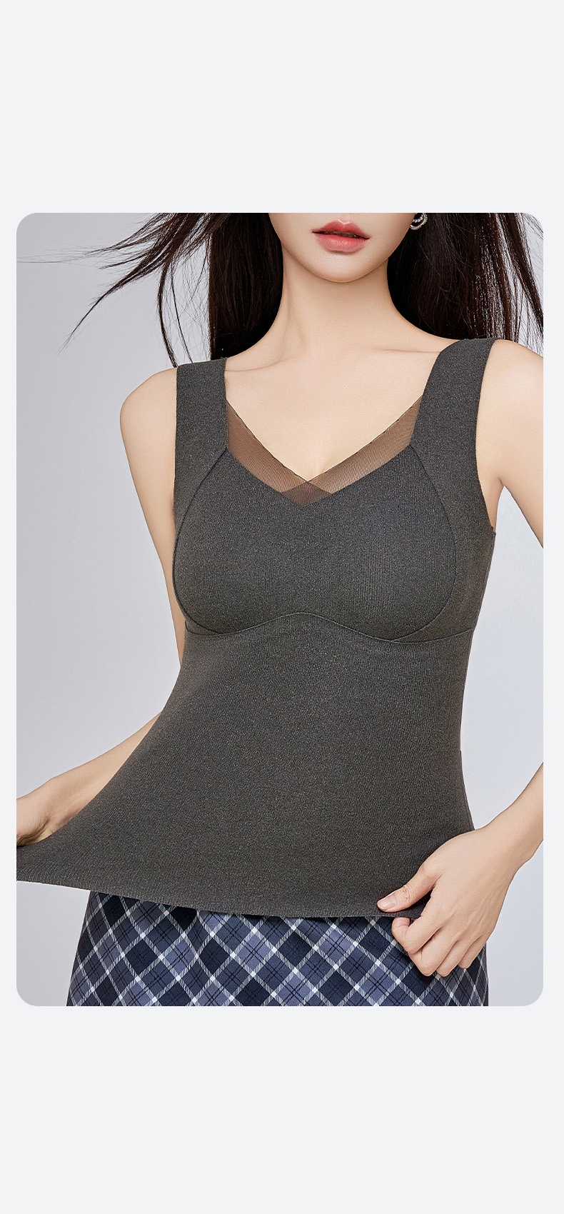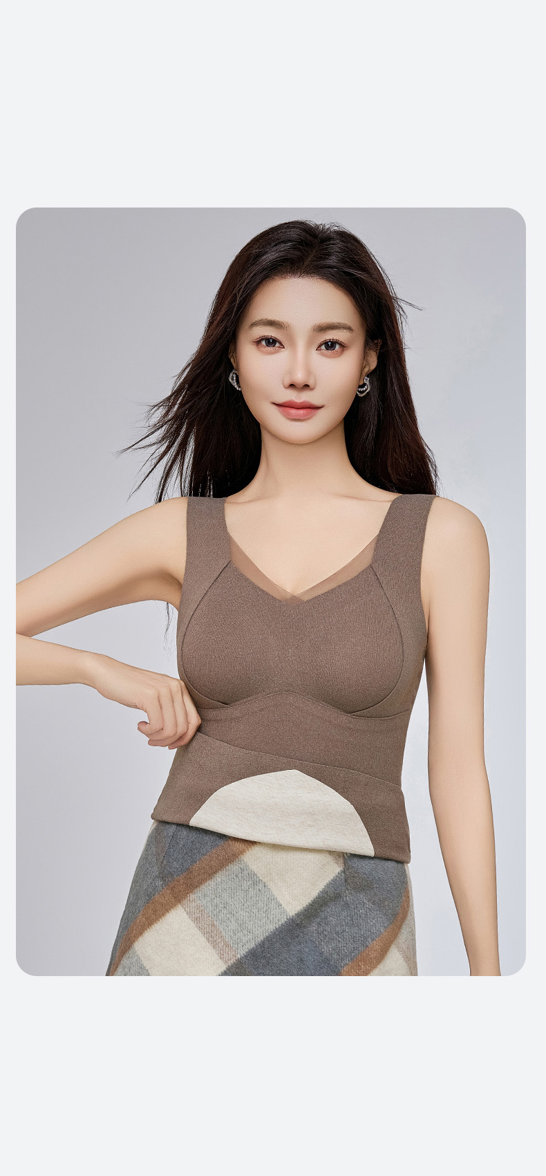 【169元2件】女士秋冬羊毛蚕丝润肤胸垫一体背心冬季打底衣女士保暖背心【FF25811】