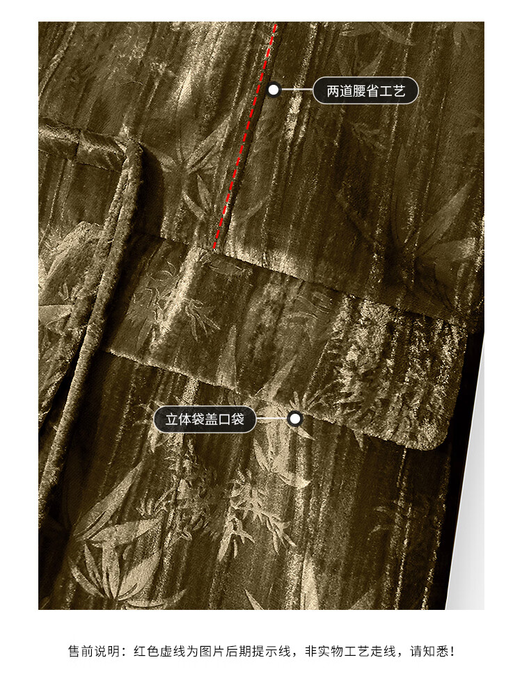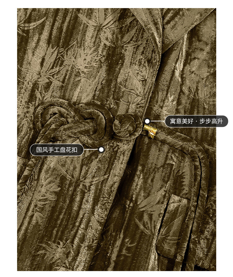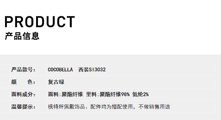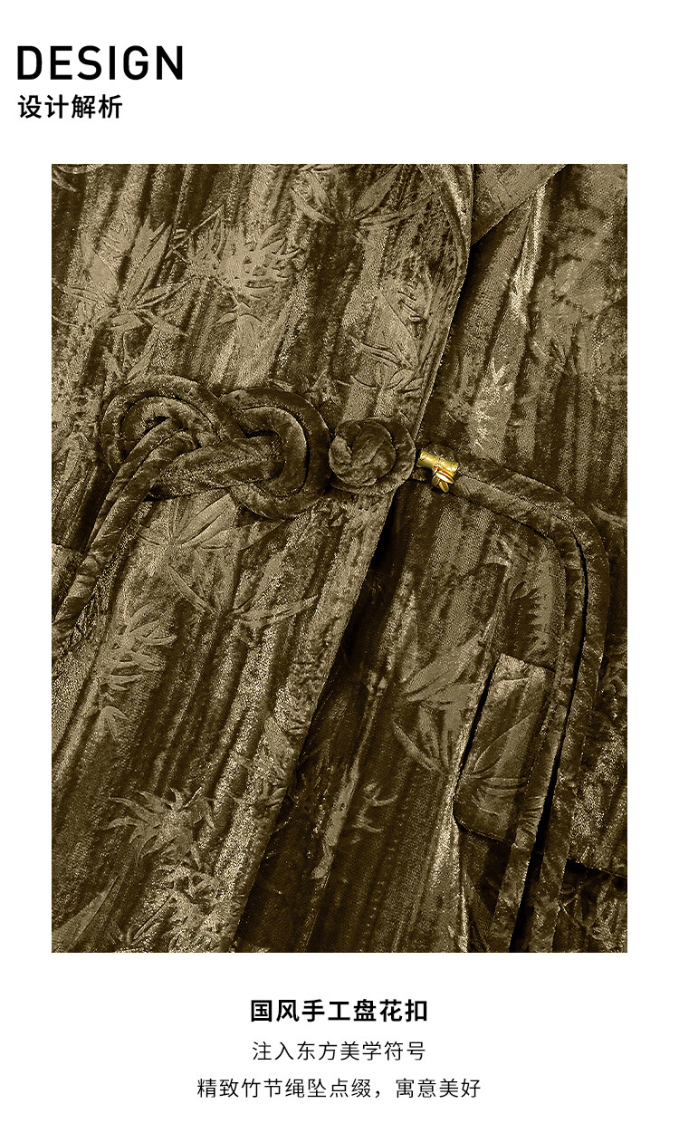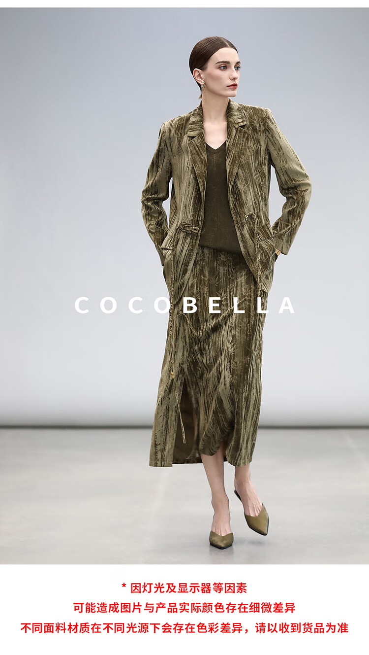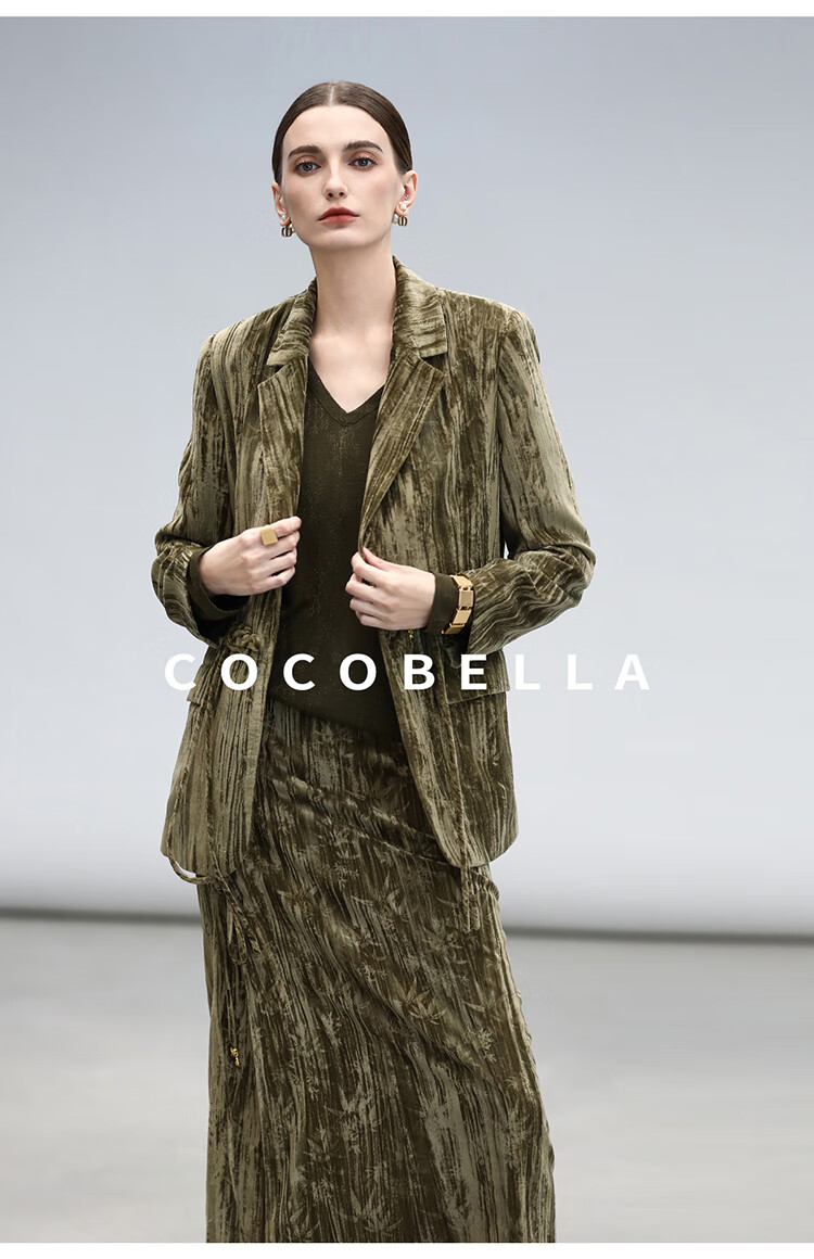 COCOBELLA新中式竹叶拓印压褶丝绒西装女国风盘扣外套SI3032