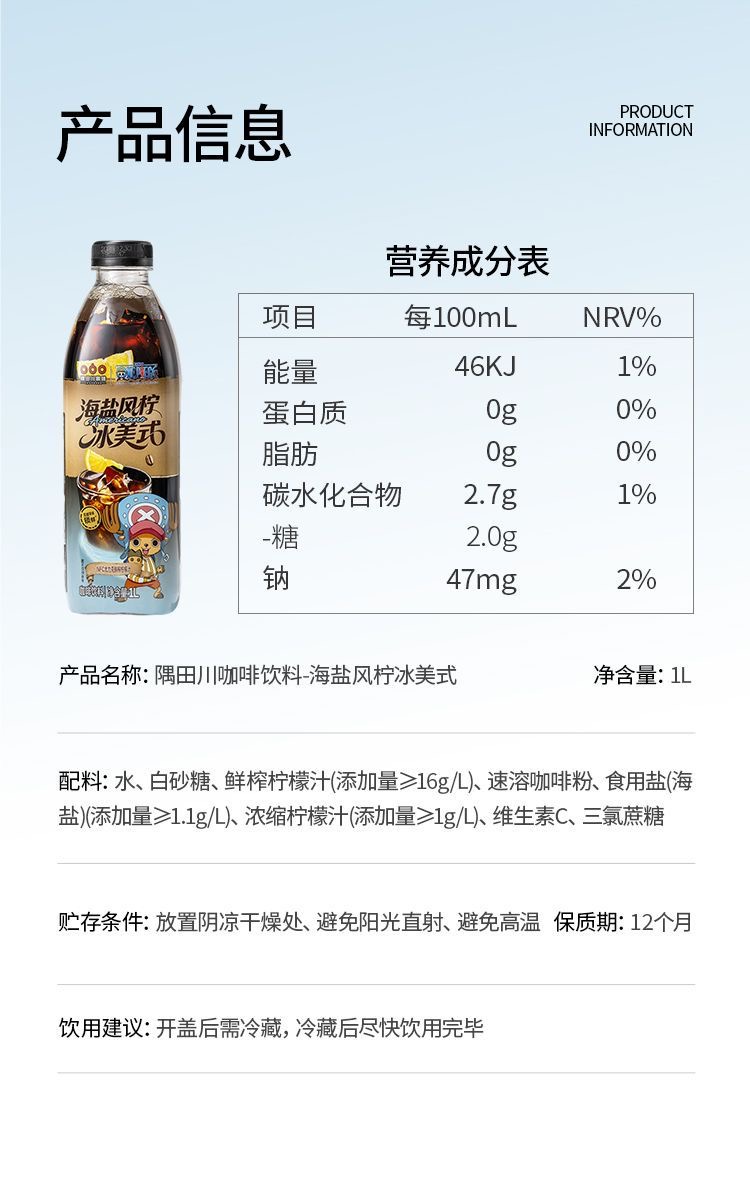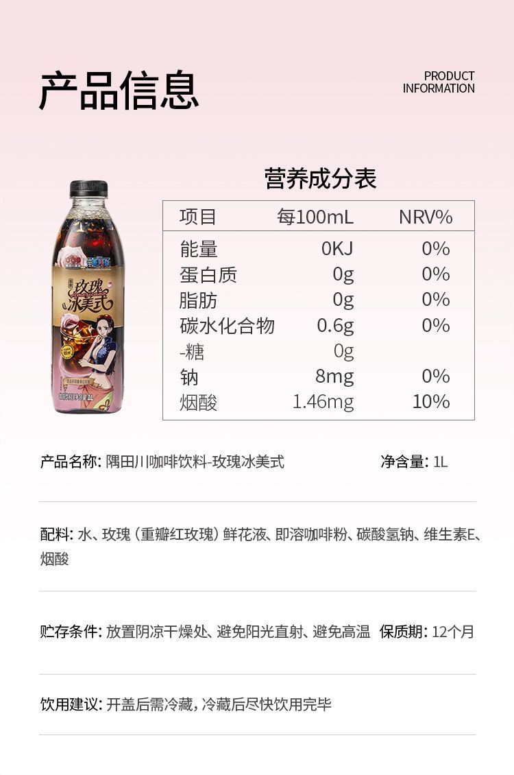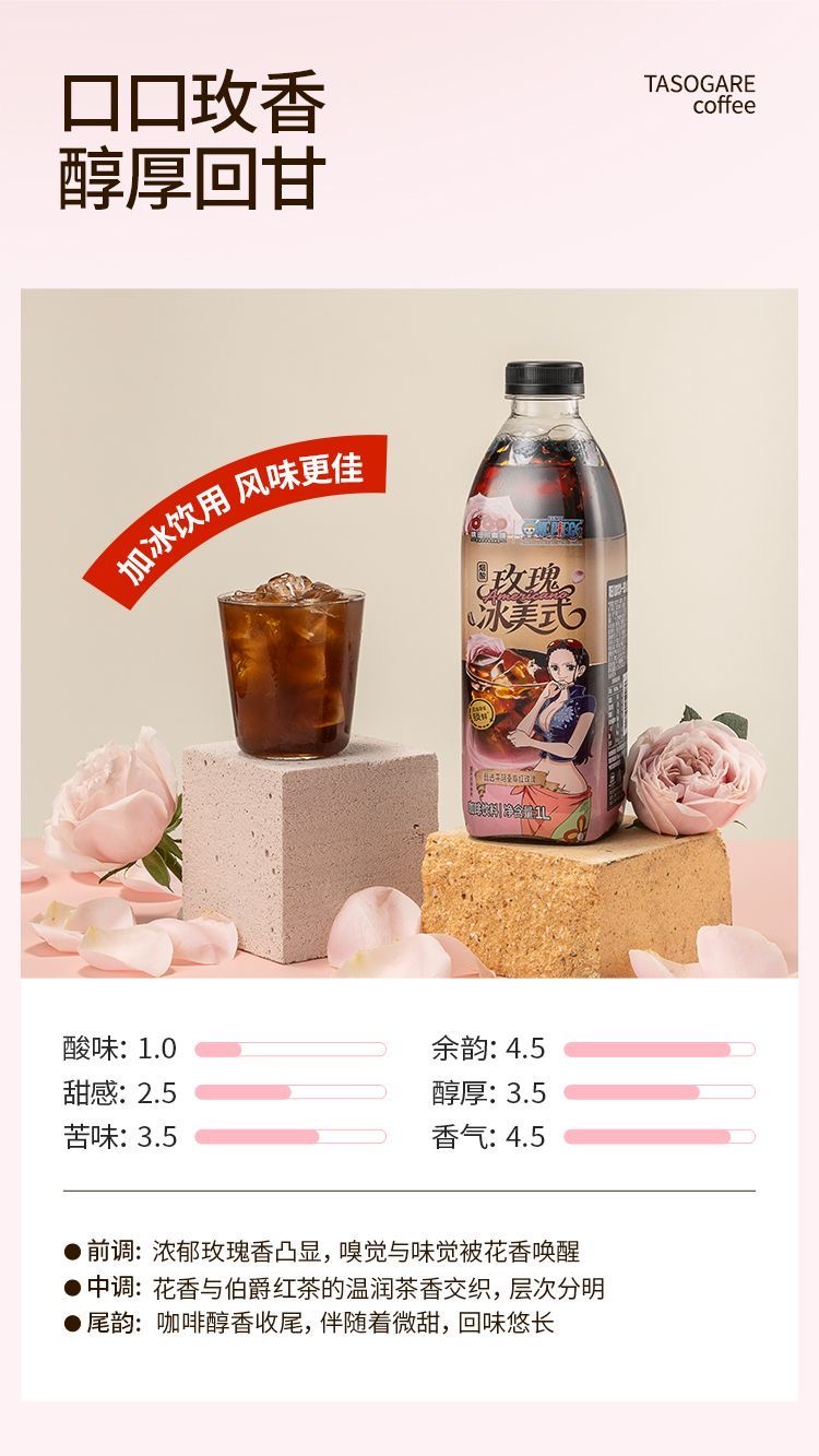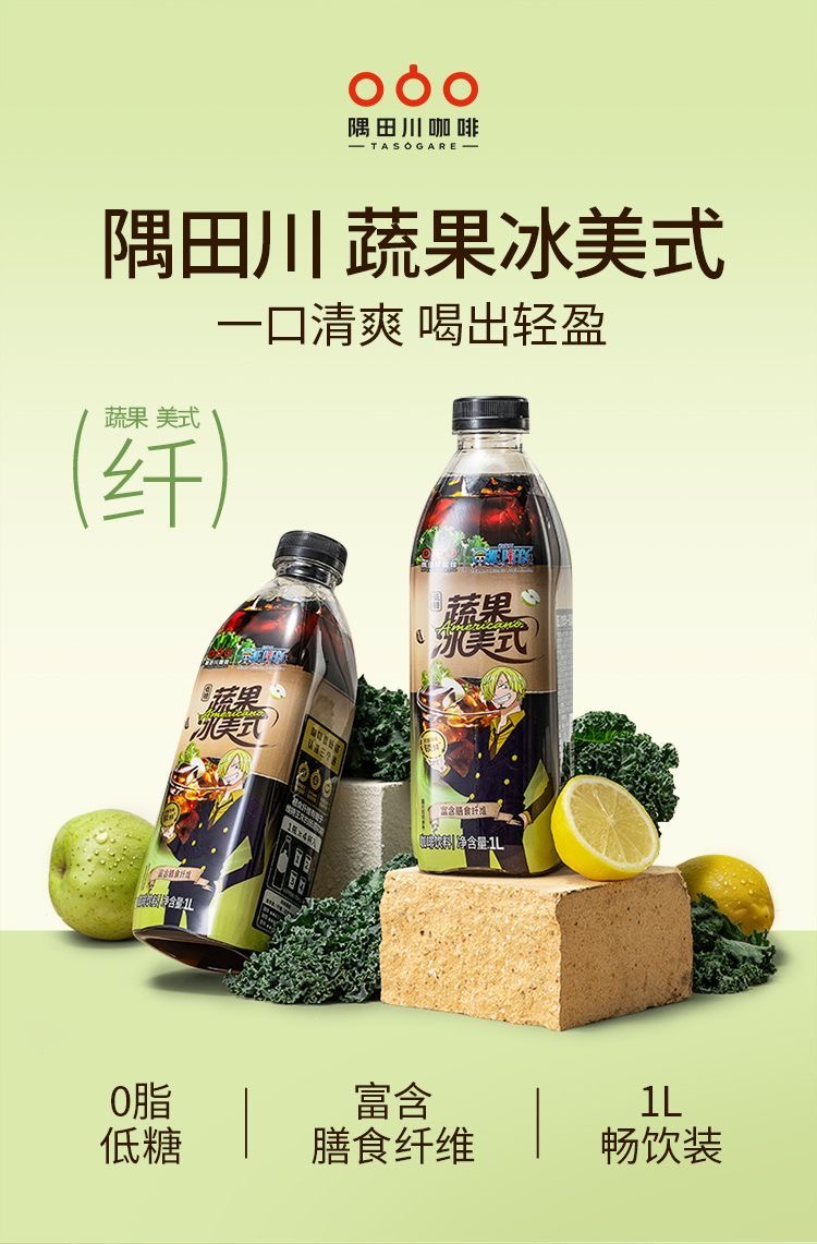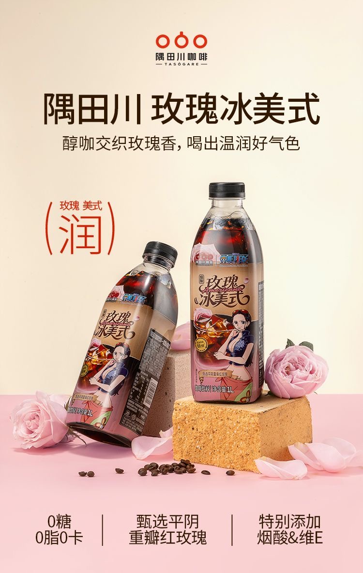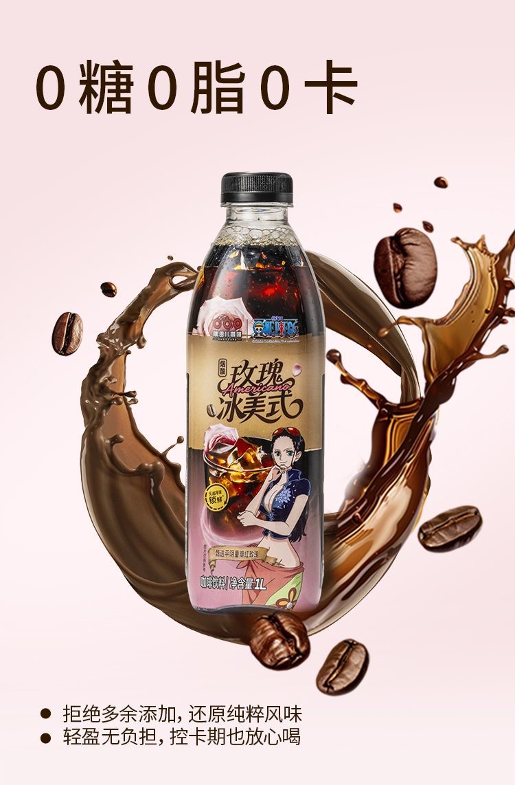【海贼王联名】隅田川即饮咖啡1L便携黑咖啡蔬果玫瑰海盐冰美式
