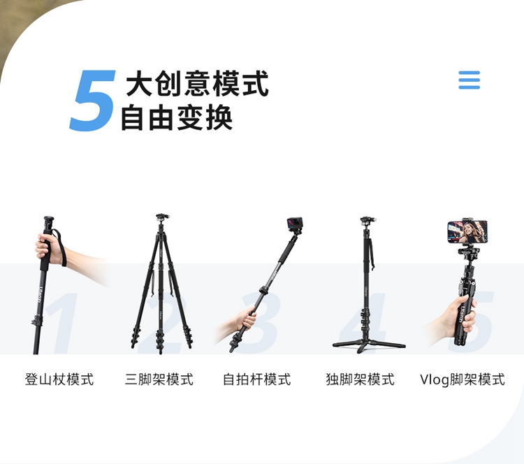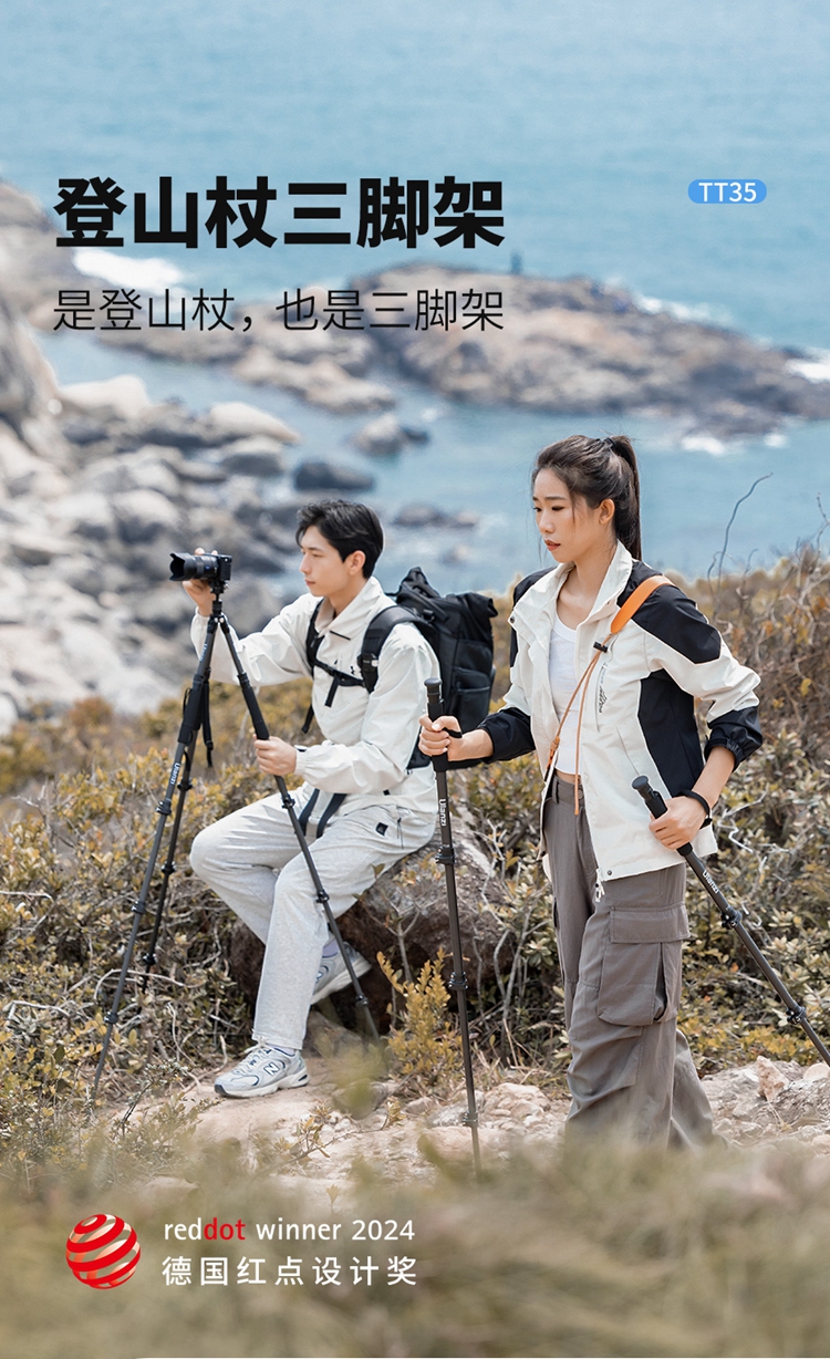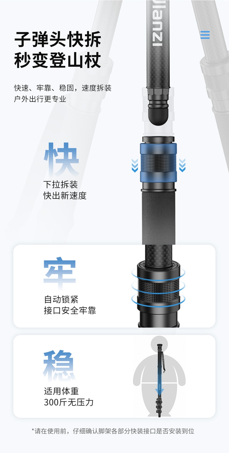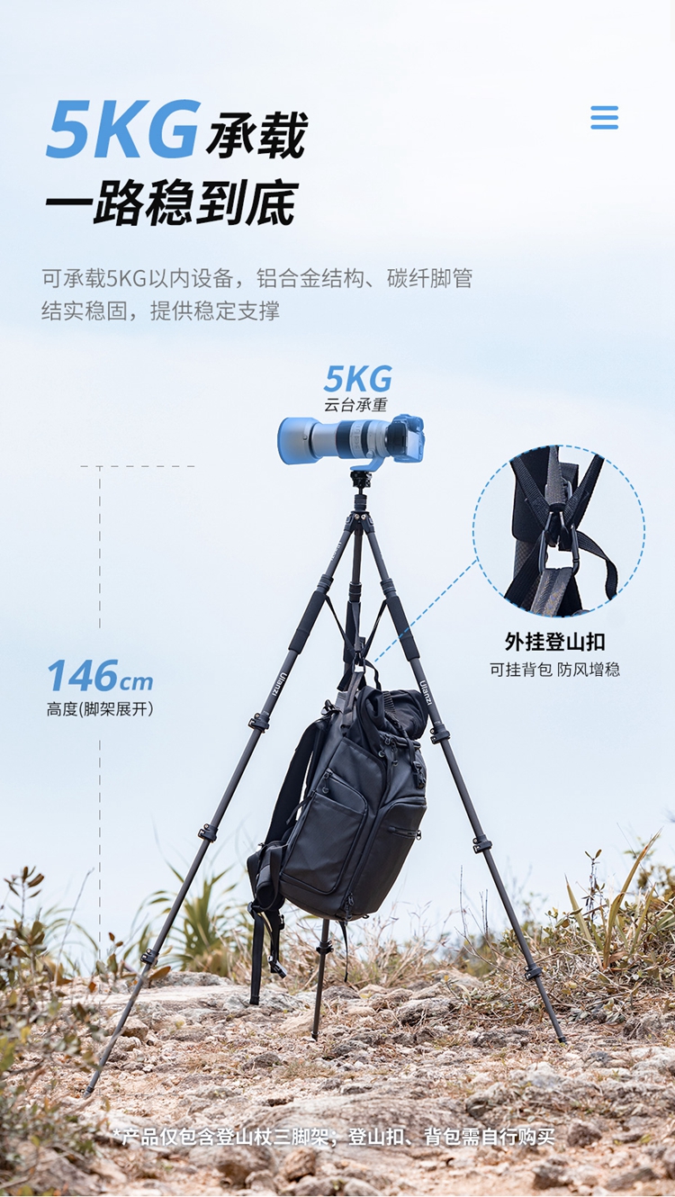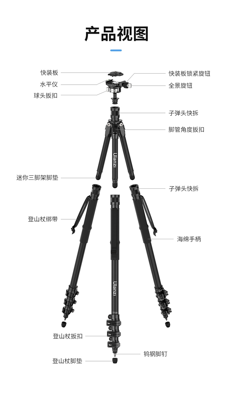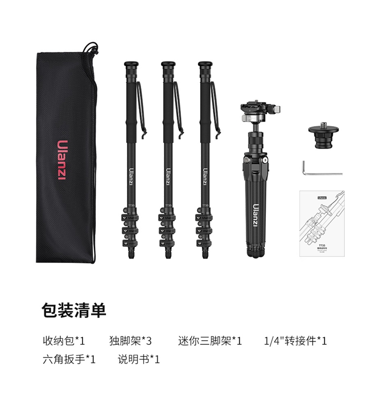 Ulanzi优篮子TT35登山杖三脚架户外徒步旅拍摄影摄像登山杖轻便携外拍支架相机单反碳纤维三角架