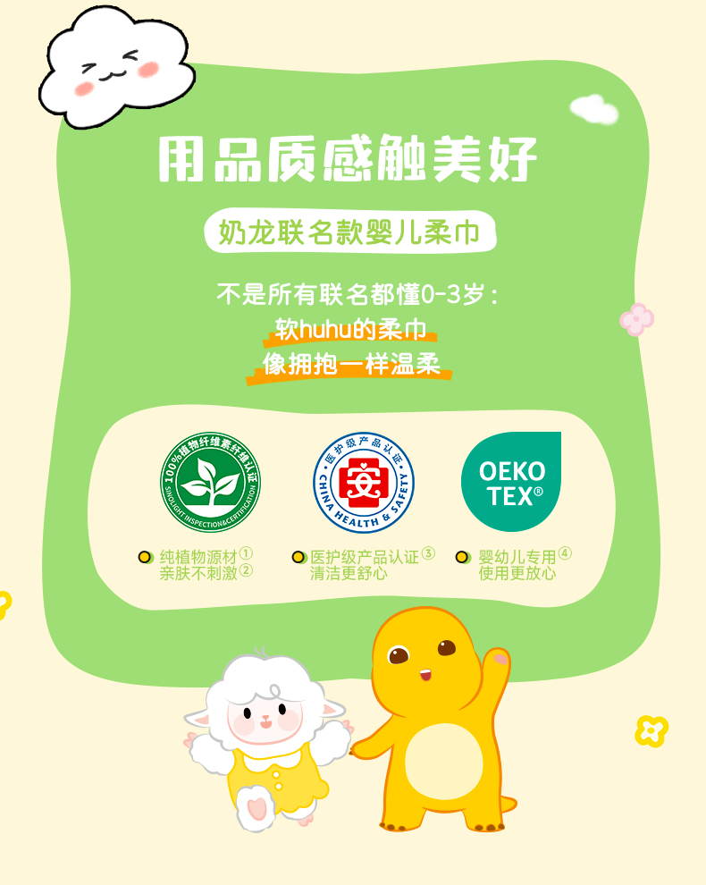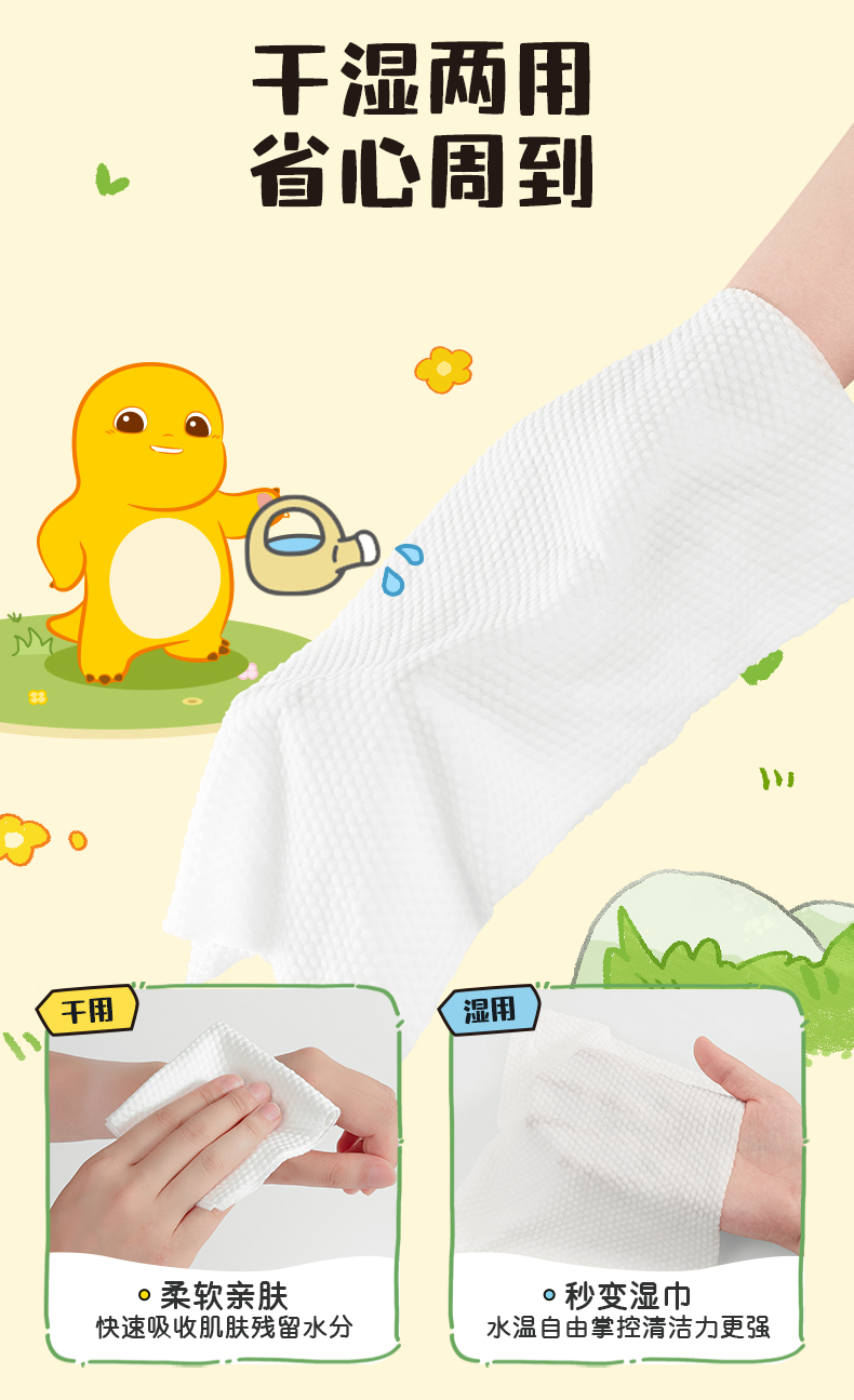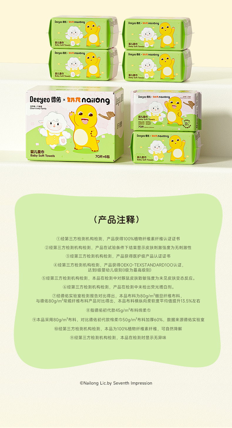 德佑奶龙联名款婴儿加厚绵柔巾洗脸巾非棉柔巾70抽*6包