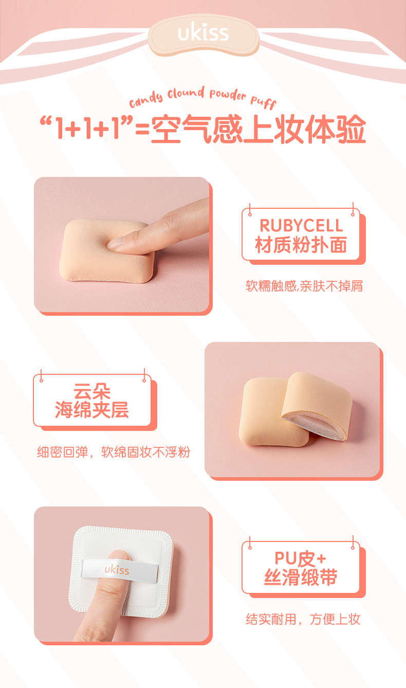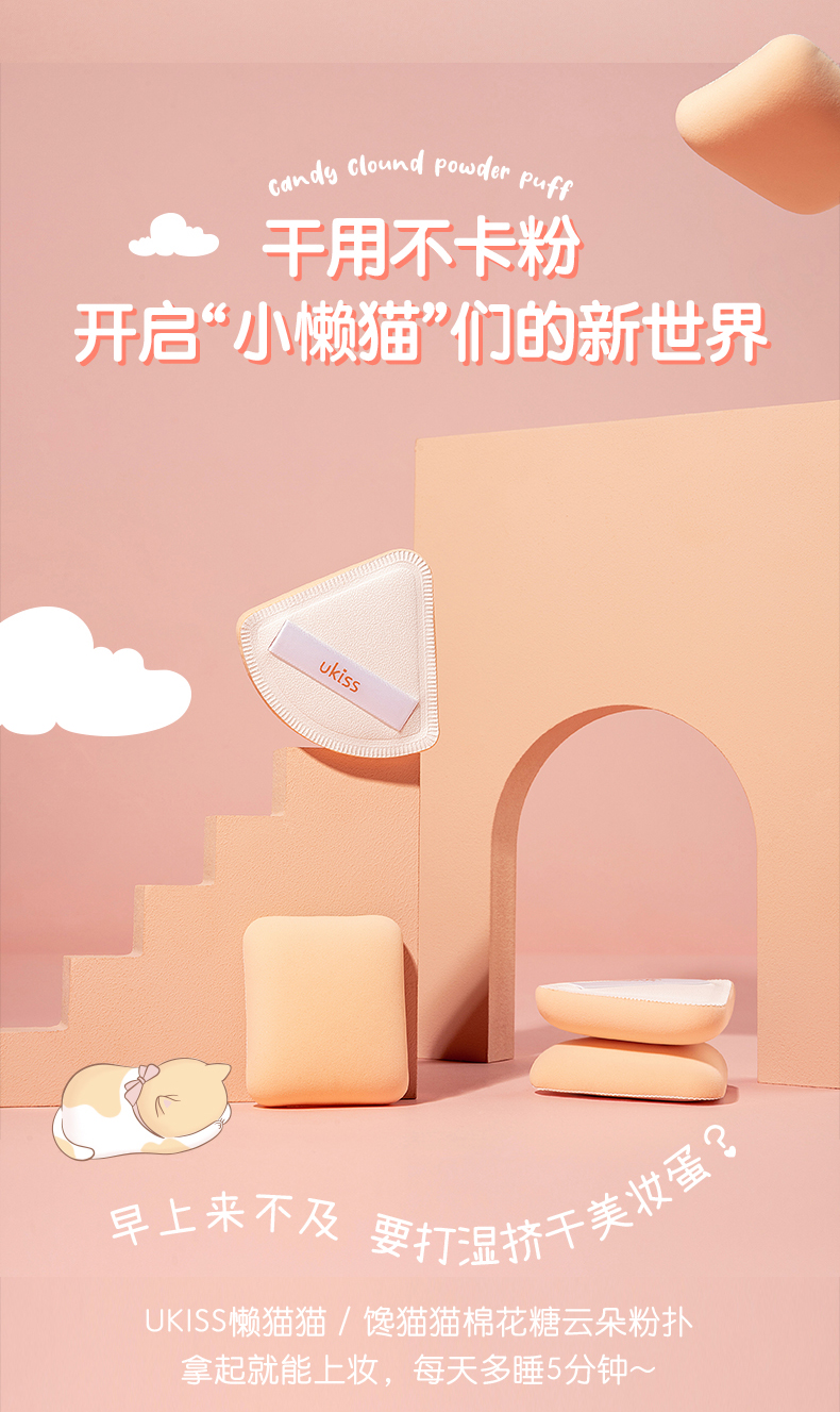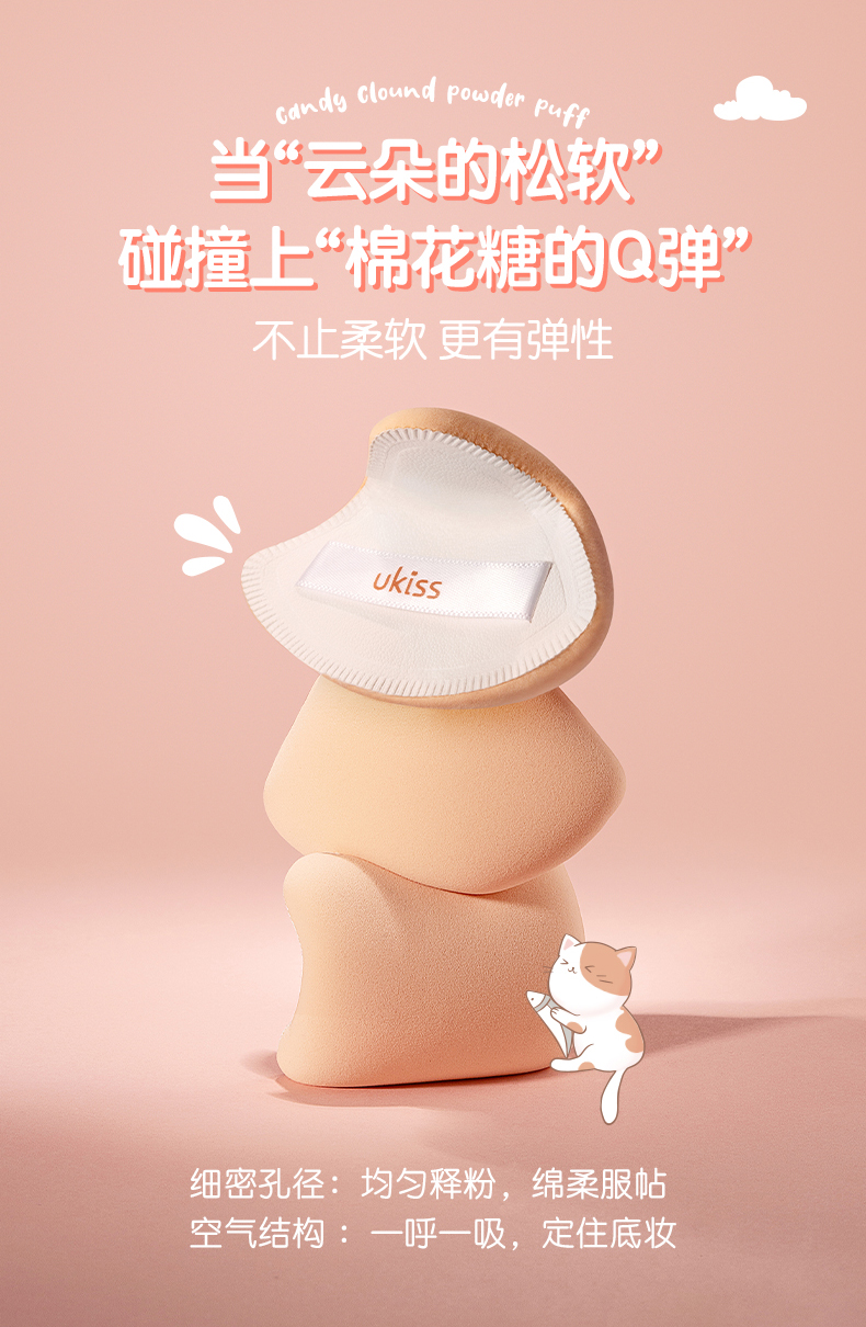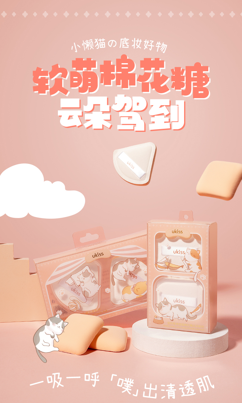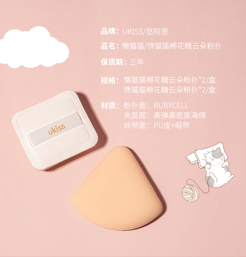 【专区59元任选3件】ukiss悠珂思馋猫猫棉花糖云朵粉扑2只装