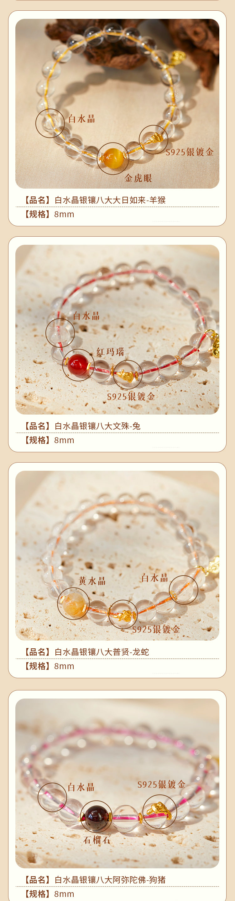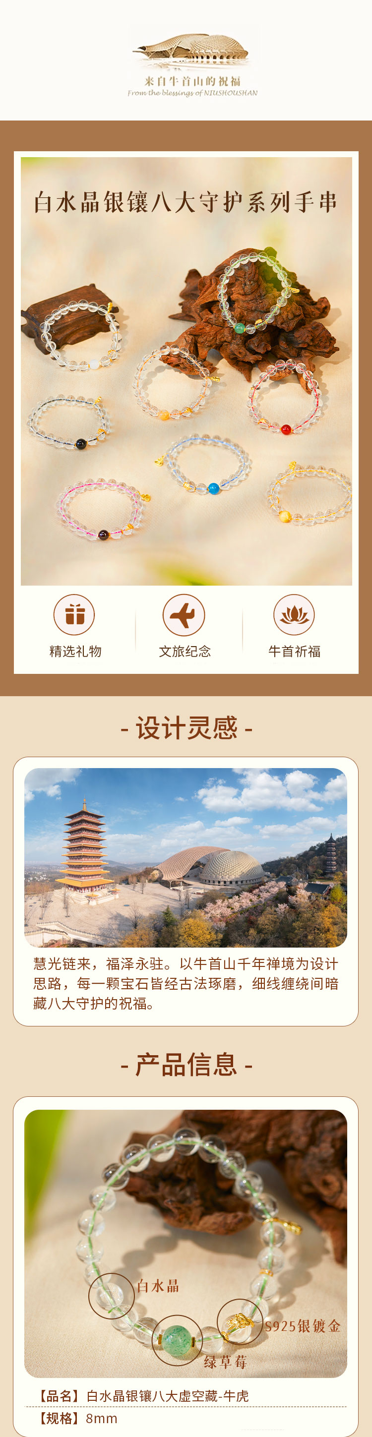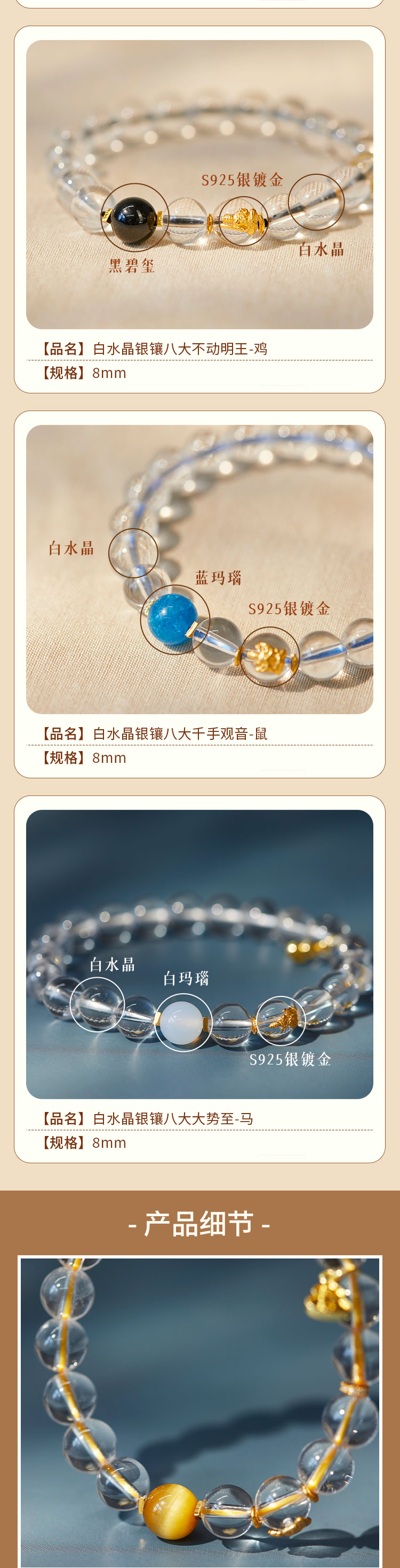 牛首山白水晶银镶十二生肖系列手串原创设计高颜值手饰文创周边