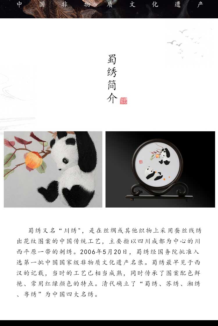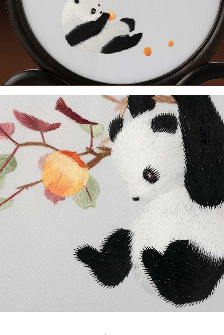 蜀绣滚滚红荔双熊猫非遗手工工艺