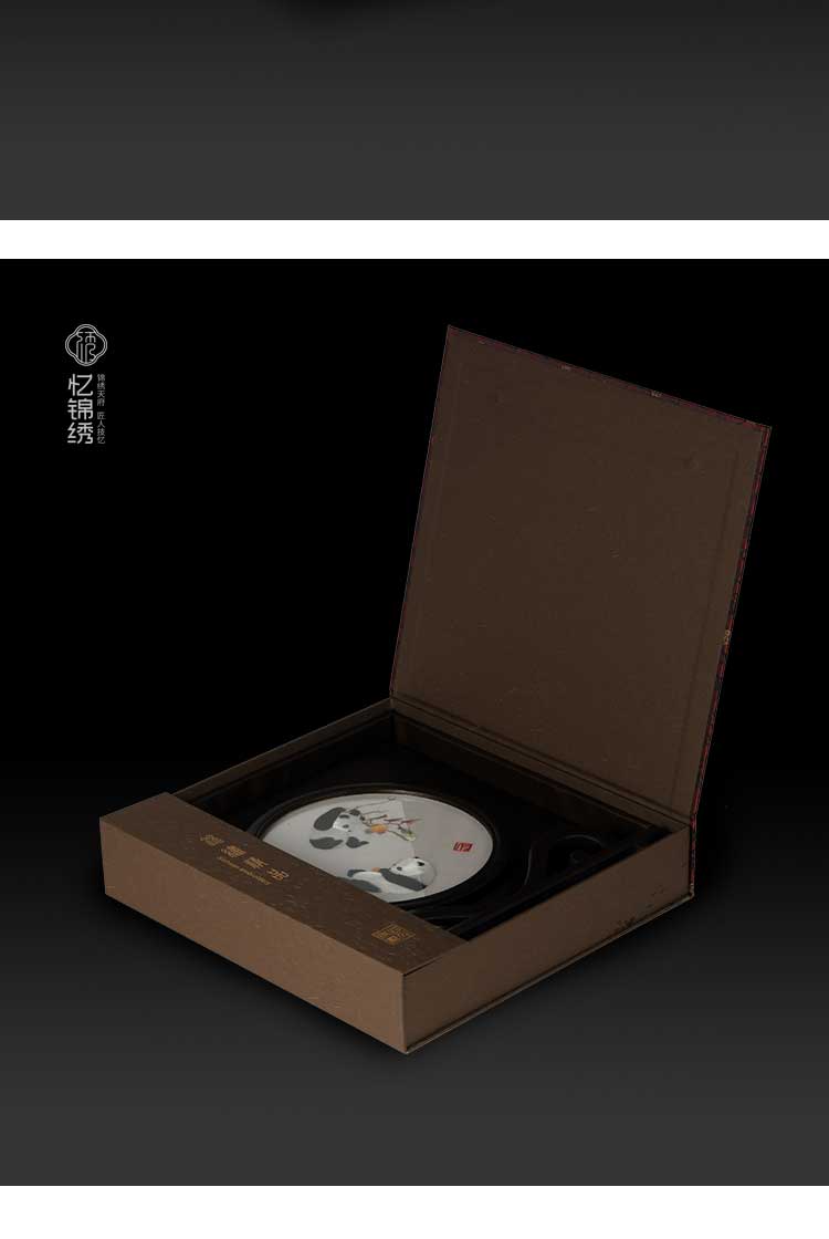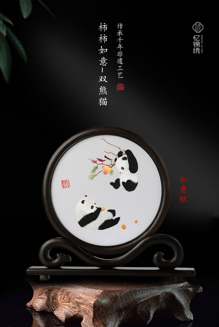 蜀绣柿柿如意双熊猫如意框非遗手工工艺
