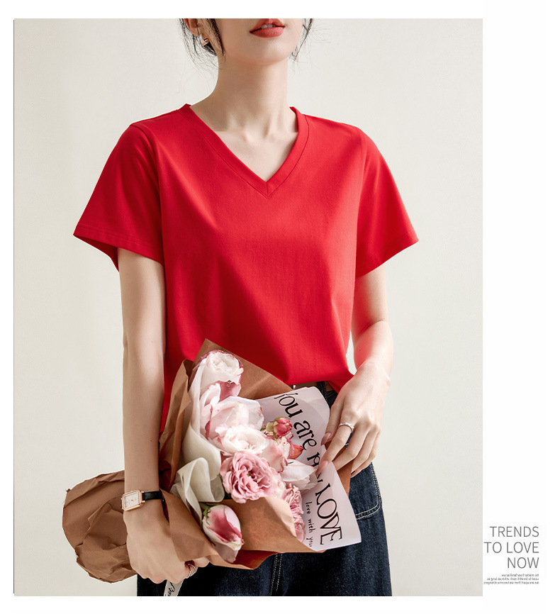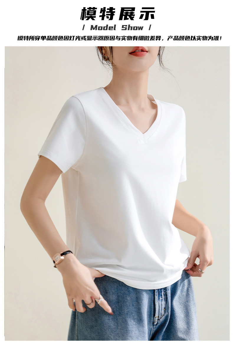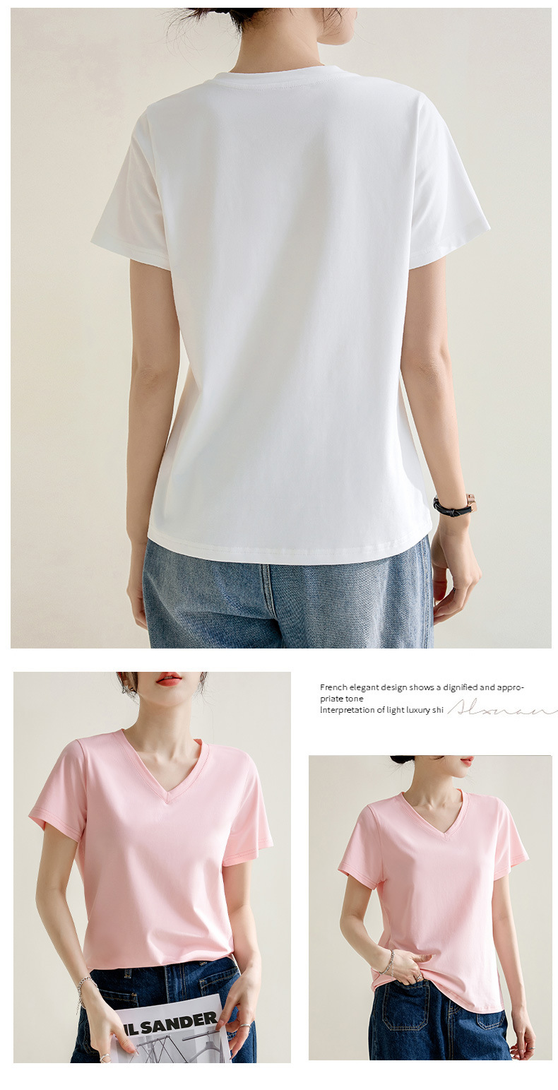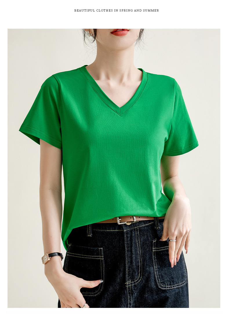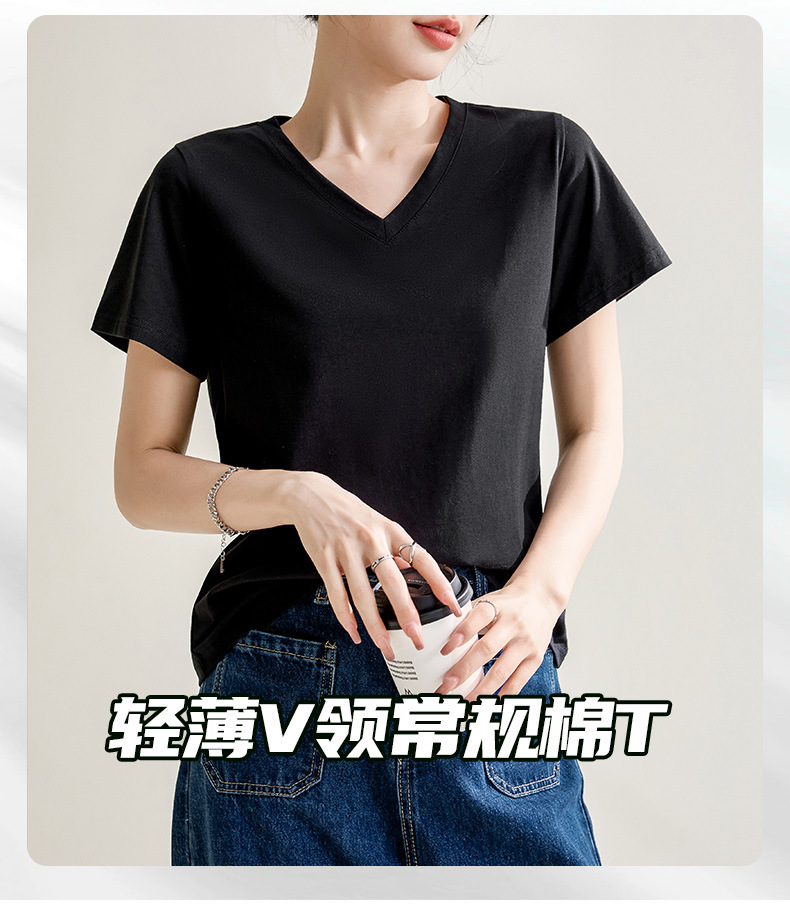 气质纯色正肩V领棉T恤女2025春夏新款宽松显瘦内搭套头短袖上衣