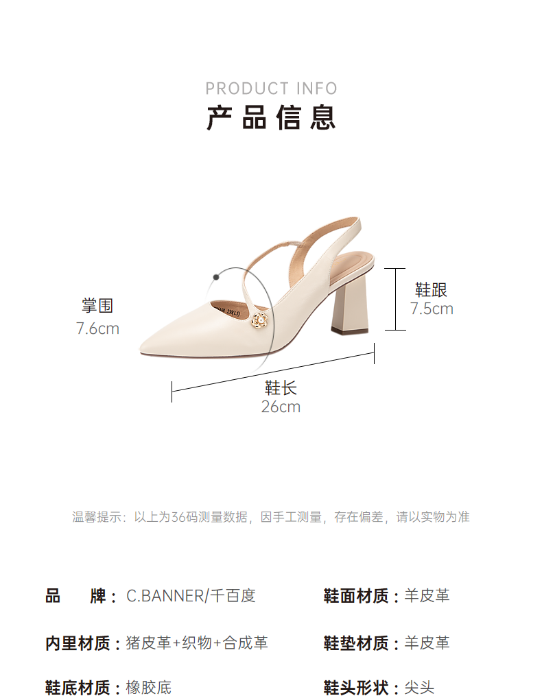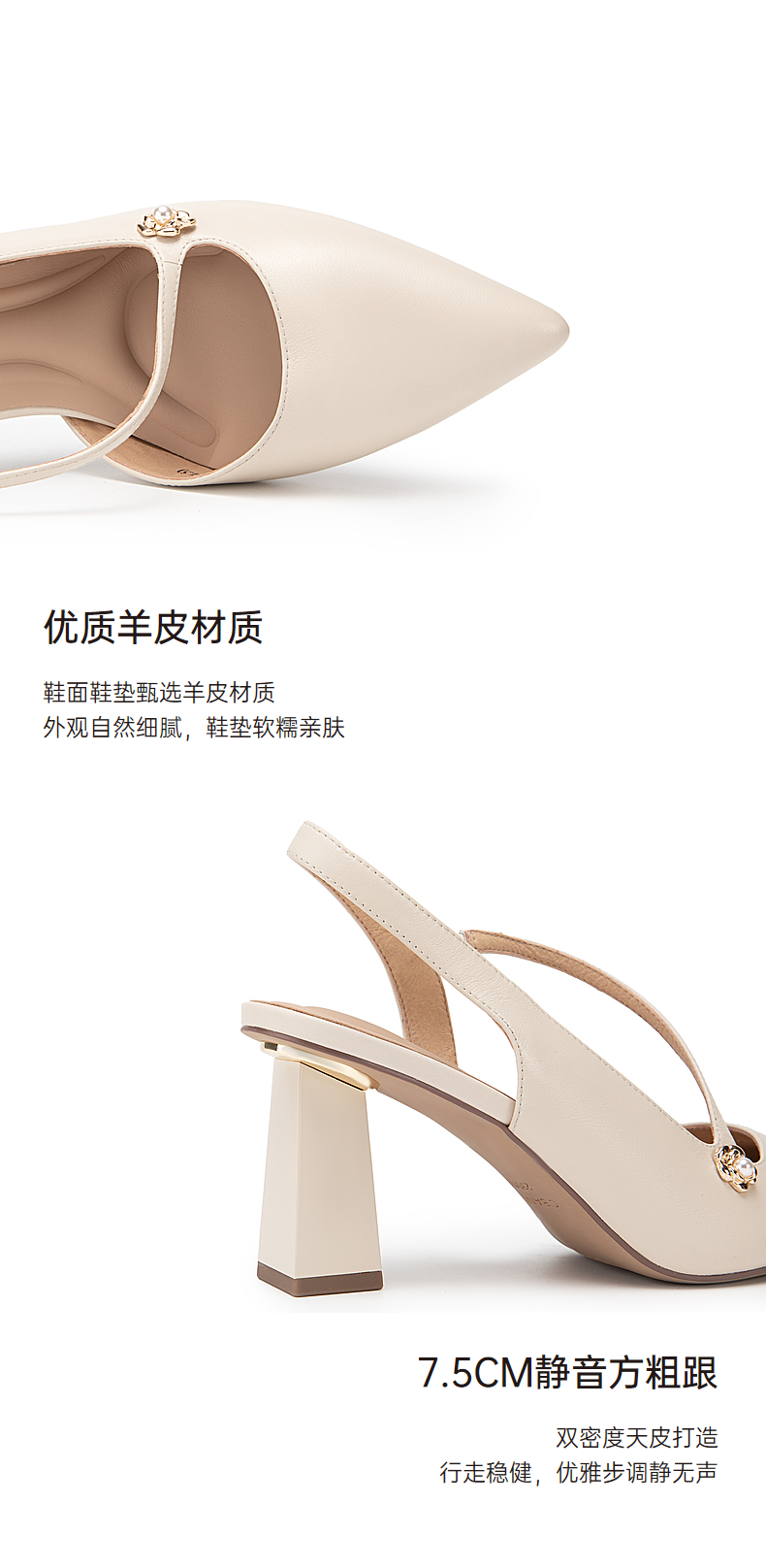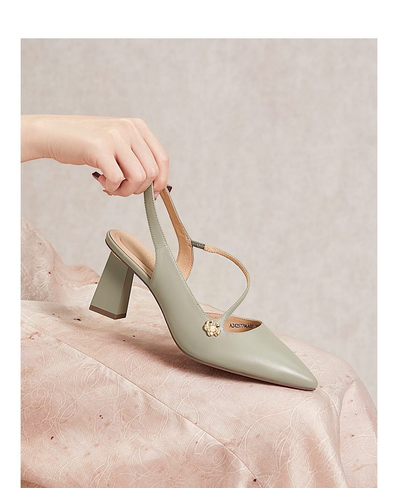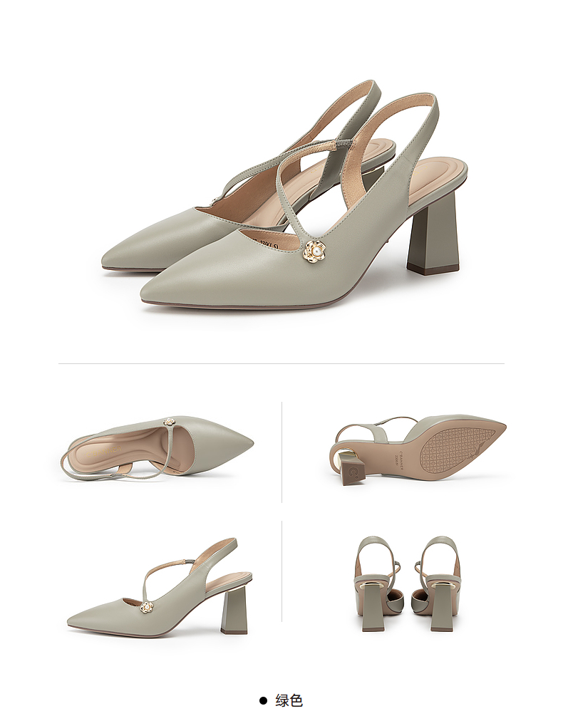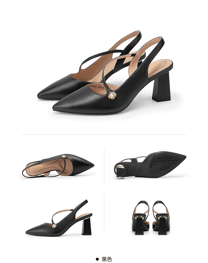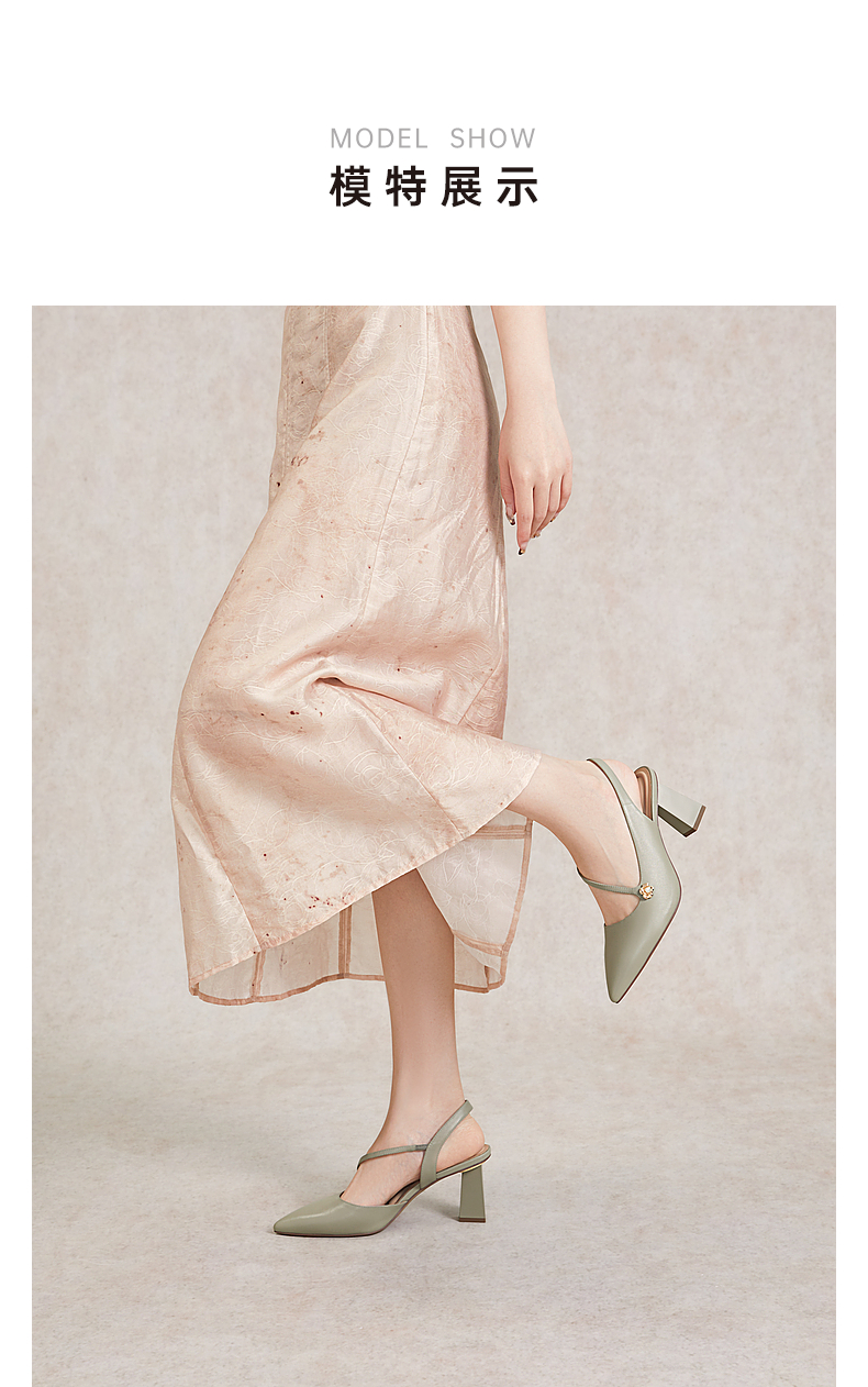 【静音系列】千百度尖头高跟凉鞋夏季羊皮后空时装凉鞋A24257796